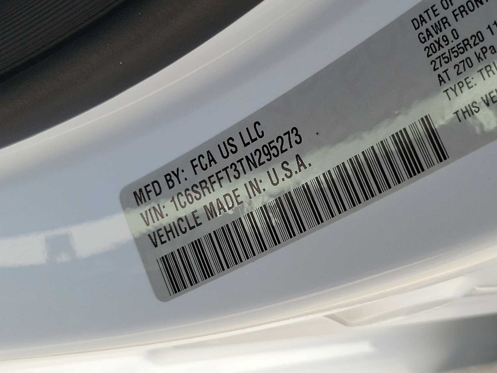 VIN: 1C6SRFFT3TN295273