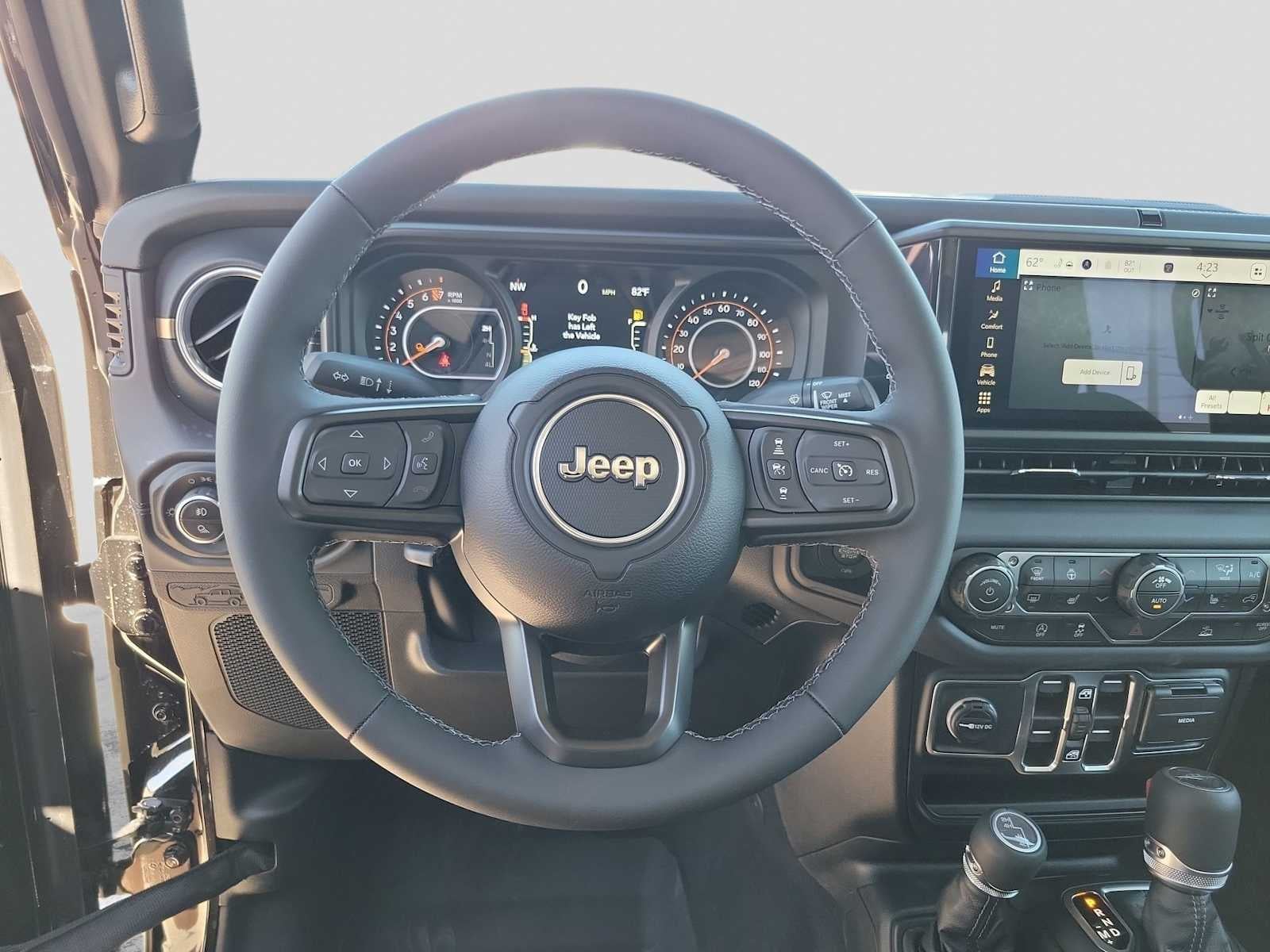 QUICK ORDER PACKAGE 24J TEXAS TRAIL 3.6L V6 24V VVT UPG I Engine w/ESS, 8-Speed Automatic 850RE Transmission, Leather Wrapped Shift Knob, Premium Door Trim Panel, Side Steps, Power 4-Way Passenger Lumbar Adjust, Power 4-Way Driver Lumbar Adjust, Body Color Fender Flares (2-Piece), Power Adjust 8-Way Front Passenger Seat, Security Alarm, Rear Armrest w/Cupholder Seat, Hard Seat Back, Advanced Brake Assist, Freedom Panel Storage Bag, Rear Window Defroster, Rear Sliding Window, Texas Trail, Automatic Headlamps, Deep Tint Sunscreen Windows, Central ADAS Decision Module (CADM), Full Speed Forward Collision Warning Plus, Power Heated Mirrors, Daytime Running Lamp System, Power Adjust 8-Way Driver Seat, Full Length Floor Console Premium Armrest, Premium Wrapped Steering Wheel, Leather Wrapped, CONVENIENCE GROUP Emergency/Assistance Call, Front Door Locks 2-Door Passive Entry, Remote Start System, Cluster 7.0 TFT Color Display, Universal Garage Door Opener, Daytime Running Lamp System, Heated Front Seats, Air Conditioning w/Auto Temp Control, Heated Steering Wheel, Corning Gorilla Glass, MOPAR SPRAY IN BEDLINER, LED HEADLAMP & FOG LAMP GROUP Daytime Running Lamps LED Accents, Front LED Fog Lamps, LED Premium Reflector Headlamps, 8-SPEED AUTOMATIC 850RE TRANSMISSION (STD), 3.6L V6 24V VVT UPG I ENGINE W/ESS (STD). Jeep Texas Trail with Black Clearcoat exterior and Black interior features a V6 Cylinder Engine with 285 HP at 6400 RPM*.