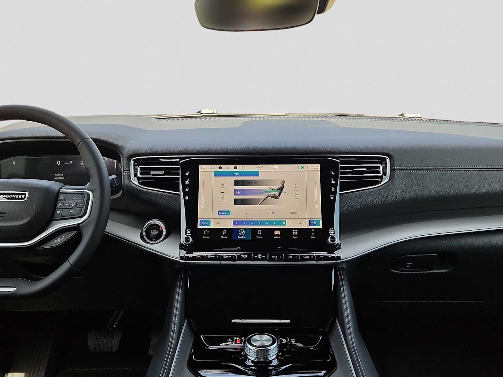 PREMIUM GROUP I Side Distance Warning, Luxury Front & Rear Floor Mats, Reversible Carpet/Vinyl Cargo Mat, Surround View Camera System, Auto Power-Folding Mirrors, P&P Park & Unpark Assist w/Stop System, Auto-Power-Folding Exterior Mirrors, Interior Rear Facing Camera, 3 Panel Sunroof, 8-SPEED AUTO 880RE TRANSMISSION (STD), 3.0L I6 HURRICANE SO TWIN TURBO ESS ENGINE (STD). Jeep Grand Wagoneer L with High Gloss Black exterior and Global Black interior features a Straight 6 Cylinder Engine with 420 HP at 5200 RPM*.
