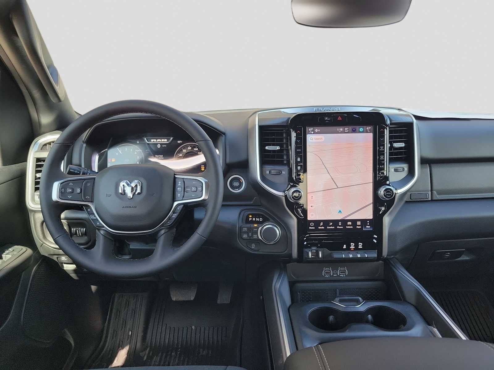 ENGINE: 5.7L V8 HEMI MDS VVT ETORQUE Active Noise Control System, Heavy Duty Engine Cooling, Passive Tuned Mass Damper, GVWR: 7,100 lbs, Dual Rear Exhaust w/Bright Tips, G/T Exhaust, 18 Aluminum Spare Wheel, BIG HORN LEVEL 2 EQUIPMENT GROUP SiriusXM Radio Service, Power Adjustable Pedals, Leather Wrapped Steering Wheel, 12 Touchscreen Display, Glove Box Lamp, Auto Power-Folding Mirrors, 115V Auxiliary Rear Power Outlet, Media Hub w/2 Charge Only USBs, Heated Front Seats, Security Alarm, Black Premium Power Mirrors, Premium Overhead Console, 9 Amplified Speakers w/Subwoofer, Disassociated Touchscreen Display, Body Color Fender Flares, Remote Tailgate Release, 115V Auxiliary Power Outlet, LED Dome Lamp w/On/Off Switch, Universal Garage Door Opener, 2nd Row In Floor Storage Bins, Sun Visors w/Illuminated Vanity Mirrors, LED Footwell Lighting, Rear Window Defroster, Rear View Auto Dim Mirror, Rear Power Sliding Window, GPS Navigation, Overhead LED Lamps, Wheels: 20 x 9 Aluminum Chrome Clad, NIGHT EDITION Tires: 275/55R20 OWL All Season, Bridgestone Brand Tires, Accent Color Premium Power Mirrors, Exterior Mirrors w/Supplemental Signals, Black Headlamp Bezels, Exterior Mirrors Courtesy Lamps, Grille Black Surround Black Mesh, Auto Power-Folding Mirrors, Wheels: 20 x 9.0 Aluminum Painted Clad, Auto Dim Exterior Driver Mirror, Black Exterior Truck Badging, Anti-Spin Differential Rear Axle, Accent Color Door Handles, Accent Color Tailgate Handle, Black Interior Accents, Dual Exhaust w/Black Tips, Body Color Front Bumper, Body Color Rear Bumper w/Step Pads, Black Tail Lamp Bezels, RAM Grille Badge - Black, Black Painted Exterior Mirrors Caps, BED UTILITY GROUP MOPAR Spray In Bedliner, MOPAR 4 Adjustable Cargo Tie-Down Hooks, Pick-Up Box Lighting, Exterior 115V AC Outlet, MOPAR FRONT & REAR RUBBER FLOOR MATS, TRANSMISSION: 8-SPEED AUTOMATIC (8HP75). Ram Big Horn with Bright White Clearcoat exterior and Black interior features a 8 Cylinder Engine with 395 HP at 5600 RPM*.