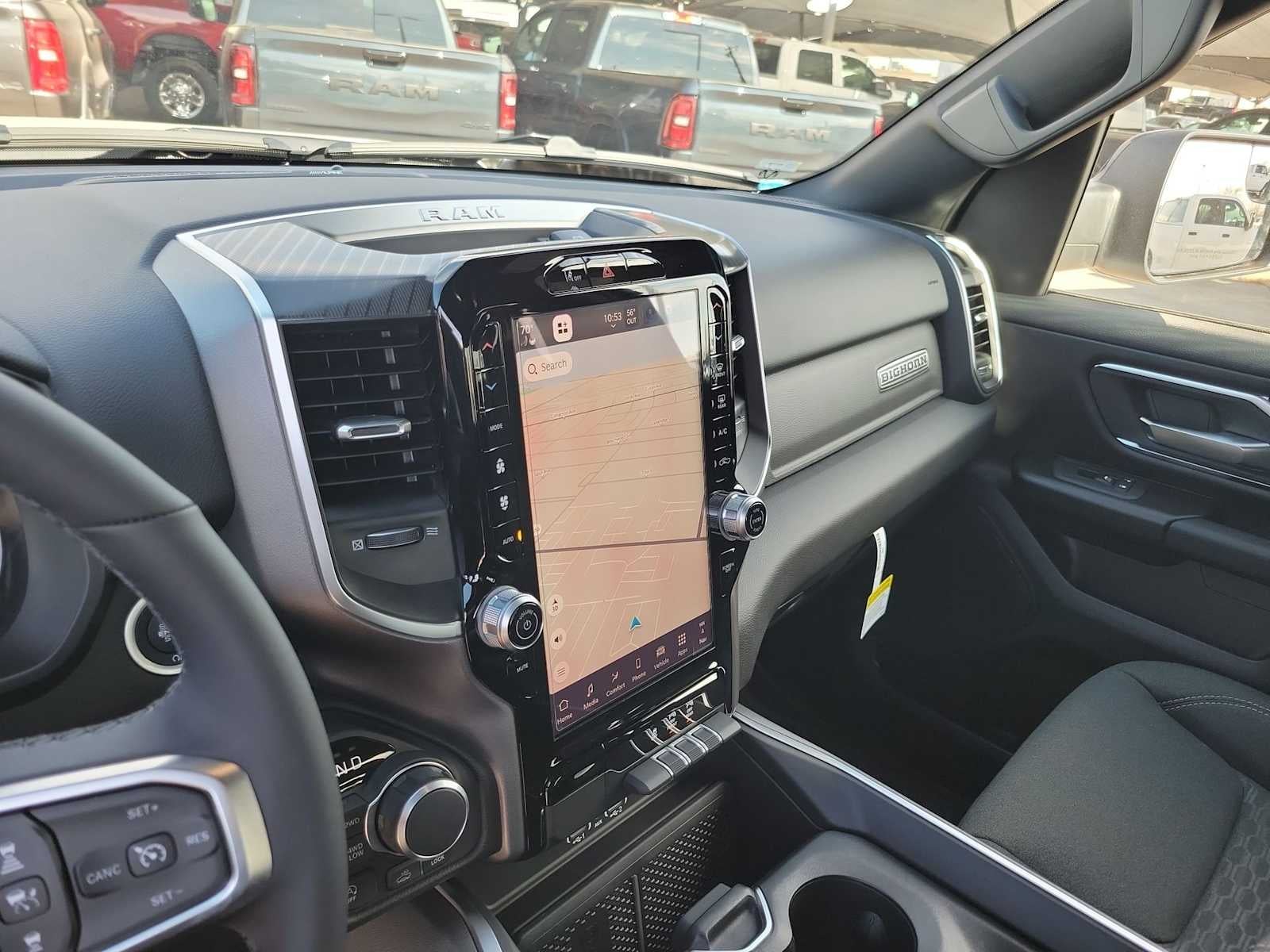 ENGINE: 5.7L V8 HEMI MDS VVT ETORQUE Active Noise Control System, Heavy Duty Engine Cooling, Passive Tuned Mass Damper, GVWR: 7,100 lbs, Dual Rear Exhaust w/Bright Tips, G/T Exhaust, 18 Aluminum Spare Wheel, BIG HORN LEVEL 2 EQUIPMENT GROUP SiriusXM Radio Service, Power Adjustable Pedals, Leather Wrapped Steering Wheel, 12 Touchscreen Display, Glove Box Lamp, Auto Power-Folding Mirrors, 115V Auxiliary Rear Power Outlet, Media Hub w/2 Charge Only USBs, Heated Front Seats, Security Alarm, Black Premium Power Mirrors, Premium Overhead Console, 9 Amplified Speakers w/Subwoofer, Disassociated Touchscreen Display, Body Color Fender Flares, Remote Tailgate Release, 115V Auxiliary Power Outlet, LED Dome Lamp w/On/Off Switch, Universal Garage Door Opener, 2nd Row In Floor Storage Bins, Sun Visors w/Illuminated Vanity Mirrors, LED Footwell Lighting, Rear Window Defroster, Rear View Auto Dim Mirror, Rear Power Sliding Window, GPS Navigation, Overhead LED Lamps, Wheels: 20 x 9 Aluminum Chrome Clad, NIGHT EDITION Tires: 275/55R20 OWL All Season, Bridgestone Brand Tires, Accent Color Premium Power Mirrors, Exterior Mirrors w/Supplemental Signals, Black Headlamp Bezels, Exterior Mirrors Courtesy Lamps, Grille Black Surround Black Mesh, Auto Power-Folding Mirrors, Wheels: 20 x 9.0 Aluminum Painted Clad, Auto Dim Exterior Driver Mirror, Black Exterior Truck Badging, Anti-Spin Differential Rear Axle, Accent Color Door Handles, Accent Color Tailgate Handle, Black Interior Accents, Dual Exhaust w/Black Tips, Body Color Front Bumper, Body Color Rear Bumper w/Step Pads, Black Tail Lamp Bezels, RAM Grille Badge - Black, Black Painted Exterior Mirrors Caps, OFF ROAD GROUP Front Extra HD Shock Absorbers, Off Road Decals, Rear Extra HD Shock Absorbers, Steering Gear Skid Plate, Tow Hooks, E-Locker Rear Axle, Transfer Case Skid Plate, Fuel Tank Skid Plate, Raised Ride Height, Selec-Speed Control, BED UTILITY GROUP MOPAR Spray In Bedliner, MOPAR 4 Adjustable Cargo Tie-Down Hooks, Pick-Up Box Lighting, Exterior 115V AC Outlet, MOPAR FRONT & REAR RUBBER FLOOR MATS, TRANSMISSION: 8-SPEED AUTOMATIC (8HP75). Ram Big Horn with Bright White Clearcoat exterior and Black interior features a 8 Cylinder Engine with 395 HP at 5600 RPM*.
