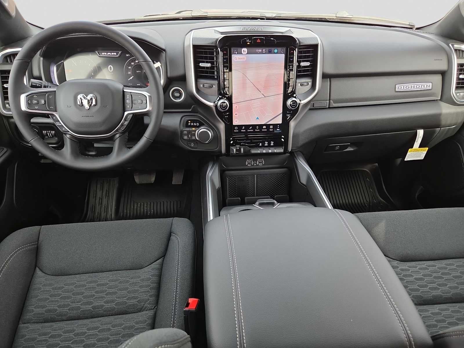ENGINE: 5.7L V8 HEMI MDS VVT ETORQUE Active Noise Control System, Heavy Duty Engine Cooling, Passive Tuned Mass Damper, GVWR: 7,100 lbs, Dual Rear Exhaust w/Bright Tips, G/T Exhaust, 18 Aluminum Spare Wheel, BIG HORN LEVEL 2 EQUIPMENT GROUP SiriusXM Radio Service, Power Adjustable Pedals, Leather Wrapped Steering Wheel, 12 Touchscreen Display, Glove Box Lamp, Auto Power-Folding Mirrors, 115V Auxiliary Rear Power Outlet, Media Hub w/2 Charge Only USBs, Heated Front Seats, Security Alarm, Black Premium Power Mirrors, Premium Overhead Console, 9 Amplified Speakers w/Subwoofer, Disassociated Touchscreen Display, Body Color Fender Flares, Remote Tailgate Release, 115V Auxiliary Power Outlet, LED Dome Lamp w/On/Off Switch, Universal Garage Door Opener, 2nd Row In Floor Storage Bins, Sun Visors w/Illuminated Vanity Mirrors, LED Footwell Lighting, Rear Window Defroster, Rear View Auto Dim Mirror, Rear Power Sliding Window, GPS Navigation, Overhead LED Lamps, Wheels: 20 x 9 Aluminum Chrome Clad, NIGHT EDITION Tires: 275/55R20 OWL All Season, Bridgestone Brand Tires, Accent Color Premium Power Mirrors, Exterior Mirrors w/Supplemental Signals, Black Headlamp Bezels, Exterior Mirrors Courtesy Lamps, Grille Black Surround Black Mesh, Auto Power-Folding Mirrors, Wheels: 20 x 9.0 Aluminum Painted Clad, Auto Dim Exterior Driver Mirror, Black Exterior Truck Badging, Anti-Spin Differential Rear Axle, Accent Color Door Handles, Accent Color Tailgate Handle, Black Interior Accents, Dual Exhaust w/Black Tips, Body Color Front Bumper, Body Color Rear Bumper w/Step Pads, Black Tail Lamp Bezels, RAM Grille Badge - Black, Black Painted Exterior Mirrors Caps, MOPAR FRONT & REAR RUBBER FLOOR MATS, TRANSMISSION: 8-SPEED AUTOMATIC (8HP75). Ram Big Horn with Granite Crystal Metallic Clearcoat exterior and Black interior features a 8 Cylinder Engine with 395 HP at 5600 RPM*.