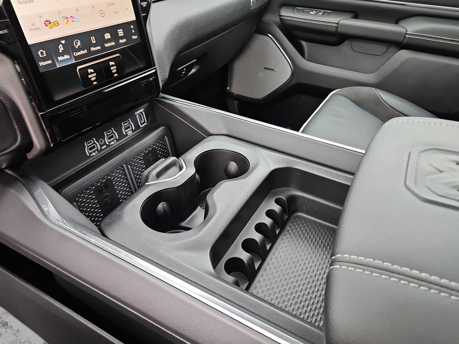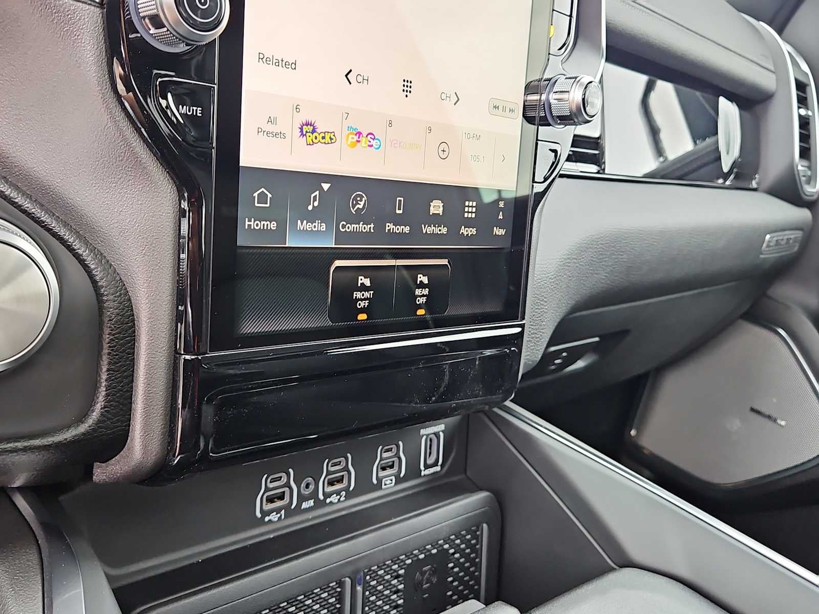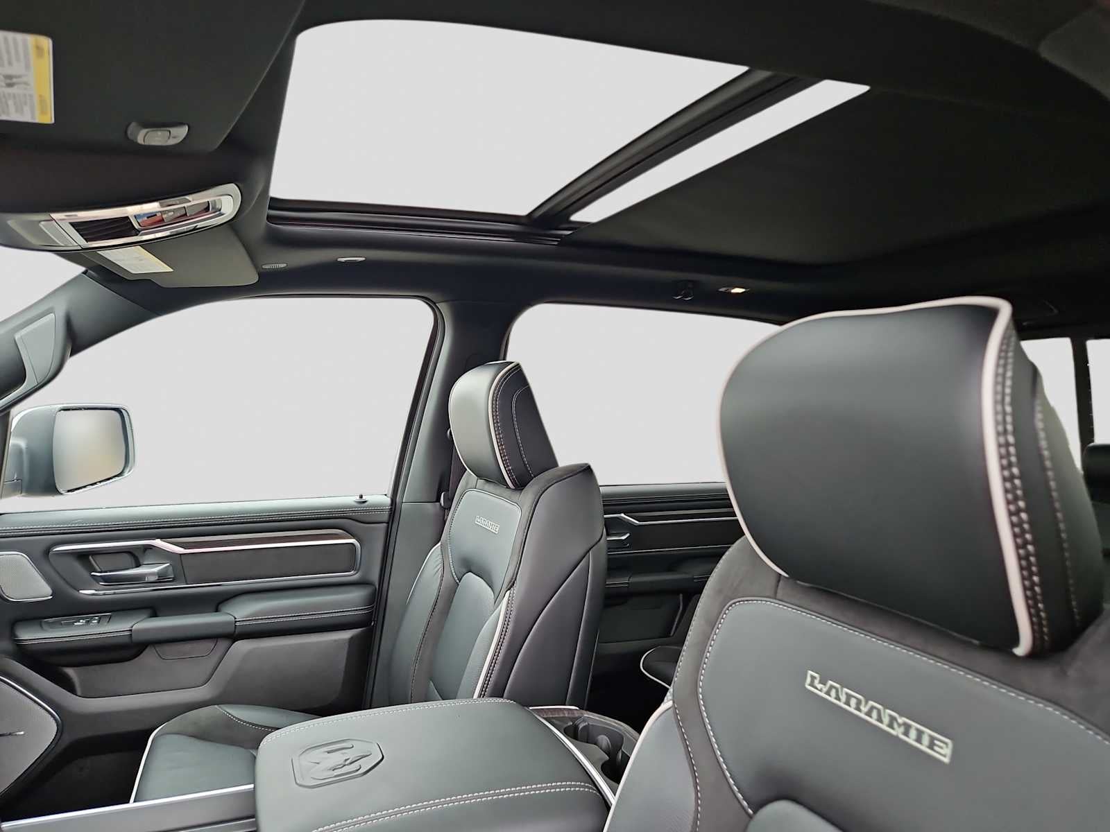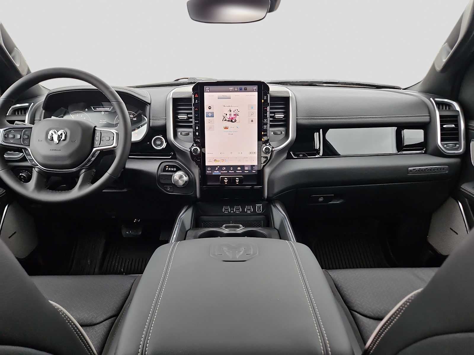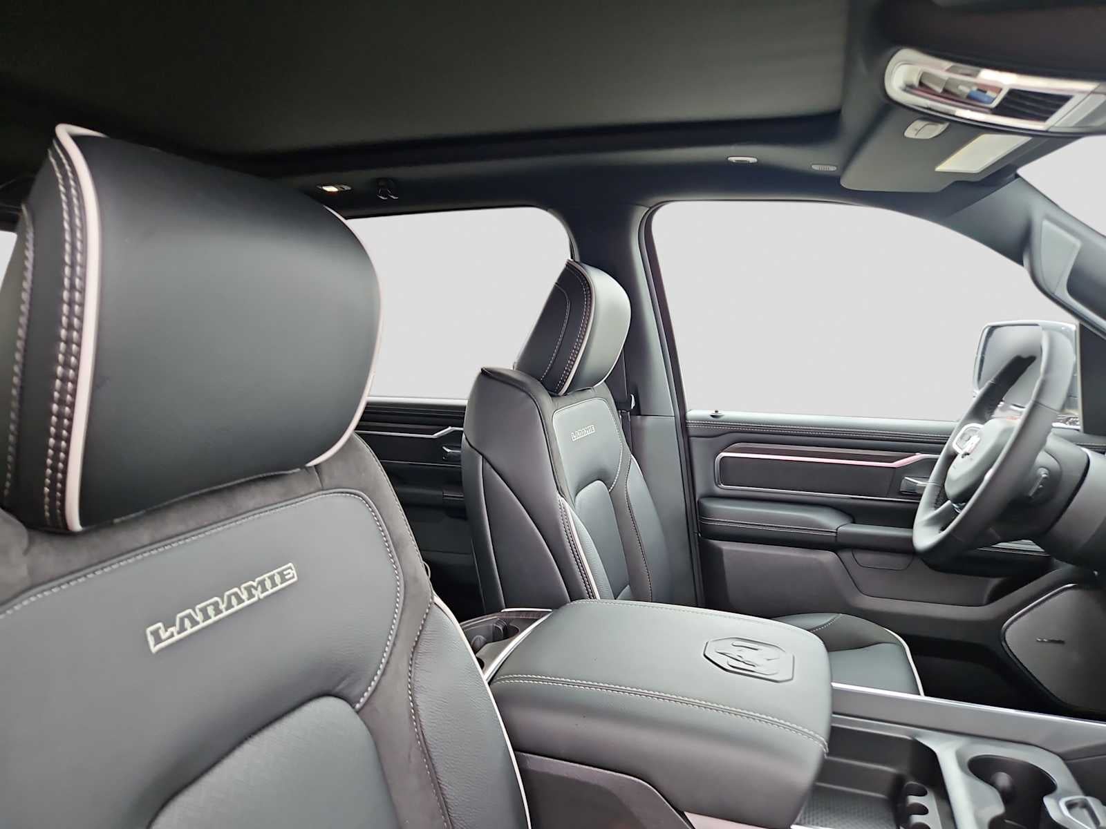 LARAMIE LEVEL 2 EQUIPMENT GROUP Rain Sensitive Windshield Wipers, Front Passenger Interactive Display, Secondary Active Grille Shutters, Smartphone As A Key Capable, 14.4 Touchscreen Display, Dual Wireless Charging Pad, Radio: Uconnect 5 Nav w/14.4 Display, harman/kardon® 19 Speaker Premium Sound, Cluster 12 TFT Color Display, Power Tailgate, POWER DEPLOYABLE RUNNING BOARDS, MOPAR FRONT & REAR RUBBER FLOOR MATS, TRANSMISSION: 8-SPEED AUTOMATIC (8HP75) (STD), ENGINE: 3.0L I6 HURRICANE SO TWIN TURBO ESS (STD), DUAL-PANE PANORAMIC SUNROOF LED Dome/Reading Lamp, Dome Dual LED Reading Lamp. Ram Laramie with Diamond Black Crystal Pearlcoat exterior and Black interior features a Straight 6 Cylinder Engine with 420 HP at 5200 RPM*.
