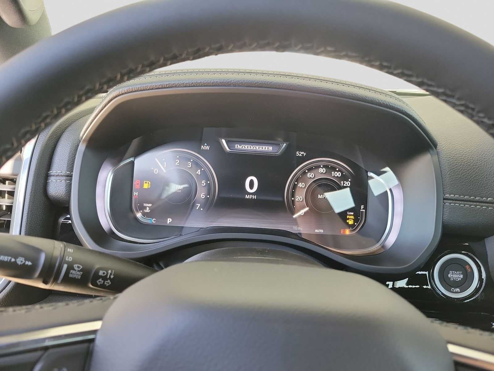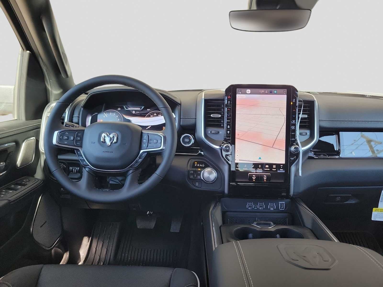 NIGHT EDITION Black Headlamp Bezels, Wheels: 22 x 9 Forged Aluminum, Tires: 285/45R22XL BSW All Season, Pirelli Brand Tires, Proximity Approach/Departure Lamps, Anti-Spin Differential Rear Axle, Accent Color Door Handles, Black Interior Accents, Body Color Front Bumper, Grille Surround 3 Black Texture 2 Black, Body Color Rear Bumper w/Step Pads, RAM Grille Badge - Black, Black Painted Exterior Mirrors Caps, Exterior Mirrors Approach Lamps, Accent Color Premium Power Mirrors, Sport Performance Hood, Black Exterior Truck Badging, Accent Color Tailgate Handle, Dual Exhaust w/Black Tips, Black Tail Lamp Bezels, LARAMIE LEVEL 2 EQUIPMENT GROUP Rain Sensitive Windshield Wipers, 14.4 Touchscreen Display, Front Passenger Interactive Display, Radio: Uconnect 5 Nav w/14.4 Display, harman/kardon® 19 Speaker Premium Sound, Cluster 12 TFT Color Display, Power Tailgate, POWER DEPLOYABLE RUNNING BOARDS, ENGINE: 5.7L V8 HEMI MDS VVT ETORQUE 48V Belt Starter Generator, Heavy Duty Engine Cooling, Passive Tuned Mass Damper, Delete Alternator, Passive Cold End Exhaust, 18 Aluminum Spare Wheel, PROTECTION GROUP Transfer Case Skid Plate, Steering Gear Skid Plate, Fuel Tank Skid Plate, Tow Hooks, MOPAR FRONT & REAR RUBBER FLOOR MATS, TRANSMISSION: 8-SPEED AUTOMATIC (8HP75) (STD). Ram Laramie with Canyon Lake exterior and Black interior features a 8 Cylinder Engine with 395 HP at 5600 RPM*.