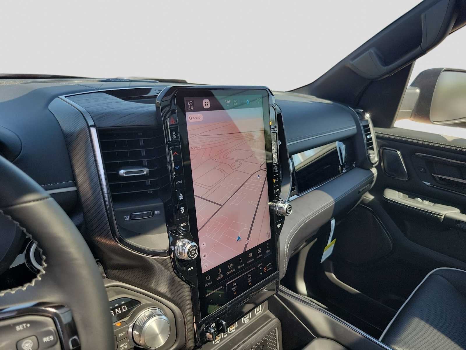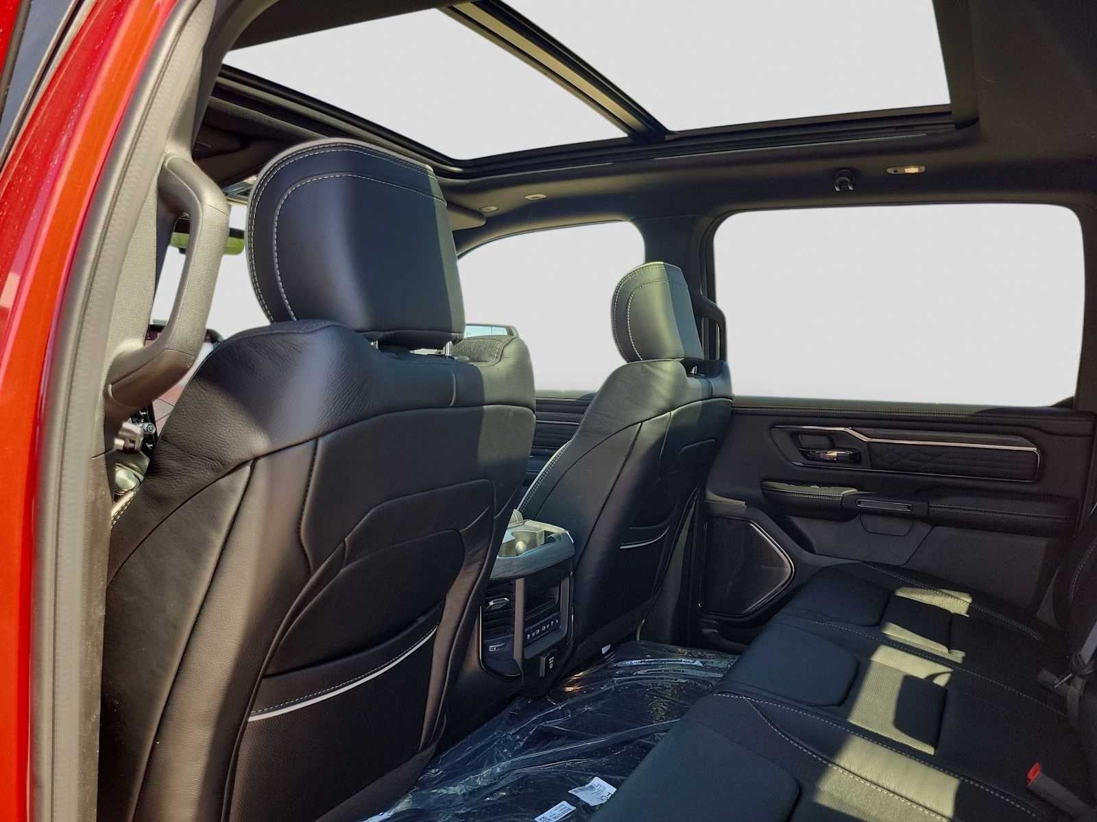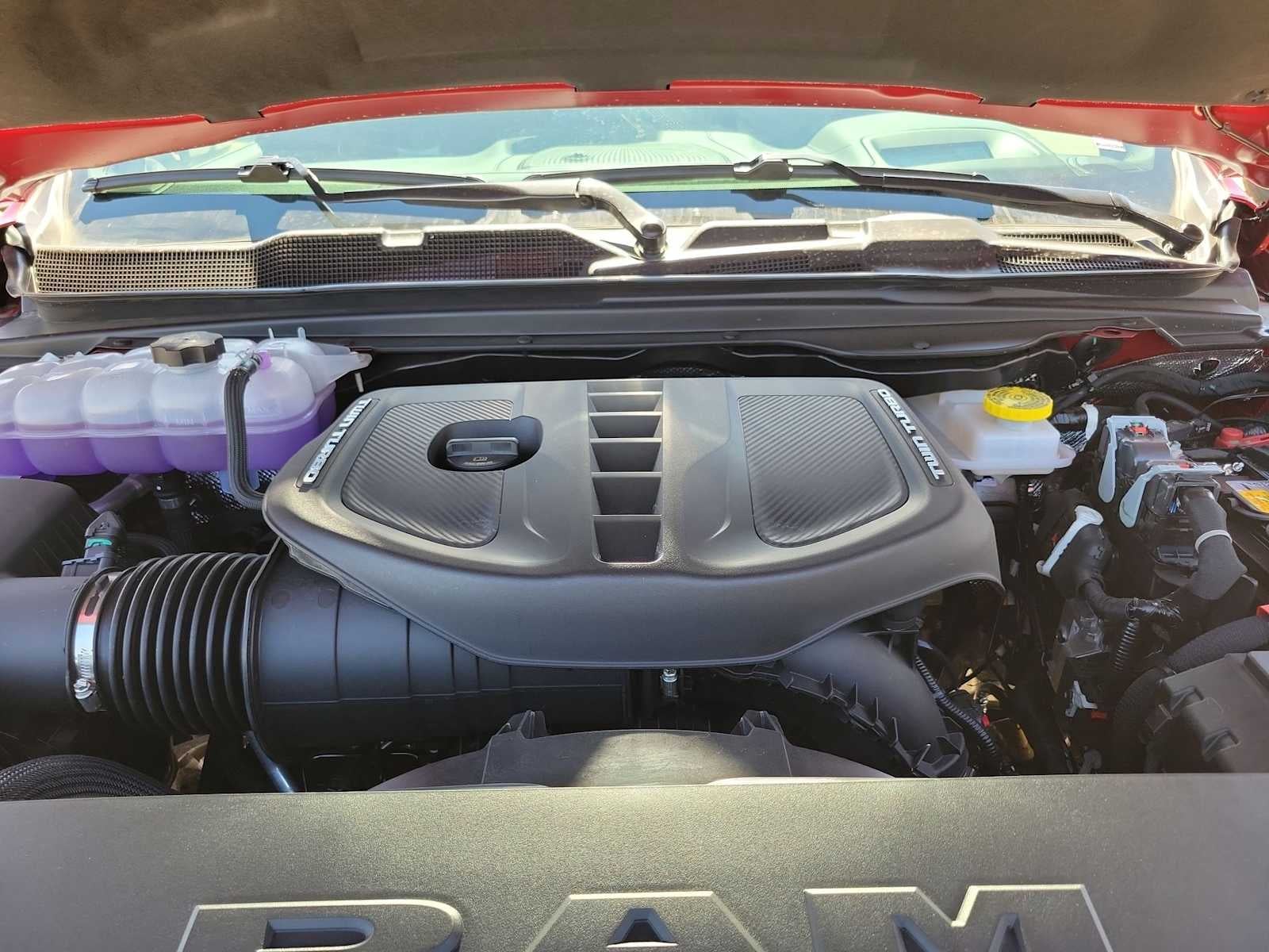 LIMITED LEVEL A EQUIPMENT GROUP Surround View Camera System, LED CHMSL Lamp, Tri-Fold Tonneau Cover, Traffic Sign Recognition, RamBox Cargo Management System, Hands-Free Active Driving Assist System, Head Up Display, Evasive Steer Assist, Drowsy Driver Detection, Exterior 115V AC Outlet, Intersection Collision Assist System, Smartphone As A Key Capable, 14.4 Touchscreen Display, Radio: Uconnect 5 Nav w/14.4 Display, 240 Amp Alternator, 12-Way/1-Way Trailer Connector, NIGHT EDITION Tires: 285/45R22XL BSW All Season, Black Headlamp Bezels, Wheels: 22 x 9 Premium Black Aluminum, Pirelli Brand Tires, Accent Color Door Handles, Body Color Front Bumper, Body Color Rear Bumper w/Step Pads, RAM Grille Badge - Black, Black Painted Exterior Mirrors Caps, Accent Color Premium Power Mirrors, Sport Performance Hood, Black Exterior Truck Badging, Black Day Light Opening Moldings, Accent Color Tailgate Handle, Dual Exhaust w/Black Tips, Black Grille Surround Texture 7 Black, Black Tail Lamp Bezels, DUAL-PANE PANORAMIC SUNROOF LED Dome/Reading Lamp, Dome Dual LED Reading Lamp, TRANSMISSION: 8-SPEED AUTOMATIC (8HP75) (STD), ENGINE: 3.0L I6 HURRICANE HO TWIN TURBO ESS (STD). Ram Limited with Molten Red Pearlcoat exterior and Black interior features a Straight 6 Cylinder Engine.