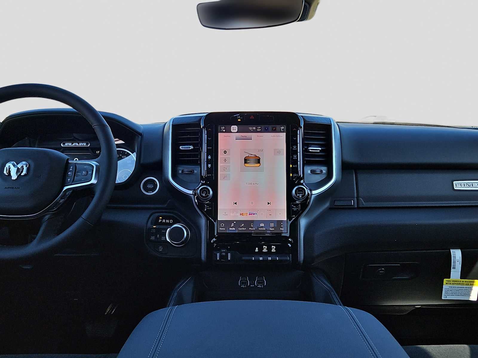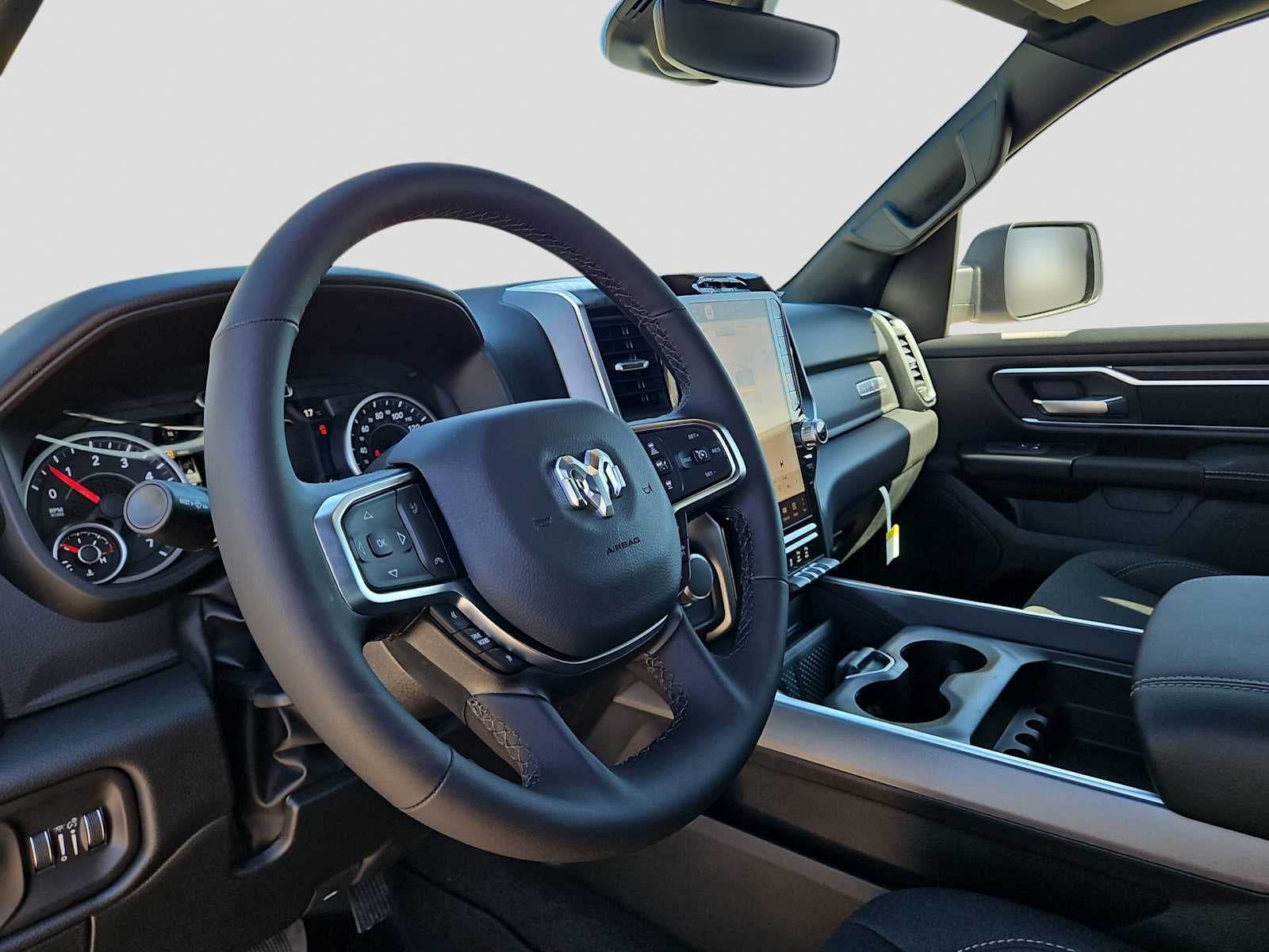 BIG HORN LEVEL 2 EQUIPMENT GROUP SiriusXM Radio Service, Power Adjustable Pedals, Leather Wrapped Steering Wheel, 12 Touchscreen Display, Glove Box Lamp, Auto Power-Folding Mirrors, 115V Auxiliary Rear Power Outlet, Media Hub w/2 Charge Only USBs, Heated Front Seats, Security Alarm, Black Premium Power Mirrors, Premium Overhead Console, 9 Amplified Speakers w/Subwoofer, Disassociated Touchscreen Display, Body Color Fender Flares, Remote Tailgate Release, 115V Auxiliary Power Outlet, LED Dome Lamp w/On/Off Switch, Universal Garage Door Opener, 2nd Row In Floor Storage Bins, Sun Visors w/Illuminated Vanity Mirrors, LED Footwell Lighting, Rear Window Defroster, Rear View Auto Dim Mirror, Rear Power Sliding Window, GPS Navigation, Overhead LED Lamps, Wheels: 20 x 9 Aluminum Chrome Clad, ENGINE: 5.7L V8 HEMI MDS VVT ETORQUE Active Noise Control System, Heavy Duty Engine Cooling, Passive Tuned Mass Damper, GVWR: 7,100 lbs, Dual Rear Exhaust w/Bright Tips, G/T Exhaust, 18 Aluminum Spare Wheel, NIGHT EDITION Tires: 275/55R20 OWL All Season, Bridgestone Brand Tires, Accent Color Premium Power Mirrors, Exterior Mirrors w/Supplemental Signals, Black Headlamp Bezels, Exterior Mirrors Courtesy Lamps, Grille Black Surround Black Mesh, Auto Power-Folding Mirrors, Wheels: 20 x 9.0 Aluminum Painted Clad, Auto Dim Exterior Driver Mirror, Black Exterior Truck Badging, Anti-Spin Differential Rear Axle, Accent Color Door Handles, Accent Color Tailgate Handle, Black Interior Accents, Dual Exhaust w/Black Tips, Body Color Front Bumper, Body Color Rear Bumper w/Step Pads, Black Tail Lamp Bezels, RAM Grille Badge - Black, Black Painted Exterior Mirrors Caps, MOPAR FRONT & REAR RUBBER FLOOR MATS, TRANSMISSION: 8-SPEED AUTOMATIC (8HP75). Ram Lone Star with Silver Zynith exterior and Black interior features a 8 Cylinder Engine with 395 HP at 5600 RPM*.