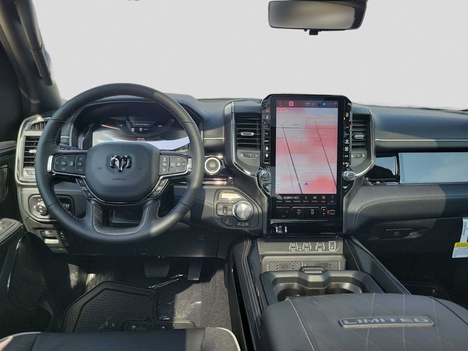 NIGHT EDITION Tires: 285/45R22XL BSW All Season, Black Headlamp Bezels, Wheels: 22 x 9 Premium Black Aluminum, Pirelli Brand Tires, Accent Color Door Handles, Body Color Front Bumper, Body Color Rear Bumper w/Step Pads, RAM Grille Badge - Black, Black Painted Exterior Mirrors Caps, Accent Color Premium Power Mirrors, Sport Performance Hood, Black Exterior Truck Badging, Black Day Light Opening Moldings, Accent Color Tailgate Handle, Dual Exhaust w/Black Tips, Black Grille Surround Texture 7 Black, Black Tail Lamp Bezels, DUAL-PANE PANORAMIC SUNROOF LED Dome/Reading Lamp, Dome Dual LED Reading Lamp, OFF ROAD GROUP Off Road Decals, Steering Gear Skid Plate, Falken Brand Tires, Raised Ride Height, Front Extra HD Shock Absorbers, Rear Extra HD Shock Absorbers, Full Size Spare Tire, E-Locker Rear Axle, Transfer Case Skid Plate, Fuel Tank Skid Plate, Selec-Speed Control, TRANSMISSION: 8-SPEED AUTOMATIC (8HP75) (STD), ENGINE: 3.0L I6 HURRICANE HO TWIN TURBO ESS (STD), LIMITED LEVEL A EQUIPMENT GROUP Surround View Camera System, LED CHMSL Lamp, Tri-Fold Tonneau Cover, Traffic Sign Recognition, RamBox Cargo Management System, Hands-Free Active Driving Assist System, Head Up Display, Evasive Steer Assist, Drowsy Driver Detection, Exterior 115V AC Outlet, Intersection Collision Assist System, Smartphone As A Key Capable, 14.4 Touchscreen Display, Radio: Uconnect 5 Nav w/14.4 Display, 240 Amp Alternator, 12-Way/1-Way Trailer Connector, MULTI-FUNCTION TAILGATE Remote Tailgate Release, RAMs Head Badge. Ram Limited with Bright White Clearcoat exterior and Black interior features a Straight 6 Cylinder Engine.
