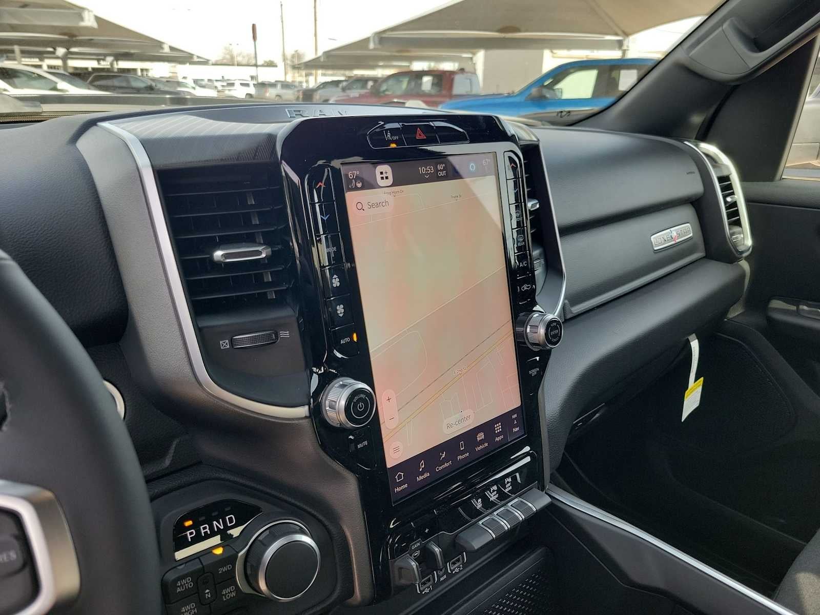 BIG HORN LEVEL 2 EQUIPMENT GROUP SiriusXM Radio Service, Power Adjustable Pedals, Leather Wrapped Steering Wheel, 12 Touchscreen Display, Glove Box Lamp, Auto Power-Folding Mirrors, 115V Auxiliary Rear Power Outlet, Media Hub w/2 Charge Only USBs, Heated Front Seats, Security Alarm, Black Premium Power Mirrors, Premium Overhead Console, 9 Amplified Speakers w/Subwoofer, Disassociated Touchscreen Display, Body Color Fender Flares, Remote Tailgate Release, 115V Auxiliary Power Outlet, LED Dome Lamp w/On/Off Switch, Universal Garage Door Opener, 2nd Row In Floor Storage Bins, Sun Visors w/Illuminated Vanity Mirrors, LED Footwell Lighting, Rear Window Defroster, Rear View Auto Dim Mirror, Rear Power Sliding Window, GPS Navigation, Overhead LED Lamps, Wheels: 20 x 9 Aluminum Chrome Clad, ENGINE: 3.0L I6 HURRICANE SO TWIN TURBO ESS Aux Battery, 700 Amp Maintenance Free Battery, Active Noise Control System, GVWR: 7,100 lbs, 3.55 Rear Axle Ratio, Dual Rear Exhaust w/Bright Tips, Start-Stop Dual Battery System, 230 Amp Alternator, NIGHT EDITION Tires: 275/55R20 OWL All Season, Bridgestone Brand Tires, Accent Color Premium Power Mirrors, Exterior Mirrors w/Supplemental Signals, Black Headlamp Bezels, Exterior Mirrors Courtesy Lamps, Grille Black Surround Black Mesh, Auto Power-Folding Mirrors, Wheels: 20 x 9.0 Aluminum Painted Clad, Auto Dim Exterior Driver Mirror, Black Exterior Truck Badging, Anti-Spin Differential Rear Axle, Accent Color Door Handles, Accent Color Tailgate Handle, Black Interior Accents, Dual Exhaust w/Black Tips, Body Color Front Bumper, Body Color Rear Bumper w/Step Pads, Black Tail Lamp Bezels, RAM Grille Badge - Black, Black Painted Exterior Mirrors Caps, BED UTILITY GROUP MOPAR Spray In Bedliner, MOPAR 4 Adjustable Cargo Tie-Down Hooks, Pick-Up Box Lighting, Exterior 115V AC Outlet, MOPAR BLACK TUBULAR SIDE STEPS, PROTECTION GROUP Transfer Case Skid Plate, Steering Gear Skid Plate, Fuel Tank Skid Plate, Tow Hooks, MOPAR FRONT & REAR RUBBER FLOOR MATS, TRANSMISSION: 8-SPEED AUTOMATIC (8HP75). Ram Lone Star with Canyon Lake exterior and Black interior features a Straight 6 Cylinder Engine with 305 HP at 6400 RPM*.