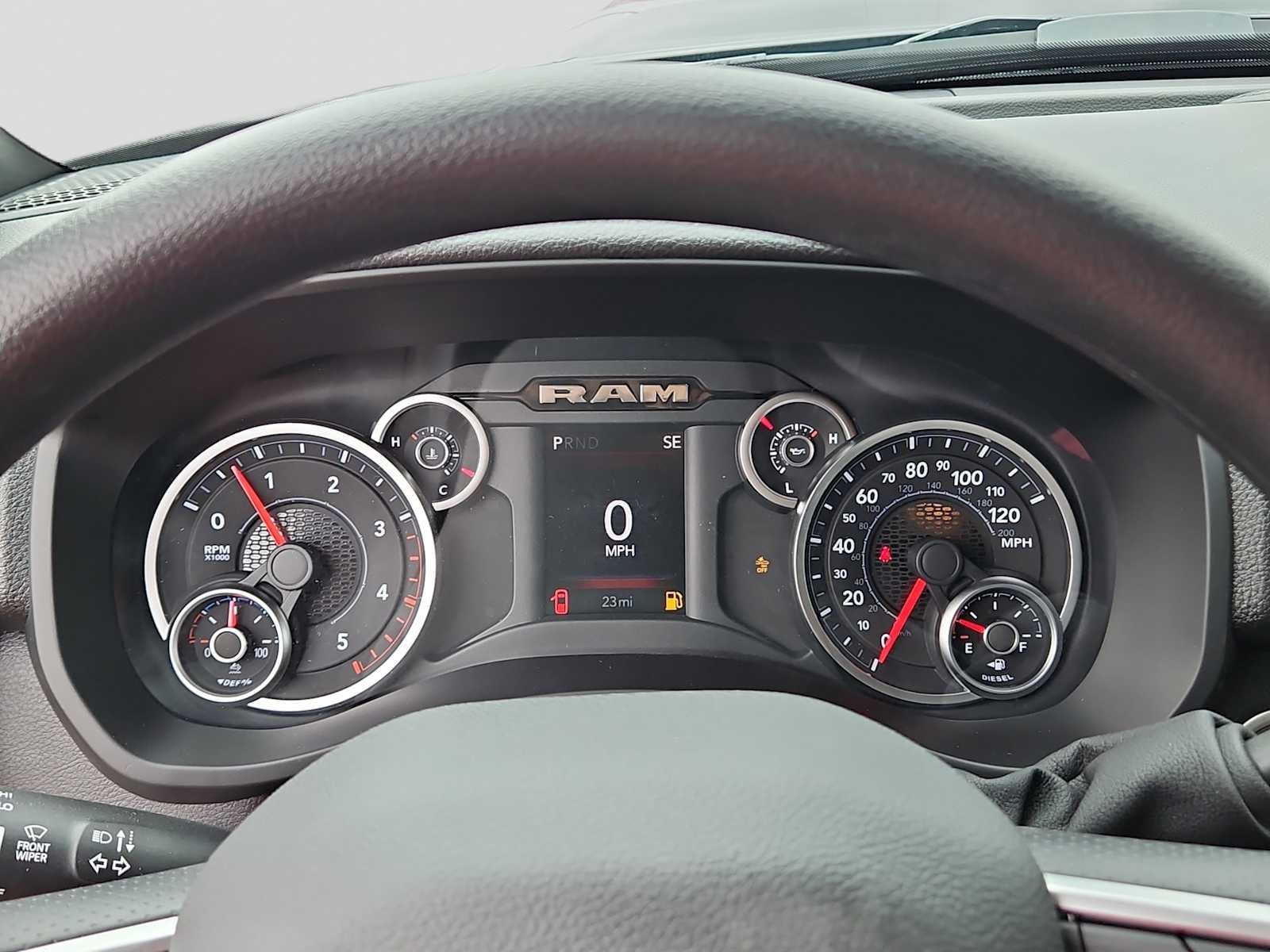 ENGINE: 6.7L I6 CUMMINS HO TURBO DIESEL Selective Catalytic Reduction (Urea), Dual 730 Amp Maintenance Free Batteries, Cummins Turbo Diesel Badge, Heavy Duty Engine Cooling, Diesel Exhaust Brake, Supplemental Heater, 3.42 Axle Ratio, Front Bumper Sight Shields, Capless Fuel Fill w/o Discriminator, GVWR: 11,040 lbs, TRADESMAN LEVEL 1 EQUIPMENT GROUP Convenience Group, Emergency Vehicle Alert System (EVAS), 12 Touchscreen Display, Exterior 115V AC Outlet, Alexa Built-In, Disassociated Touchscreen Display, 115V Auxiliary Front Power Outlet, Rear View Auto Dim Mirror, Rear Power Sliding Window, Tinted Acoustic Windshield Glass, GPS Navigation, SiriusXM w/360L, Connected Travel & Traffic Services, Off-Road Info Pages, Trailer Tow Pages, 400W Inverter, HD Radio, Radio: Uconnect 5 Nav w/12.0 Display, Air Conditioning ATC w/Dual Zone Control, BED UTILITY GROUP MOPAR Spray In Bedliner, LED Bed Lighting, MOPAR Deployable Bed Step, ANTI-SPIN DIFFERENTIAL REAR AXLE, TRANSMISSION: 8-SPEED TORQUEFLITE HD AUTOMATIC, BLACK, CLOTH 40/20/40 BENCH SEAT, QUICK ORDER PACKAGE 24C BLACK EXPRESS Engine: 6.7L I6 Cummins HO Turbo Diesel, Transmission: 8-Speed TorqueFlite HD Automatic, Wheels: 20 x 8.0 Black Painted Aluminum, Auto Power-Folding Mirrors, Painted Front Bumper, Painted Rear Bumper, Exterior Mirrors w/Heating Element, MOPAR Black Tubular Side Steps, Mirror Running Lights, Body Color Grille-Surround, Carpet Floor Covering, Power-Adjustable Convex Aux Mirrors, Forward & Reverse Utility Lights, Power Heated Folding Telescopic Mirrors, Exterior Mirrors w/Supplemental Signals, Sport Performance Hood, Exterior Mirrors Courtesy Lamps, Tires: LT285/60R20E OWL On/Off Road, Power Adjust Mirrors, Power Telescoping Mirrors, Front & Rear Floor Mats, ParkSense Front/Rear Park Assist System. Ram Tradesman with Diamond Black Crystal Pearlcoat exterior and Black interior features a Straight 6 Cylinder Engine with 430 HP at 2800 RPM*.