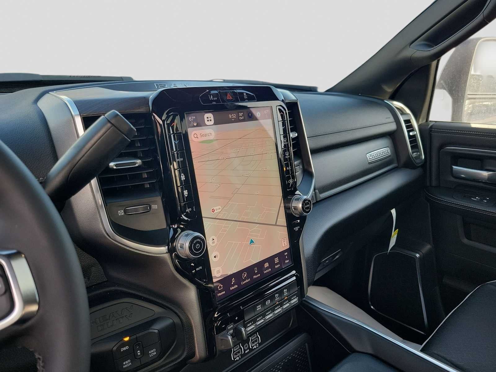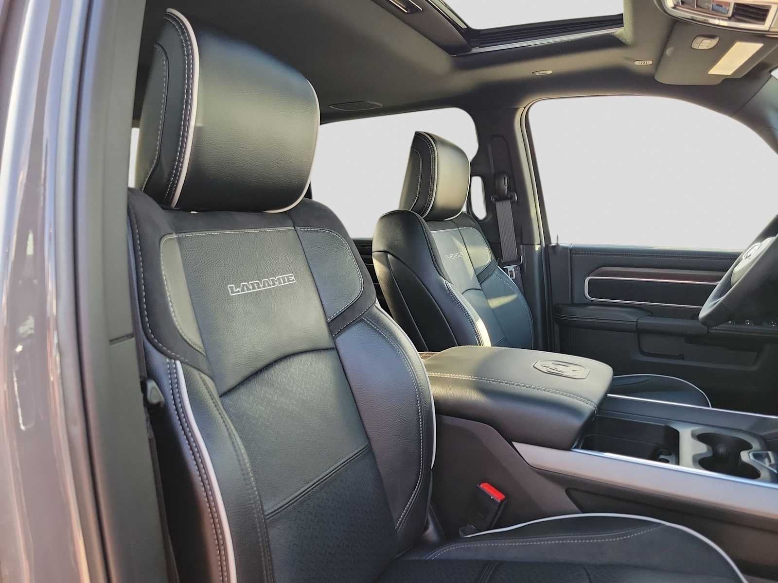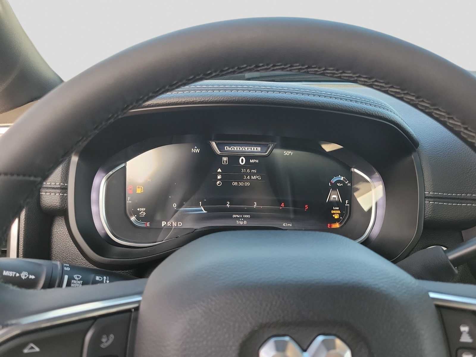 ENGINE: 6.7L I6 CUMMINS HO TURBO DIESEL Selective Catalytic Reduction (Urea), Dual 730 Amp Maintenance Free Batteries, Cummins Turbo Diesel Badge, Heavy Duty Engine Cooling, Diesel Exhaust Brake, Supplemental Heater, 3.42 Axle Ratio, Front Bumper Sight Shields, Capless Fuel Fill w/o Discriminator, GVWR: 11,040 lbs, NIGHT EDITION Tires: LT285/60R20E OWL On/Off Road, Black Exterior Truck Badging, Wheels: 20 x 8.0 Black Painted Aluminum, Gloss Black Grille Billets/Accents, Body Color Grille-Surround, Sport Performance Hood, Black Exterior Mirrors, LARAMIE LEVEL 1 PLUS EQUIPMENT GROUP CTR Stop Lamp w/Cargo View Camera, Rain Sensitive Windshield Wipers, Power Adjustable Pedals w/Memory, LED Bed Lighting, Traffic Sign Recognition, Adaptive Steering System, Auto Dim Exterior Mirror, Anti-Spin Differential Rear Axle, Drowsy Driver Detection, MOPAR Deployable Bed Step, Foam Bottle Insert (Door Trim Panel), Active Lane Management System, Power Heated Fold Telescopic Mirrors w/Memory, MOPAR Spray In Bedliner, Remote Tailgate Release, Auto High Beam Headlamp Control, Exterior Mirrors w/Memory, 2nd Row In Floor Storage Bins, Auto Dim Exterior Passenger Mirror, Auto Adjust In Reverse Exterior Mirrors, TOWING TECHNOLOGY GROUP Surround View Camera System, Trailer Tire Pressure Monitoring System, Trailer Reverse Guidance, POWER SUNROOF, TRANSMISSION: 8-SPEED TORQUEFLITE HD AUTOMATIC, BLACK, LEATHER TRIMMED BUCKET SEATS Bucket Seats, Dual Wireless Charging Pad, Ventilated Front Seats, Radio/Driver Seat/Mirrors/Pedals Memory, Full Length Upgraded Floor Console. Ram Laramie with Ceramic Gray Clearcoat exterior and Black interior features a Straight 6 Cylinder Engine with 430 HP at 2800 RPM*.