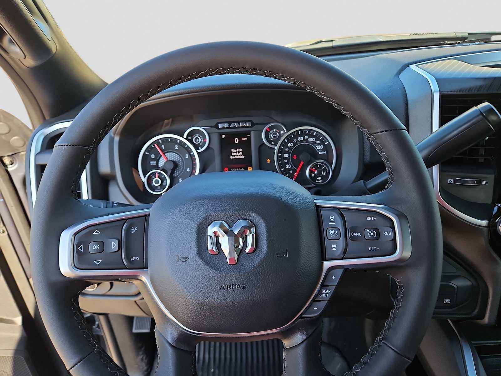 ENGINE: 6.7L I6 CUMMINS HO TURBO DIESEL Selective Catalytic Reduction (Urea), Dual 730 Amp Maintenance Free Batteries, Cummins Turbo Diesel Badge, Heavy Duty Engine Cooling, Diesel Exhaust Brake, Supplemental Heater, 3.42 Axle Ratio, Front Bumper Sight Shields, Capless Fuel Fill w/o Discriminator, GVWR: 11,040 lbs, BIG HORN LEVEL 1 PLUS EQUIPMENT GROUP Emergency Vehicle Alert System (EVAS), Lone Star IP Badge, 12 Touchscreen Display, Glove Box Lamp, Auto Power-Folding Mirrors, Footwell Courtesy Lamp, Anti-Spin Differential Rear Axle, MOPAR Deployable Bed Step, Alexa Built-In, Forward & Reverse Utility Lights, Locking Lower Glove Box, Remote Start System, 9 Alpine Speakers w/Subwoofer, Disassociated Touchscreen Display, Dual Glove Boxes, 2nd Row In Floor Storage Bins, Rear View Auto Dim Mirror, Rear Dome w/On/Off Switch Lamp, LED Bed Lighting, GPS Navigation, SiriusXM w/360L, Connected Travel & Traffic Services, Foam Bottle Insert (Door Trim Panel), Off-Road Info Pages, Trailer Tow Pages, HD Radio, Radio: Uconnect 5 Nav w/12.0 Display, Power Heated Folding Telescopic Mirrors, Steering Wheel Mounted, TOWING TECHNOLOGY GROUP CTR Stop Lamp w/Cargo View Camera, Surround View Camera System, Trailer Tire Pressure Monitoring System, Blind Spot & Cross Path Detection, LED Tail Lamps, Red Tail Lamp Bezels, Trailer Reverse Guidance, CHROME FLAT WHEEL-TO-WHEEL SIDE STEPS, BLACK, PREMIUM CLOTH BUCKET SEATS Bucket Seats, Power Adjust 8-Way Driver Seat, Folding Flat Load Floor Storage, Rear 60/40 Folding Seat, Front Seat Back Map Pockets, Power 2-Way Driver Lumbar Adjust, Full Length Upgraded Floor Console, MOPAR FRONT & REAR RUBBER FLOOR MATS, TRANSMISSION: 8-SPEED TORQUEFLITE HD AUTOMATIC. Ram Lone Star with Forged Blue Metallic exterior and Black interior features a Straight 6 Cylinder Engine with 430 HP at 2800 RPM*.