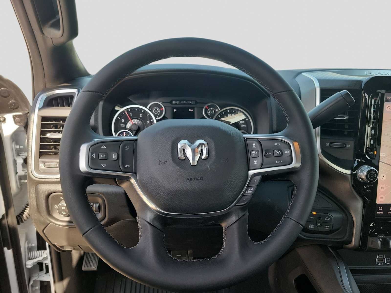 ENGINE: 6.7L I6 CUMMINS HO TURBO DIESEL Selective Catalytic Reduction (Urea), Dual 730 Amp Maintenance Free Batteries, Cummins Turbo Diesel Badge, Heavy Duty Engine Cooling, Diesel Exhaust Brake, Supplemental Heater, 3.42 Axle Ratio, Front Bumper Sight Shields, Capless Fuel Fill w/o Discriminator, GVWR: 11,040 lbs, BIG HORN LEVEL 1 PLUS EQUIPMENT GROUP Emergency Vehicle Alert System (EVAS), Lone Star IP Badge, 12 Touchscreen Display, Glove Box Lamp, Auto Power-Folding Mirrors, Footwell Courtesy Lamp, Anti-Spin Differential Rear Axle, MOPAR Deployable Bed Step, Alexa Built-In, Forward & Reverse Utility Lights, Locking Lower Glove Box, Remote Start System, 9 Alpine Speakers w/Subwoofer, Disassociated Touchscreen Display, Dual Glove Boxes, 2nd Row In Floor Storage Bins, Rear View Auto Dim Mirror, Rear Dome w/On/Off Switch Lamp, LED Bed Lighting, GPS Navigation, SiriusXM w/360L, Connected Travel & Traffic Services, Foam Bottle Insert (Door Trim Panel), Off-Road Info Pages, Trailer Tow Pages, HD Radio, Radio: Uconnect 5 Nav w/12.0 Display, Power Heated Folding Telescopic Mirrors, Steering Wheel Mounted, NIGHT EDITION Gloss Black Nostrils/Mic Black Grille, Tires: LT285/60R20E OWL On/Off Road, Black Exterior Truck Badging, Wheels: 20 x 8.0 Black Painted Aluminum, Body Color Grille-Surround, Black Interior Accents, Black Wheel Center Hub, Painted Front Bumper, Painted Rear Bumper, PAINTED FLAT WHEEL-TO-WHEEL SIDE STEPS, BLACK, PREMIUM CLOTH BUCKET SEATS Bucket Seats, Power Adjust 8-Way Driver Seat, Folding Flat Load Floor Storage, Rear 60/40 Folding Seat, Front Seat Back Map Pockets, Power 2-Way Driver Lumbar Adjust, Full Length Upgraded Floor Console, TRANSMISSION: 8-SPEED TORQUEFLITE HD AUTOMATIC. Ram Lone Star with Bright White Clearcoat exterior and Black interior features a Straight 6 Cylinder Engine with 430 HP at 2800 RPM*.