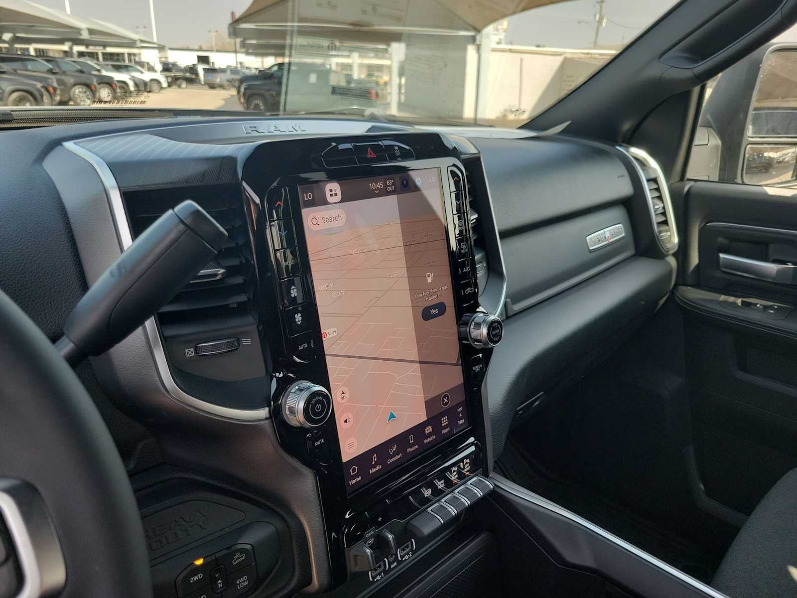 ENGINE: 6.7L I6 CUMMINS HO TURBO DIESEL Selective Catalytic Reduction (Urea), Dual 730 Amp Maintenance Free Batteries, Cummins Turbo Diesel Badge, Heavy Duty Engine Cooling, Diesel Exhaust Brake, Supplemental Heater, 3.42 Axle Ratio, Front Bumper Sight Shields, Capless Fuel Fill w/o Discriminator, GVWR: 11,040 lbs, BIG HORN LEVEL 1 PLUS EQUIPMENT GROUP Emergency Vehicle Alert System (EVAS), Lone Star IP Badge, 12 Touchscreen Display, Glove Box Lamp, Auto Power-Folding Mirrors, Footwell Courtesy Lamp, Anti-Spin Differential Rear Axle, MOPAR Deployable Bed Step, Alexa Built-In, Forward & Reverse Utility Lights, Locking Lower Glove Box, Remote Start System, 9 Alpine Speakers w/Subwoofer, Disassociated Touchscreen Display, Dual Glove Boxes, 2nd Row In Floor Storage Bins, Rear View Auto Dim Mirror, Rear Dome w/On/Off Switch Lamp, LED Bed Lighting, GPS Navigation, SiriusXM w/360L, Connected Travel & Traffic Services, Foam Bottle Insert (Door Trim Panel), Off-Road Info Pages, Trailer Tow Pages, HD Radio, Radio: Uconnect 5 Nav w/12.0 Display, Power Heated Folding Telescopic Mirrors, Steering Wheel Mounted, NIGHT EDITION Gloss Black Nostrils/Mic Black Grille, Tires: LT285/60R20E OWL On/Off Road, Black Exterior Truck Badging, Wheels: 20 x 8.0 Black Painted Aluminum, Body Color Grille-Surround, Black Interior Accents, Black Wheel Center Hub, Painted Front Bumper, Painted Rear Bumper, PAINTED FLAT WHEEL-TO-WHEEL SIDE STEPS, BLACK, PREMIUM CLOTH BUCKET SEATS Bucket Seats, Power Adjust 8-Way Driver Seat, Folding Flat Load Floor Storage, Rear 60/40 Folding Seat, Front Seat Back Map Pockets, Power 2-Way Driver Lumbar Adjust, Full Length Upgraded Floor Console, TRANSMISSION: 8-SPEED TORQUEFLITE HD AUTOMATIC. Ram Lone Star with Forged Blue Metallic exterior and Black interior features a Straight 6 Cylinder Engine with 430 HP at 2800 RPM*.