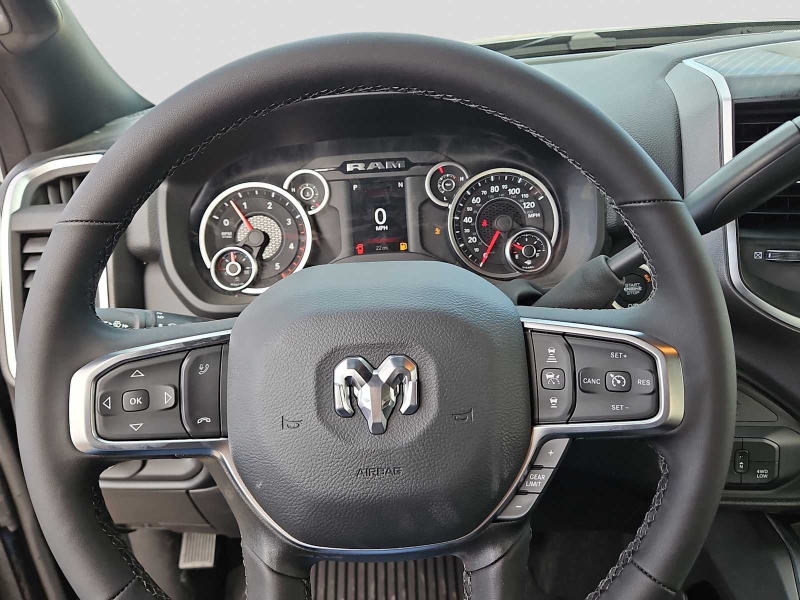 ENGINE: 6.7L I6 CUMMINS HO TURBO DIESEL Selective Catalytic Reduction (Urea), Dual 730 Amp Maintenance Free Batteries, Cummins Turbo Diesel Badge, Heavy Duty Engine Cooling, Diesel Exhaust Brake, Supplemental Heater, 3.42 Axle Ratio, Front Bumper Sight Shields, Capless Fuel Fill w/o Discriminator, GVWR: 11,040 lbs, BIG HORN LEVEL 1 PLUS EQUIPMENT GROUP Emergency Vehicle Alert System (EVAS), Lone Star IP Badge, 12 Touchscreen Display, Glove Box Lamp, Auto Power-Folding Mirrors, Footwell Courtesy Lamp, Anti-Spin Differential Rear Axle, MOPAR Deployable Bed Step, Alexa Built-In, Forward & Reverse Utility Lights, Locking Lower Glove Box, Remote Start System, 9 Alpine Speakers w/Subwoofer, Disassociated Touchscreen Display, Dual Glove Boxes, 2nd Row In Floor Storage Bins, Rear View Auto Dim Mirror, Rear Dome w/On/Off Switch Lamp, LED Bed Lighting, GPS Navigation, SiriusXM w/360L, Connected Travel & Traffic Services, Foam Bottle Insert (Door Trim Panel), Off-Road Info Pages, Trailer Tow Pages, HD Radio, Radio: Uconnect 5 Nav w/12.0 Display, Power Heated Folding Telescopic Mirrors, Steering Wheel Mounted, NIGHT EDITION Gloss Black Nostrils/Mic Black Grille, Tires: LT285/60R20E OWL On/Off Road, Black Exterior Truck Badging, Wheels: 20 x 8.0 Black Painted Aluminum, Body Color Grille-Surround, Black Interior Accents, Black Wheel Center Hub, Painted Front Bumper, Painted Rear Bumper, BLACK, PREMIUM CLOTH BUCKET SEATS Bucket Seats, Power Adjust 8-Way Driver Seat, Folding Flat Load Floor Storage, Rear 60/40 Folding Seat, Front Seat Back Map Pockets, Power 2-Way Driver Lumbar Adjust, Full Length Upgraded Floor Console, MOPAR FRONT & REAR RUBBER FLOOR MATS, TRANSMISSION: 8-SPEED TORQUEFLITE HD AUTOMATIC. Ram Lone Star with Diamond Black Crystal Pearlcoat exterior and Black interior features a Straight 6 Cylinder Engine with 430 HP at 2800 RPM*.