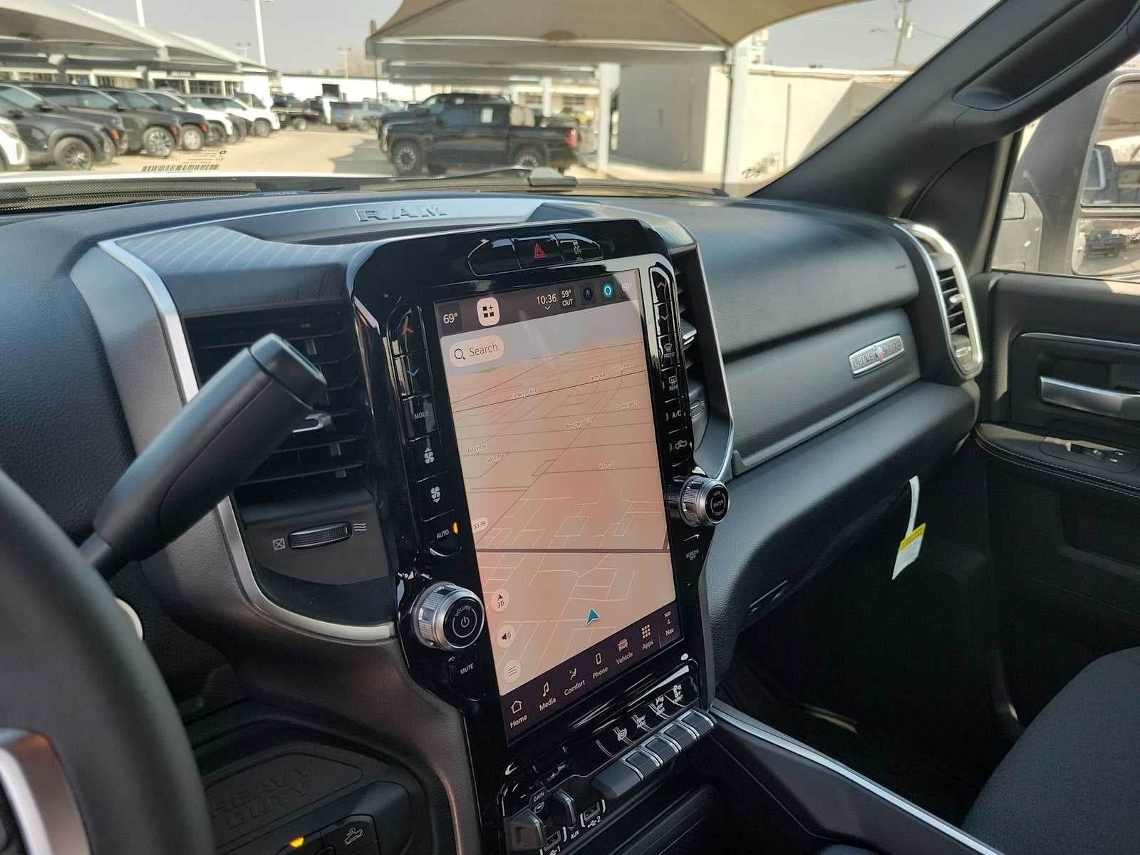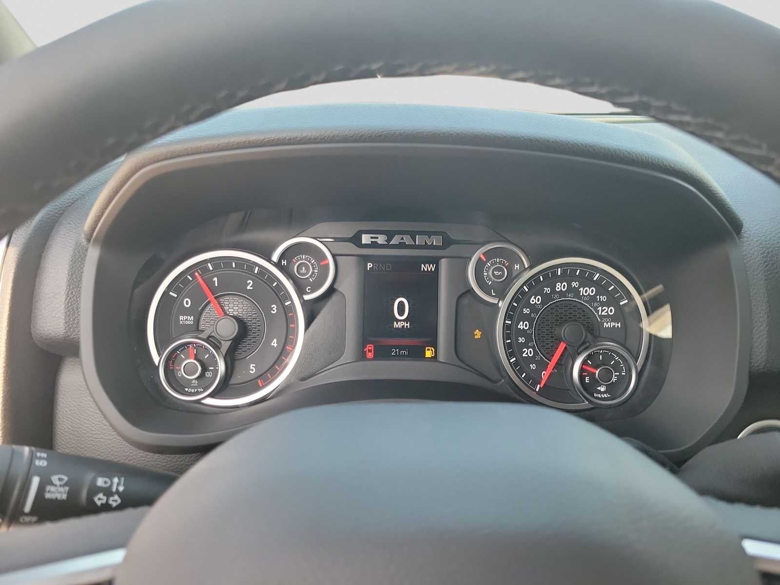 ENGINE: 6.7L I6 CUMMINS HO TURBO DIESEL Selective Catalytic Reduction (Urea), Dual 730 Amp Maintenance Free Batteries, Cummins Turbo Diesel Badge, Heavy Duty Engine Cooling, Diesel Exhaust Brake, Supplemental Heater, 3.42 Axle Ratio, Front Bumper Sight Shields, Capless Fuel Fill w/o Discriminator, GVWR: 11,040 lbs, BIG HORN LEVEL 1 PLUS EQUIPMENT GROUP Emergency Vehicle Alert System (EVAS), Lone Star IP Badge, 12 Touchscreen Display, Glove Box Lamp, Auto Power-Folding Mirrors, Footwell Courtesy Lamp, Anti-Spin Differential Rear Axle, MOPAR Deployable Bed Step, Alexa Built-In, Forward & Reverse Utility Lights, Locking Lower Glove Box, Remote Start System, 9 Alpine Speakers w/Subwoofer, Disassociated Touchscreen Display, Dual Glove Boxes, 2nd Row In Floor Storage Bins, Rear View Auto Dim Mirror, Rear Dome w/On/Off Switch Lamp, LED Bed Lighting, GPS Navigation, SiriusXM w/360L, Connected Travel & Traffic Services, Foam Bottle Insert (Door Trim Panel), Off-Road Info Pages, Trailer Tow Pages, HD Radio, Radio: Uconnect 5 Nav w/12.0 Display, Power Heated Folding Telescopic Mirrors, Steering Wheel Mounted, NIGHT EDITION Gloss Black Nostrils/Mic Black Grille, Tires: LT285/60R20E OWL On/Off Road, Black Exterior Truck Badging, Wheels: 20 x 8.0 Black Painted Aluminum, Body Color Grille-Surround, Black Interior Accents, Black Wheel Center Hub, Painted Front Bumper, Painted Rear Bumper, PAINTED FLAT WHEEL-TO-WHEEL SIDE STEPS, BLACK, PREMIUM CLOTH BUCKET SEATS Bucket Seats, Power Adjust 8-Way Driver Seat, Folding Flat Load Floor Storage, Rear 60/40 Folding Seat, Front Seat Back Map Pockets, Power 2-Way Driver Lumbar Adjust, Full Length Upgraded Floor Console, TRANSMISSION: 8-SPEED TORQUEFLITE HD AUTOMATIC. Ram Lone Star with Bright White Clearcoat exterior and Black interior features a Straight 6 Cylinder Engine with 430 HP at 2800 RPM*.