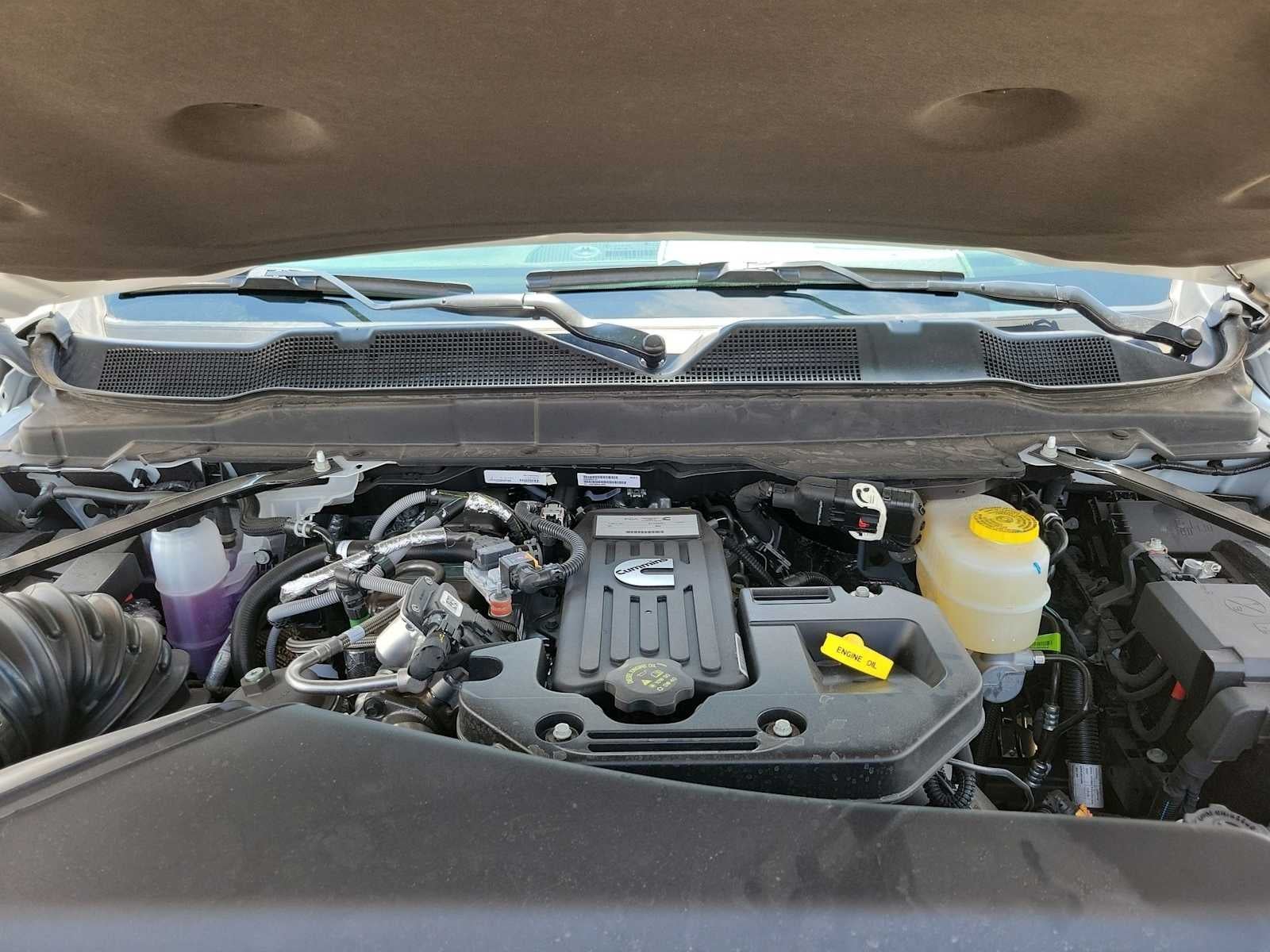 ENGINE: 6.7L I6 CUMMINS HO TURBO DIESEL Selective Catalytic Reduction (Urea), Dual 730 Amp Maintenance Free Batteries, Cummins Turbo Diesel Badge, Heavy Duty Engine Cooling, Diesel Exhaust Brake, Supplemental Heater, 3.42 Axle Ratio, Front Bumper Sight Shields, Capless Fuel Fill w/o Discriminator, GVWR: 11,040 lbs, TRADESMAN LEVEL 2 EQUIPMENT GROUP Convenience Group, Emergency Vehicle Alert System (EVAS), 12 Touchscreen Display, Anti-Spin Differential Rear Axle, Mirror Running Lights, Exterior 115V AC Outlet, Alexa Built-In, Power-Adjustable Convex Aux Mirrors, Disassociated Touchscreen Display, Matte Black Mesh Grille w/Chrome, 115V Auxiliary Front Power Outlet, Center Hub, Rear View Auto Dim Mirror, Rear Power Sliding Window, Tinted Acoustic Windshield Glass, GPS Navigation, Bright Rear Bumper, Exterior Mirrors w/Heating Element, Chrome Grille Surround, MOPAR Black Tubular Side Steps, SiriusXM w/360L, Connected Travel & Traffic Services, Carpet Floor Covering, Off-Road Info Pages, Trailer Tow Pages, 400W Inverter, HD Radio, Power Heated Folding Telescope Mirrors, Radio: Uconnect 5 Nav w/12.0, TRANSMISSION: 8-SPEED TORQUEFLITE HD AUTOMATIC, BLACK, CLOTH 40/20/40 BENCH SEAT. Ram Tradesman with Bright White Clearcoat exterior and Black interior features a Straight 6 Cylinder Engine with 430 HP at 2800 RPM*.