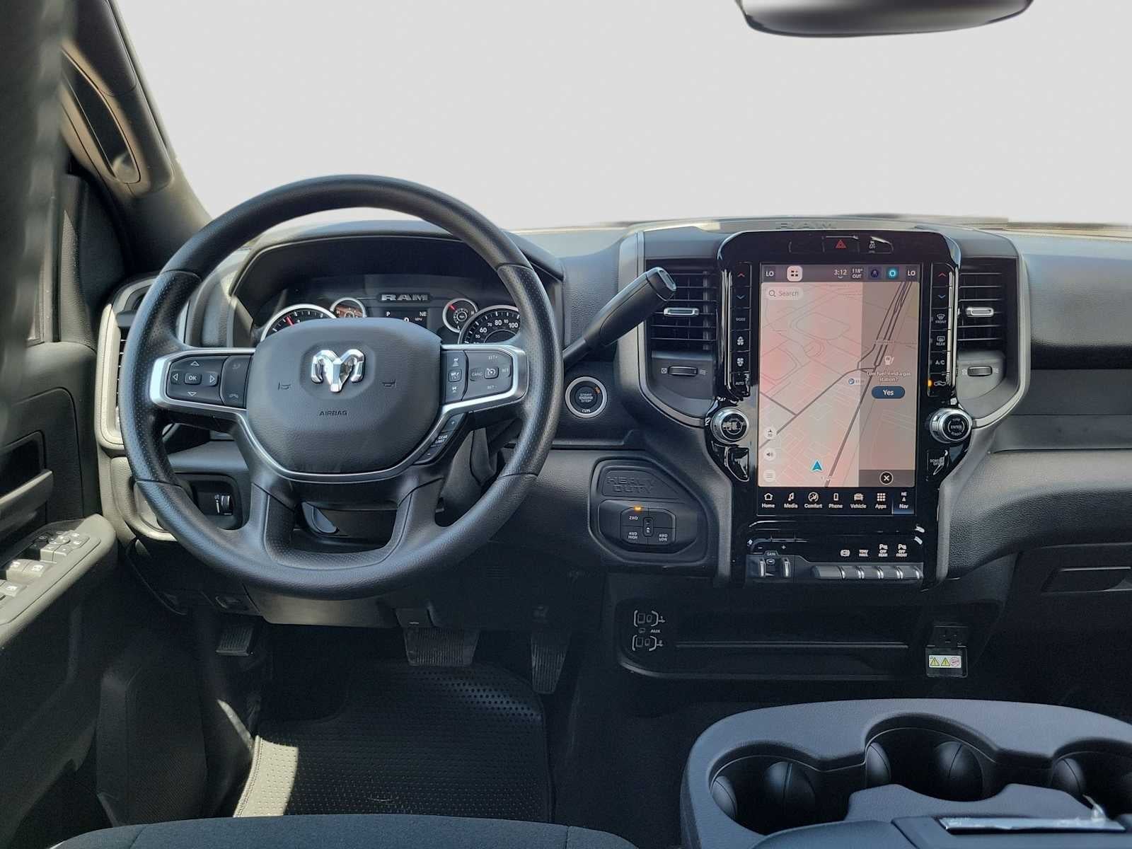 ENGINE: 6.7L I6 CUMMINS HO TURBO DIESEL Selective Catalytic Reduction (Urea), Dual 730 Amp Maintenance Free Batteries, Cummins Turbo Diesel Badge, Heavy Duty Engine Cooling, Diesel Exhaust Brake, Supplemental Heater, 3.42 Axle Ratio, Front Bumper Sight Shields, Capless Fuel Fill w/o Discriminator, GVWR: 11,040 lbs, TRADESMAN LEVEL 2 EQUIPMENT GROUP Convenience Group, Emergency Vehicle Alert System (EVAS), 12 Touchscreen Display, Anti-Spin Differential Rear Axle, Mirror Running Lights, Exterior 115V AC Outlet, Alexa Built-In, Power-Adjustable Convex Aux Mirrors, Disassociated Touchscreen Display, Matte Black Mesh Grille w/Chrome, 115V Auxiliary Front Power Outlet, Center Hub, Rear View Auto Dim Mirror, Rear Power Sliding Window, Tinted Acoustic Windshield Glass, GPS Navigation, Bright Rear Bumper, Exterior Mirrors w/Heating Element, Chrome Grille Surround, MOPAR Black Tubular Side Steps, SiriusXM w/360L, Connected Travel & Traffic Services, Carpet Floor Covering, Off-Road Info Pages, Trailer Tow Pages, 400W Inverter, HD Radio, Power Heated Folding Telescope Mirrors, Radio: Uconnect 5 Nav w/12.0, TOWING TECHNOLOGY GROUP CTR Stop Lamp w/Cargo View Camera, Forward & Reverse Utility Lights, Surround View Camera System, Blind Spot & Cross Path Detection, LED Tail Lamps, Red Tail Lamp Bezels, Power Heated Folding Telescopic Mirrors, Exterior Mirrors w/Supplemental Signals, Exterior Mirrors Courtesy Lamps, Trailer Tire Pressure Monitoring System, Auto Power-Folding Mirrors, Exterior Mirrors w/Heating Element, Mirror Running Lights, Power Adjust Mirrors, Power Telescoping Mirrors, Trailer Reverse Guidance, Power-Adjustable Convex Aux Mirrors, BED CONVENIENCE GROUP MOPAR Spray In Bedliner, LED Bed Lighting, TRANSMISSION: 8-SPEED TORQUEFLITE HD AUTOMATIC, BLACK, CLOTH 40/20/40 BENCH SEAT. Ram Tradesman with Diamond Black Crystal Pearlcoat exterior and Black interior features a Straight 6 Cylinder Engine with 430 HP at 2800 RPM*.
