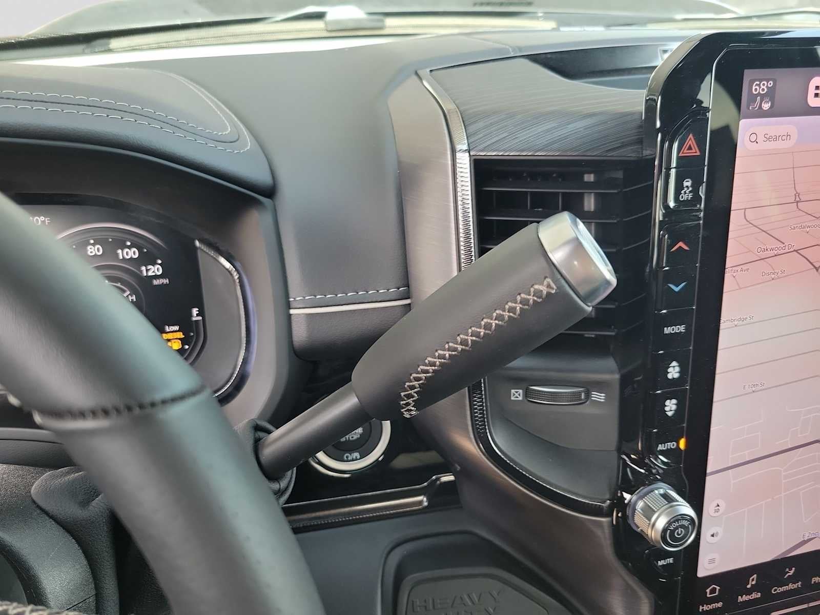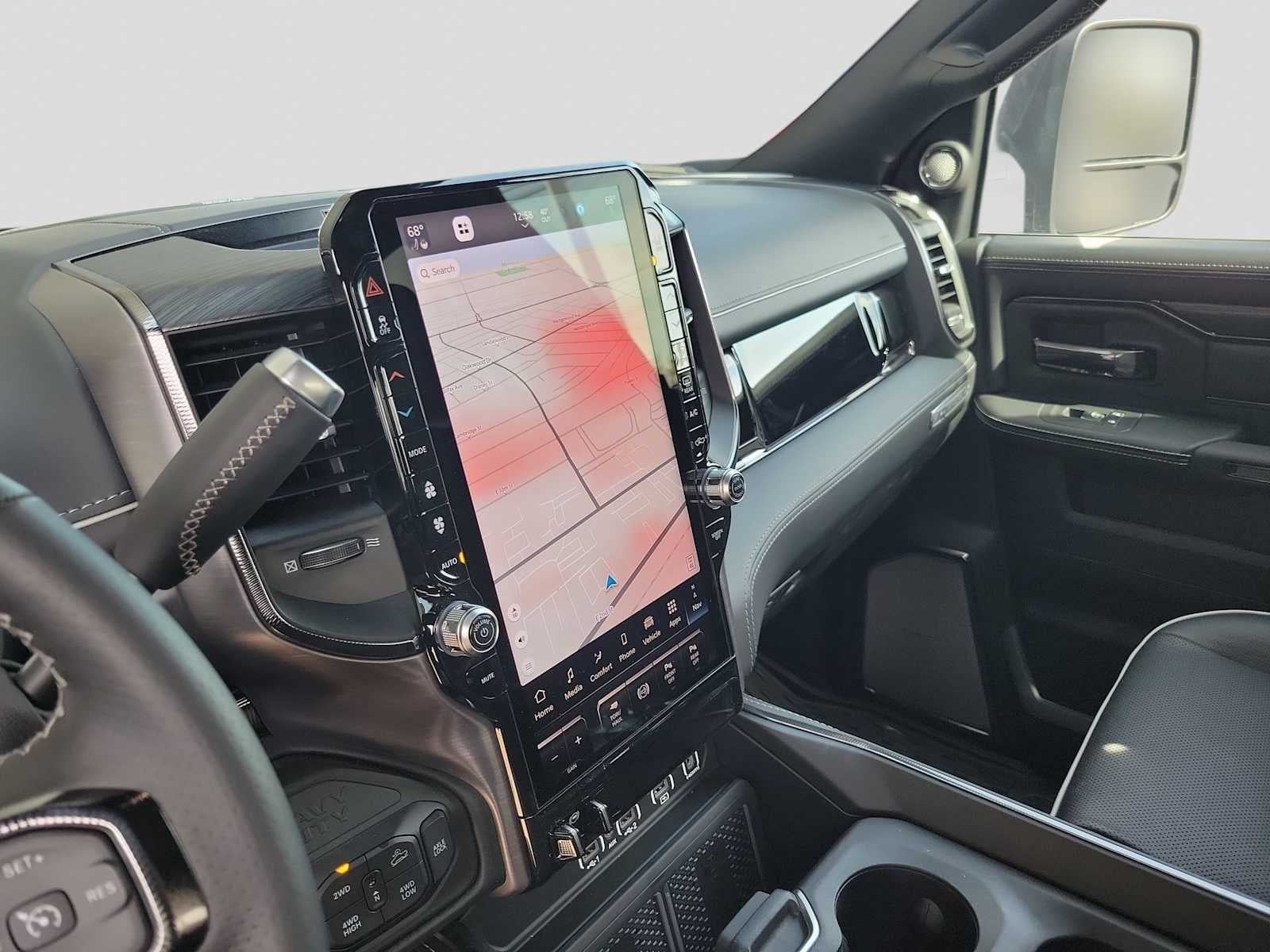 ENGINE: 6.7L I6 CUMMINS HO TURBO DIESEL Selective Catalytic Reduction (Urea), Dual 730 Amp Maintenance Free Batteries, Cummins Turbo Diesel Badge, Heavy Duty Engine Cooling, Diesel Exhaust Brake, Supplemental Heater, 3.42 Axle Ratio, Front Bumper Sight Shields, Fuel Tank Brush Guard, Capless Fuel Fill w/o Discriminator, GVWR: 11,040 lbs, REBEL LEVEL 2 EQUIPMENT GROUP Power Adjustable Pedals w/Memory, Front Passenger Interactive Display, Power Deployable Running Boards, MOPAR Deployable Bed Step, Premium Overhead Console, Leather Wrapped Shift Control, 17 Speaker harman/kardon® Premium Sound, LED Interior Lighting, LED Dome Lamp w/On/Off Switch, Universal Garage Door Opener, Sun Visors w/Illuminated Vanity Mirrors, CTR Stop Lamp w/Cargo View Camera, Rain Sensitive Windshield Wipers, LED Bed Lighting, Body Color Door Handles, Overhead LED Lamps, Auto Dim Exterior Mirror, Leather Wrapped Grab Handle, 14.4 Touchscreen Display, Power Heated Fold Telescopic Mirrors w/Memory, Sport Performance Hood, Radio: Uconnect 5 Nav w/14.4 Display, MOPAR Spray In Bedliner, Front Door Locks 2-Door Passive Entry, Auto High Beam Headlamp, SAFETY GROUP Active Lane Management System, Auto High Beam Headlamp Control, Rain Sensitive Windshield Wipers, Drowsy Driver Detection, Traffic Sign Recognition, Adaptive Steering System, TOWING TECHNOLOGY GROUP Surround View Camera System, Trailer Tire Pressure Monitoring System, Trailer Reverse Guidance, TRANSMISSION: 8-SPEED TORQUEFLITE HD AUTOMATIC. Ram Rebel with Diamond Black Crystal Pearlcoat exterior and Black interior features a Straight 6 Cylinder Engine with 430 HP at 2800 RPM*.