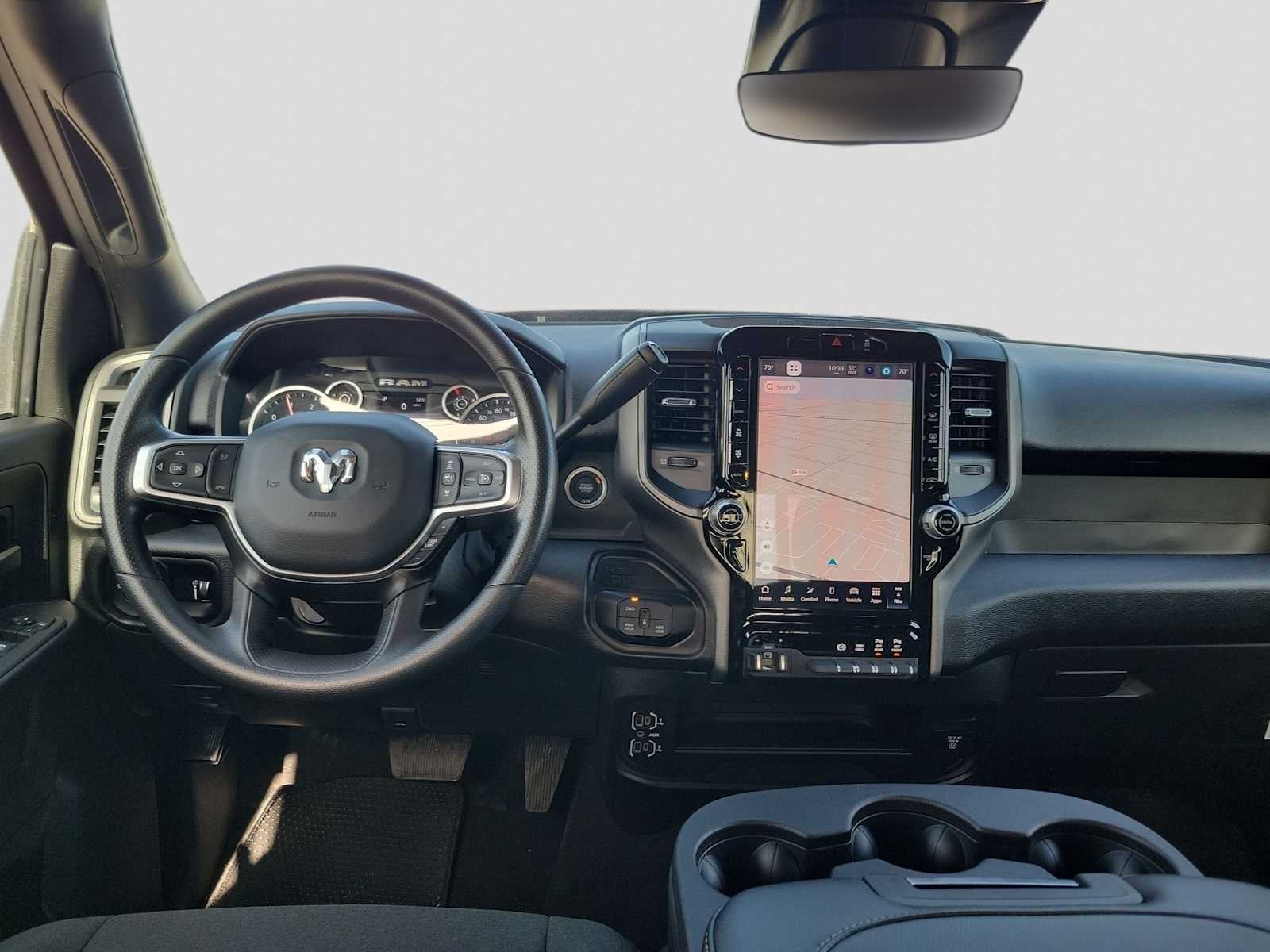 ENGINE: 6.7L I6 CUMMINS HO TURBO DIESEL Selective Catalytic Reduction (Urea), Dual 730 Amp Maintenance Free Batteries, Cummins Turbo Diesel Badge, Heavy Duty Engine Cooling, Diesel Exhaust Brake, Supplemental Heater, 3.42 Axle Ratio, Front Bumper Sight Shields, Capless Fuel Fill w/o Discriminator, GVWR: 11,040 lbs, TRADESMAN LEVEL 2 EQUIPMENT GROUP Convenience Group, Emergency Vehicle Alert System (EVAS), 12 Touchscreen Display, Anti-Spin Differential Rear Axle, Mirror Running Lights, Exterior 115V AC Outlet, Alexa Built-In, Power-Adjustable Convex Aux Mirrors, Disassociated Touchscreen Display, Matte Black Mesh Grille w/Chrome, 115V Auxiliary Front Power Outlet, Center Hub, Tires: LT275/70R18E BSW AS, Rear View Auto Dim Mirror, Rear Power Sliding Window, Tinted Acoustic Windshield Glass, GPS Navigation, Bright Rear Bumper, Exterior Mirrors w/Heating Element, Chrome Grille Surround, MOPAR Black Tubular Side Steps, SiriusXM w/360L, Connected Travel & Traffic Services, Wheels: 18 x 8.0 Steel Chrome Clad, Carpet Floor Covering, Off-Road Info Pages, Trailer Tow Pages, 400W Inverter, HD Radio, Power, TRANSMISSION: 8-SPEED TORQUEFLITE HD AUTOMATIC, BLACK, CLOTH 40/20/40 BENCH SEAT. Ram Tradesman with Granite Crystal Metallic Clearcoat exterior and Black interior features a Straight 6 Cylinder Engine with 430 HP at 2800 RPM*.