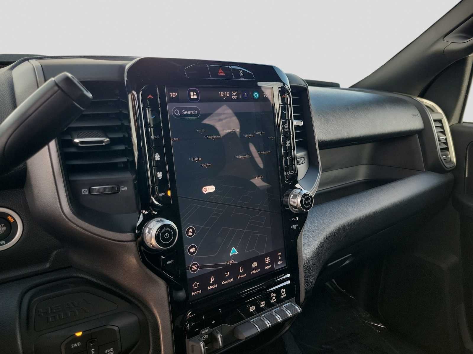 ENGINE: 6.7L I6 CUMMINS HO TURBO DIESEL Selective Catalytic Reduction (Urea), Dual 730 Amp Maintenance Free Batteries, Cummins Turbo Diesel Badge, Heavy Duty Engine Cooling, Diesel Exhaust Brake, Supplemental Heater, 3.42 Axle Ratio, Front Bumper Sight Shields, Capless Fuel Fill w/o Discriminator, GVWR: 11,040 lbs, TRADESMAN LEVEL 2 EQUIPMENT GROUP Convenience Group, Emergency Vehicle Alert System (EVAS), 12 Touchscreen Display, Anti-Spin Differential Rear Axle, Mirror Running Lights, Exterior 115V AC Outlet, Alexa Built-In, Power-Adjustable Convex Aux Mirrors, Disassociated Touchscreen Display, Matte Black Mesh Grille w/Chrome, 115V Auxiliary Front Power Outlet, Center Hub, Tires: LT275/70R18E BSW AS, Rear View Auto Dim Mirror, Rear Power Sliding Window, Tinted Acoustic Windshield Glass, GPS Navigation, Bright Rear Bumper, Exterior Mirrors w/Heating Element, Chrome Grille Surround, MOPAR Black Tubular Side Steps, SiriusXM w/360L, Connected Travel & Traffic Services, Wheels: 18 x 8.0 Steel Chrome Clad, Carpet Floor Covering, Off-Road Info Pages, Trailer Tow Pages, 400W Inverter, HD Radio, Power, TRANSMISSION: 8-SPEED TORQUEFLITE HD AUTOMATIC, BLACK, CLOTH 40/20/40 BENCH SEAT. Ram Tradesman with Molten Red Pearlcoat exterior and Black interior features a Straight 6 Cylinder Engine with 430 HP at 2800 RPM*.
