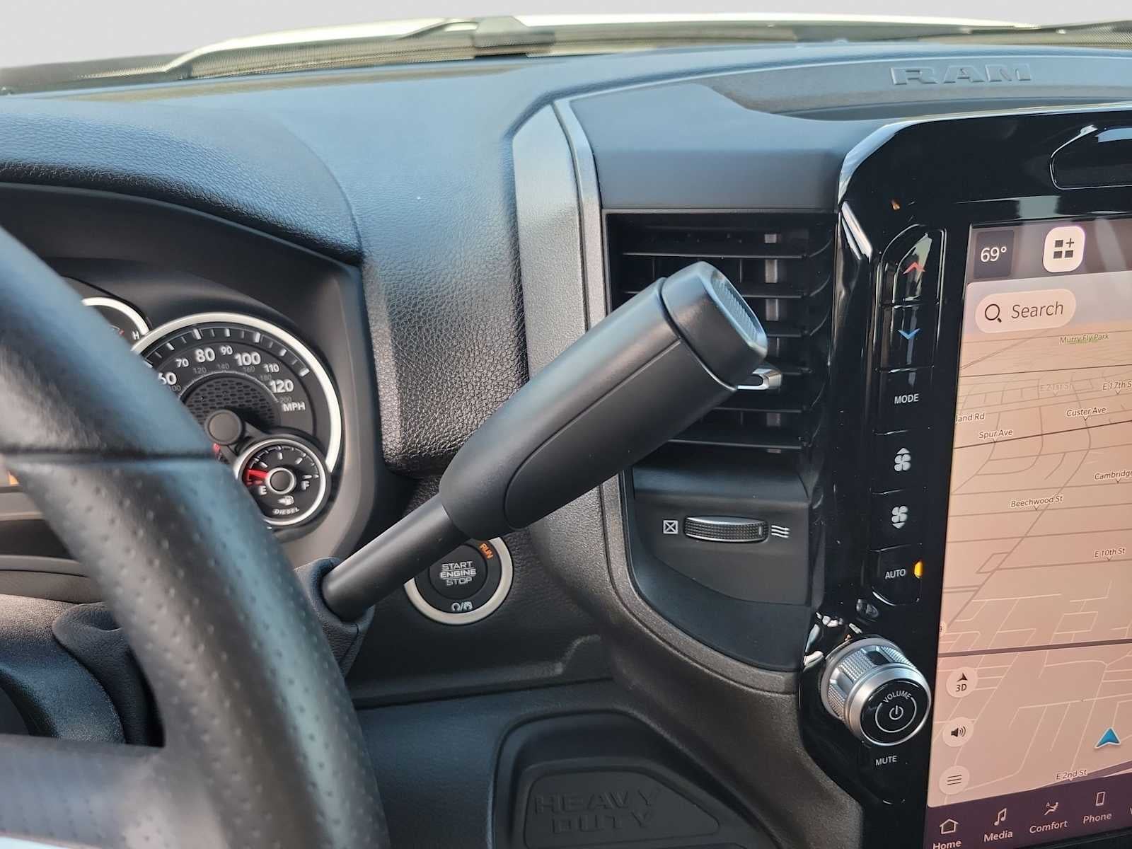 ENGINE: 6.7L I6 CUMMINS HO TURBO DIESEL Selective Catalytic Reduction (Urea), Dual 730 Amp Maintenance Free Batteries, Cummins Turbo Diesel Badge, Heavy Duty Engine Cooling, Diesel Exhaust Brake, Supplemental Heater, 3.42 Axle Ratio, Front Bumper Sight Shields, Capless Fuel Fill w/o Discriminator, GVWR: 11,040 lbs, QUICK ORDER PACKAGE 24B WARLOCK Engine: 6.7L I6 Cummins HO Turbo Diesel, Transmission: 8-Speed TorqueFlite HD Automatic, Auto Power-Folding Mirrors, Exterior Mirrors w/Heating Element, Front Performance Tuned Shock Absorbers, Anti-Spin Differential Rear Axle, Mirror Running Lights, Warlock Decal, Carpet Floor Covering, Power-Adjustable Convex Aux Mirrors, Forward & Reverse Utility Lights, Power Heated Folding Telescopic Mirrors, Exterior Mirrors w/Supplemental Signals, Exterior Mirrors Courtesy Lamps, Rear Performance Tuned Shock Absorbers, Power Adjust Mirrors, Goodyear Brand Tires, 18 Steel Spare Wheel, Black Wheel Flares, Power Telescoping Mirrors, Hill Assist, TRADESMAN LEVEL 1 EQUIPMENT GROUP Convenience Group, Rear View Auto Dim Mirror, Rear Power Sliding Window, Emergency Vehicle Alert System (EVAS), 12 Touchscreen Display, Tinted Acoustic Windshield Glass, GPS Navigation, MOPAR Black Tubular Side Steps, SiriusXM w/360L, Connected Travel & Traffic Services, Exterior 115V AC Outlet, Alexa Built-In, Off-Road Info Pages, Trailer Tow Pages, 400W Inverter, Disassociated Touchscreen Display, HD Radio, Radio: Uconnect 5 Nav w/12.0 Display, Air Conditioning ATC w/Dual Zone Control, 115V Auxiliary Front Power Outlet, Front & Rear Floor Mats, ParkSense Front/Rear Park Assist System, TRANSMISSION: 8-SPEED TORQUEFLITE HD AUTOMATIC. Ram Warlock with Bright White Clearcoat exterior and Black interior features a Straight 6 Cylinder Engine with 430 HP at 2800 RPM*.
