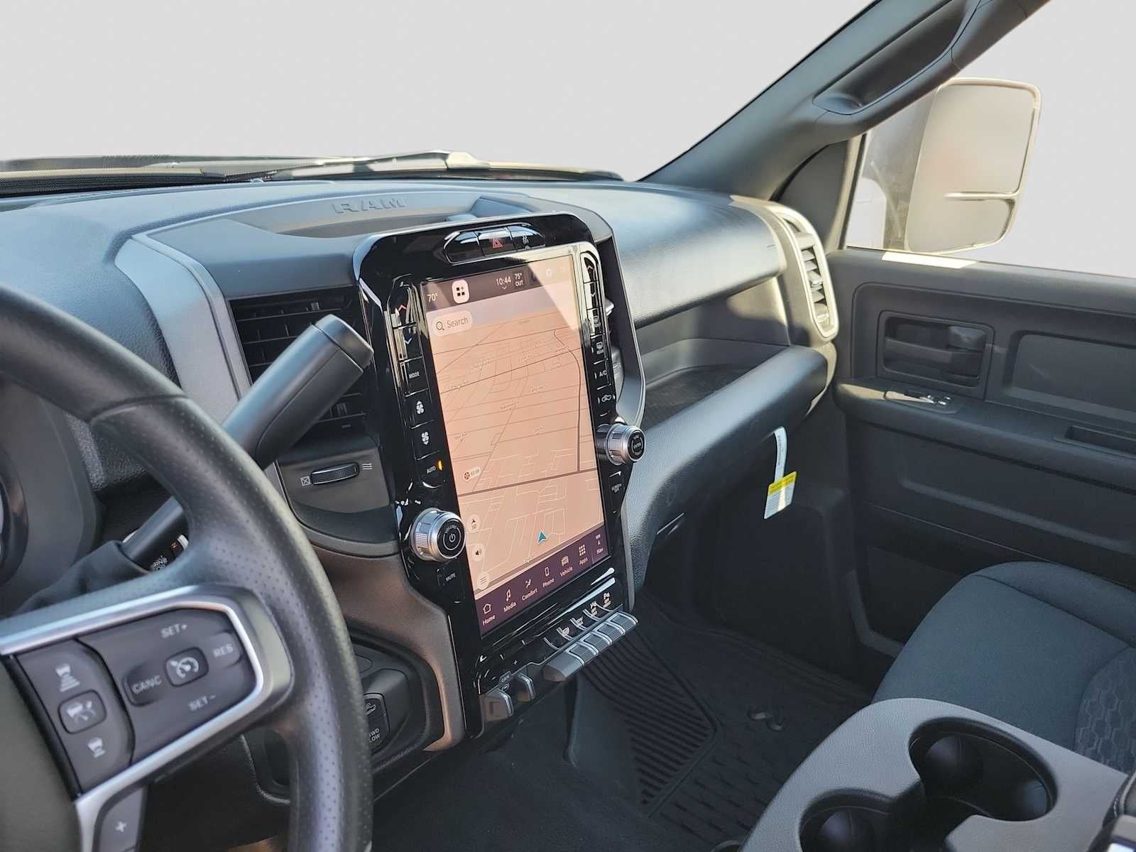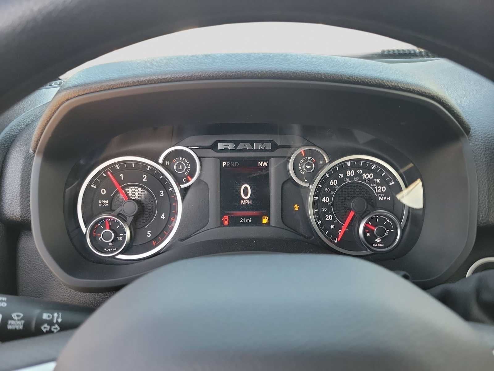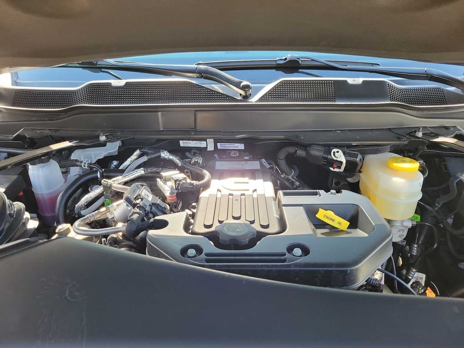 ENGINE: 6.7L I6 CUMMINS HO TURBO DIESEL Selective Catalytic Reduction (Urea), Dual 730 Amp Maintenance Free Batteries, Cummins Turbo Diesel Badge, Heavy Duty Engine Cooling, Diesel Exhaust Brake, Supplemental Heater, 3.42 Axle Ratio, Front Bumper Sight Shields, Capless Fuel Fill w/o Discriminator, GVWR: 11,040 lbs, QUICK ORDER PACKAGE 24B WARLOCK Engine: 6.7L I6 Cummins HO Turbo Diesel, Transmission: 8-Speed TorqueFlite HD Automatic, Auto Power-Folding Mirrors, Exterior Mirrors w/Heating Element, Front Performance Tuned Shock Absorbers, Anti-Spin Differential Rear Axle, Mirror Running Lights, Warlock Decal, Carpet Floor Covering, Power-Adjustable Convex Aux Mirrors, Forward & Reverse Utility Lights, Power Heated Folding Telescopic Mirrors, Exterior Mirrors w/Supplemental Signals, Exterior Mirrors Courtesy Lamps, Rear Performance Tuned Shock Absorbers, Power Adjust Mirrors, Goodyear Brand Tires, 18 Steel Spare Wheel, Black Wheel Flares, Power Telescoping Mirrors, Hill Assist, TRADESMAN LEVEL 1 EQUIPMENT GROUP Convenience Group, Rear View Auto Dim Mirror, Rear Power Sliding Window, Emergency Vehicle Alert System (EVAS), 12 Touchscreen Display, Tinted Acoustic Windshield Glass, GPS Navigation, MOPAR Black Tubular Side Steps, SiriusXM w/360L, Connected Travel & Traffic Services, Exterior 115V AC Outlet, Alexa Built-In, Off-Road Info Pages, Trailer Tow Pages, 400W Inverter, Disassociated Touchscreen Display, HD Radio, Radio: Uconnect 5 Nav w/12.0 Display, Air Conditioning ATC w/Dual Zone Control, 115V Auxiliary Front Power Outlet, Front & Rear Floor Mats, ParkSense Front/Rear Park Assist System, TRANSMISSION: 8-SPEED TORQUEFLITE HD AUTOMATIC. Ram Warlock with Diamond Black Crystal Pearlcoat exterior and Black interior features a Straight 6 Cylinder Engine with 430 HP at 2800 RPM*.