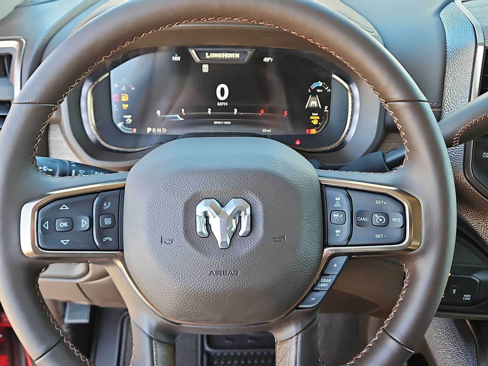 LONGHORN LEVEL 1 EQUIPMENT GROUP Active Lane Management System, Center Stop Lamp w/Cargo View Camera, MOPAR Trailer Camera Wiring w/No Camera, Surround View Camera System, Power Deployable Running Boards, Traffic Sign Recognition, Trailer Tire Pressure Monitoring System, Adaptive Steering System, MOPAR Spray In Bedliner, Drowsy Driver Detection, Trailer Reverse Guidance, Digital Rearview Mirror, DUAL REAR WHEELS Clearance Lamps, 17 Steel Spare Wheel, Box & Rear Fender Clearance Lamps, 6,000 lbs Front Axle w/Hub Ext, Pickup Box, Wheels: 17 x 6.0 Polished Aluminum, Nexen Brand Tires, GVWR: 14,000 lbs, Tires: LT235/80R17E BSW All Season, Center Hub, Dual Rear Wheel Fender Flare Tracking, POWER SUNROOF, QUICK ORDER PACKAGE 24K LONGHORN Engine: 6.7L I6 Cummins HO Turbo Diesel, Transmission: 8-Speed TorqueFlite HD Automatic, Luxury Front & Rear Floor Mats, I/P Aluminum Litho Bezels w/Real Wood #1, Longhorn Instrument Cluster Theme 3, Premium Door Trim Panel, Longhorn Badge, TRANSMISSION: 8-SPEED TORQUEFLITE HD AUTOMATIC (STD), ENGINE: 6.7L I6 CUMMINS HO TURBO DIESEL (STD). Ram Longhorn with Molten Red Pearlcoat exterior and Bison Brown interior features a Straight 6 Cylinder Engine with 430 HP at 2800 RPM*.