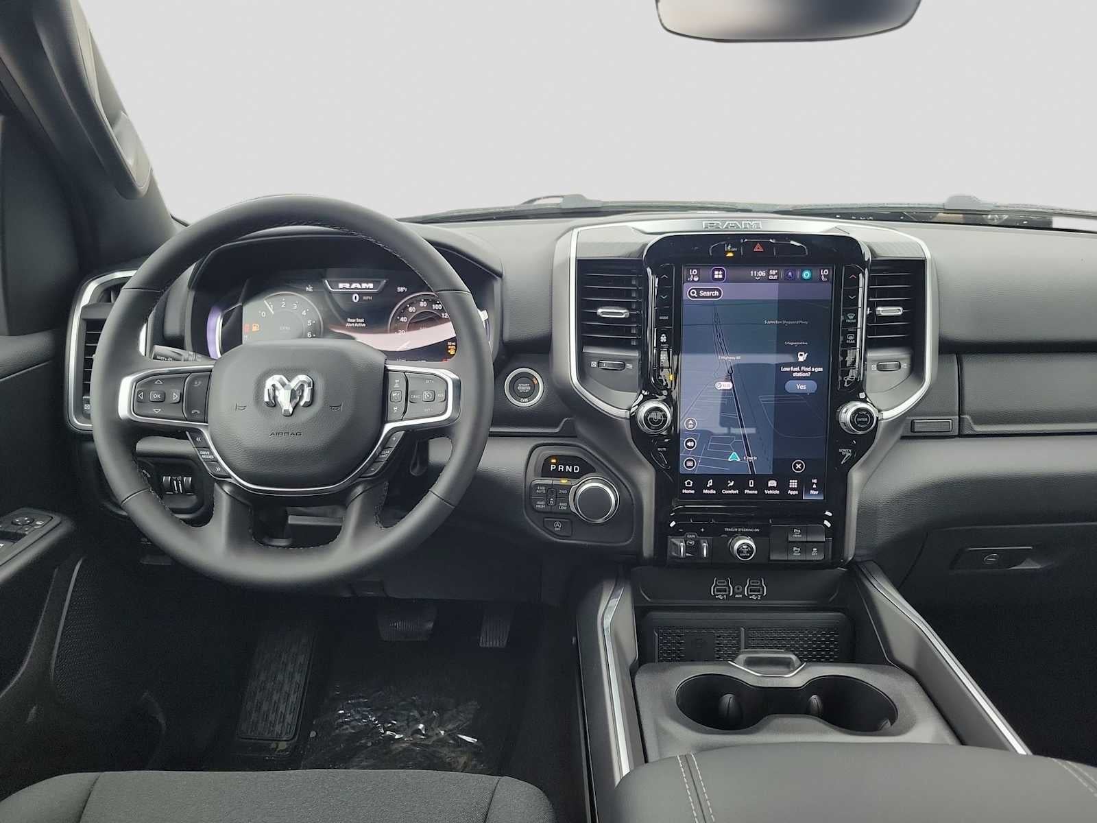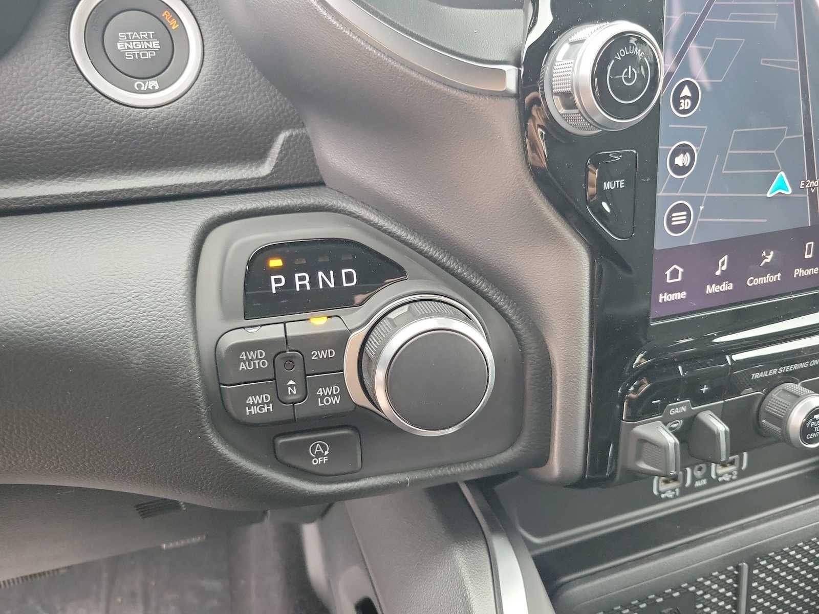 BIG HORN LEVEL 2 EQUIPMENT GROUP SiriusXM Radio Service, Power Adjustable Pedals, Leather Wrapped Steering Wheel, 12 Touchscreen Display, Glove Box Lamp, Auto Power-Folding Mirrors, 115V Auxiliary Rear Power Outlet, Media Hub w/2 Charge Only USBs, Heated Front Seats, Security Alarm, Black Premium Power Mirrors, Premium Overhead Console, 9 Amplified Speakers w/Subwoofer, Disassociated Touchscreen Display, Body Color Fender Flares, Remote Tailgate Release, 115V Auxiliary Power Outlet, LED Dome Lamp w/On/Off Switch, Universal Garage Door Opener, 2nd Row In Floor Storage Bins, Sun Visors w/Illuminated Vanity Mirrors, LED Footwell Lighting, Rear Window Defroster, Rear View Auto Dim Mirror, Rear Power Sliding Window, GPS Navigation, Overhead LED Lamps, Wheels: 20 x 9 Aluminum Chrome Clad, ENGINE: 5.7L V8 HEMI MDS VVT ETORQUE Active Noise Control System, Heavy Duty Engine Cooling, Passive Tuned Mass Damper, GVWR: 7,100 lbs, Dual Rear Exhaust w/Bright Tips, G/T Exhaust, 18 Aluminum Spare Wheel, WHEEL TO WHEEL SIDE STEPS, ANTI-SPIN DIFFERENTIAL REAR AXLE, SURROUND VIEW CAMERA SYSTEM 12-Way/1-Way Trailer Connector, MOPAR FRONT & REAR RUBBER FLOOR MATS, TRANSMISSION: 8-SPEED AUTOMATIC (8HP75). Ram Big Horn with Diamond Black Crystal Pearlcoat exterior and Black interior features a 8 Cylinder Engine with 395 HP at 5600 RPM*.