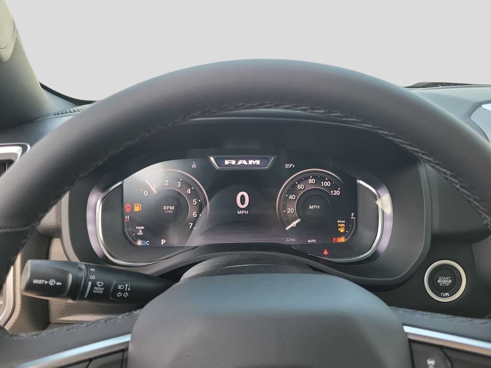 BIG HORN LEVEL 2 EQUIPMENT GROUP SiriusXM Radio Service, Power Adjustable Pedals, Leather Wrapped Steering Wheel, 12 Touchscreen Display, Glove Box Lamp, Auto Power-Folding Mirrors, 115V Auxiliary Rear Power Outlet, Media Hub w/2 Charge Only USBs, Heated Front Seats, Security Alarm, Black Premium Power Mirrors, Premium Overhead Console, 9 Amplified Speakers w/Subwoofer, Disassociated Touchscreen Display, Body Color Fender Flares, Remote Tailgate Release, 115V Auxiliary Power Outlet, LED Dome Lamp w/On/Off Switch, Universal Garage Door Opener, 2nd Row In Floor Storage Bins, Sun Visors w/Illuminated Vanity Mirrors, LED Footwell Lighting, Rear Window Defroster, Rear View Auto Dim Mirror, Rear Power Sliding Window, GPS Navigation, Overhead LED Lamps, Wheels: 20 x 9 Aluminum Chrome Clad, ENGINE: 5.7L V8 HEMI MDS VVT ETORQUE Active Noise Control System, Heavy Duty Engine Cooling, Passive Tuned Mass Damper, GVWR: 7,100 lbs, Dual Rear Exhaust w/Bright Tips, G/T Exhaust, 18 Aluminum Spare Wheel, WHEEL TO WHEEL SIDE STEPS, ANTI-SPIN DIFFERENTIAL REAR AXLE, MOPAR FRONT & REAR RUBBER FLOOR MATS, TRANSMISSION: 8-SPEED AUTOMATIC (8HP75). Ram Big Horn with Bright White Clearcoat exterior and Black interior features a 8 Cylinder Engine with 395 HP at 5600 RPM*.