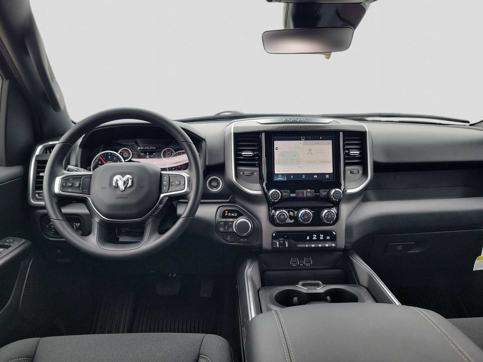 ENGINE: 5.7L V8 HEMI MDS VVT ETORQUE Active Noise Control System, Heavy Duty Engine Cooling, Passive Tuned Mass Damper, GVWR: 7,100 lbs, Dual Rear Exhaust w/Bright Tips, G/T Exhaust, 18 Aluminum Spare Wheel, NIGHT EDITION Tires: 275/55R20 OWL All Season, Bridgestone Brand Tires, Accent Color Premium Power Mirrors, Exterior Mirrors w/Supplemental Signals, Black Headlamp Bezels, Exterior Mirrors Courtesy Lamps, Grille Black Surround Black Mesh, Auto Power-Folding Mirrors, Wheels: 20 x 9.0 Aluminum Painted Clad, Auto Dim Exterior Driver Mirror, Black Exterior Truck Badging, Anti-Spin Differential Rear Axle, Accent Color Door Handles, Accent Color Tailgate Handle, Black Interior Accents, Dual Exhaust w/Black Tips, Body Color Front Bumper, Body Color Rear Bumper w/Step Pads, Black Tail Lamp Bezels, RAM Grille Badge - Black, Black Painted Exterior Mirrors Caps, TRI-FOLD TONNEAU COVER, MOPAR BLACK TUBULAR SIDE STEPS, MOPAR FRONT & REAR RUBBER FLOOR MATS, TRANSMISSION: 8-SPEED AUTOMATIC (8HP75). Ram Big Horn with Bright White Clearcoat exterior and Black interior features a 8 Cylinder Engine with 395 HP at 5600 RPM*.