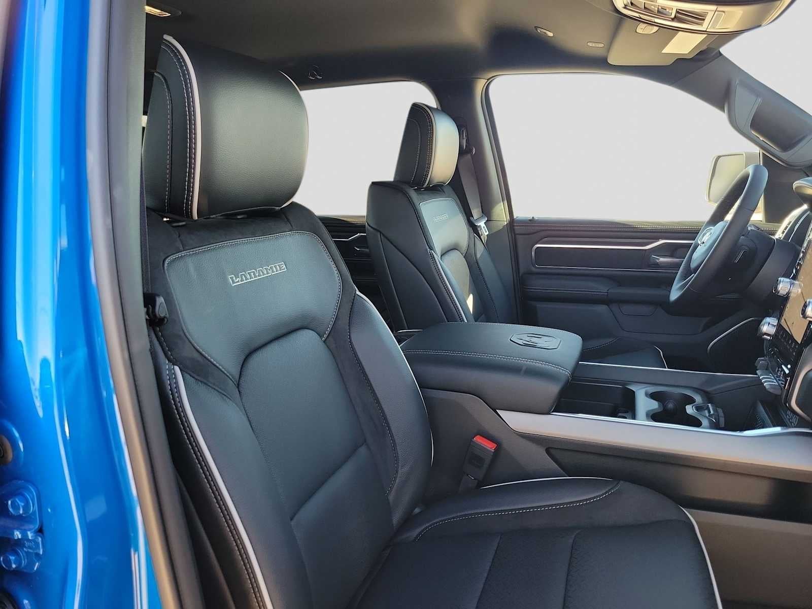 NIGHT EDITION Black Headlamp Bezels, Wheels: 22 x 9 Forged Aluminum, Tires: 285/45R22XL BSW All Season, Pirelli Brand Tires, Proximity Approach/Departure Lamps, Anti-Spin Differential Rear Axle, Accent Color Door Handles, Black Interior Accents, Body Color Front Bumper, Grille Surround 3 Black Texture 2 Black, Body Color Rear Bumper w/Step Pads, RAM Grille Badge - Black, Black Painted Exterior Mirrors Caps, Exterior Mirrors Approach Lamps, Accent Color Premium Power Mirrors, Sport Performance Hood, Black Exterior Truck Badging, Accent Color Tailgate Handle, Dual Exhaust w/Black Tips, Black Tail Lamp Bezels, LARAMIE LEVEL 1 EQUIPMENT GROUP Remote Tailgate Release, Secondary Active Grille Shutters, Rain Sensitive Windshield Wipers, Wireless Charging Pad, MOPAR FRONT & REAR RUBBER FLOOR MATS, TRANSMISSION: 8-SPEED AUTOMATIC (8HP75) (STD), ENGINE: 3.0L I6 HURRICANE SO TWIN TURBO ESS (STD). Ram Laramie with Hydro Blue Pearlcoat exterior and Black interior features a Straight 6 Cylinder Engine with 420 HP at 5200 RPM*.
