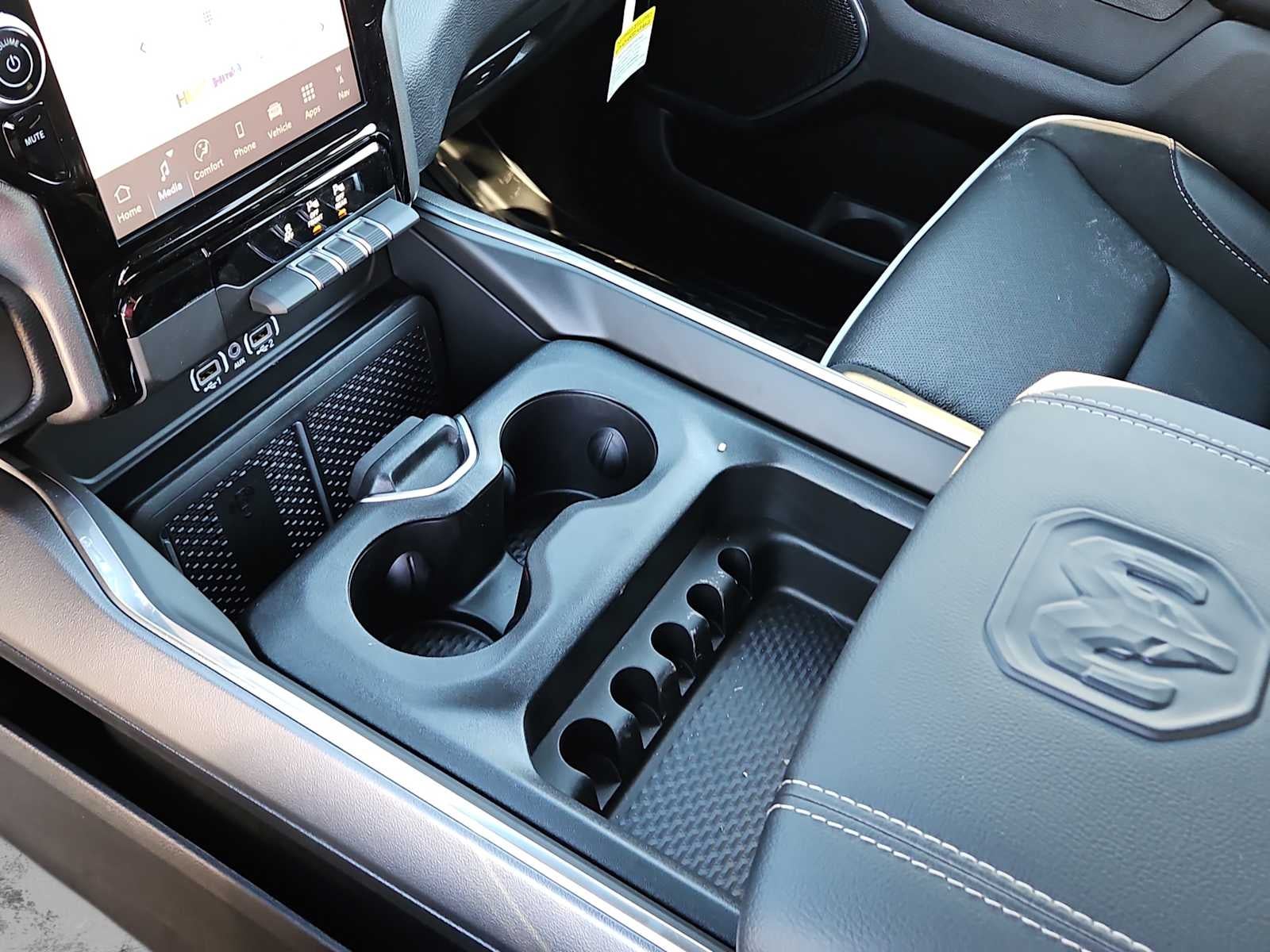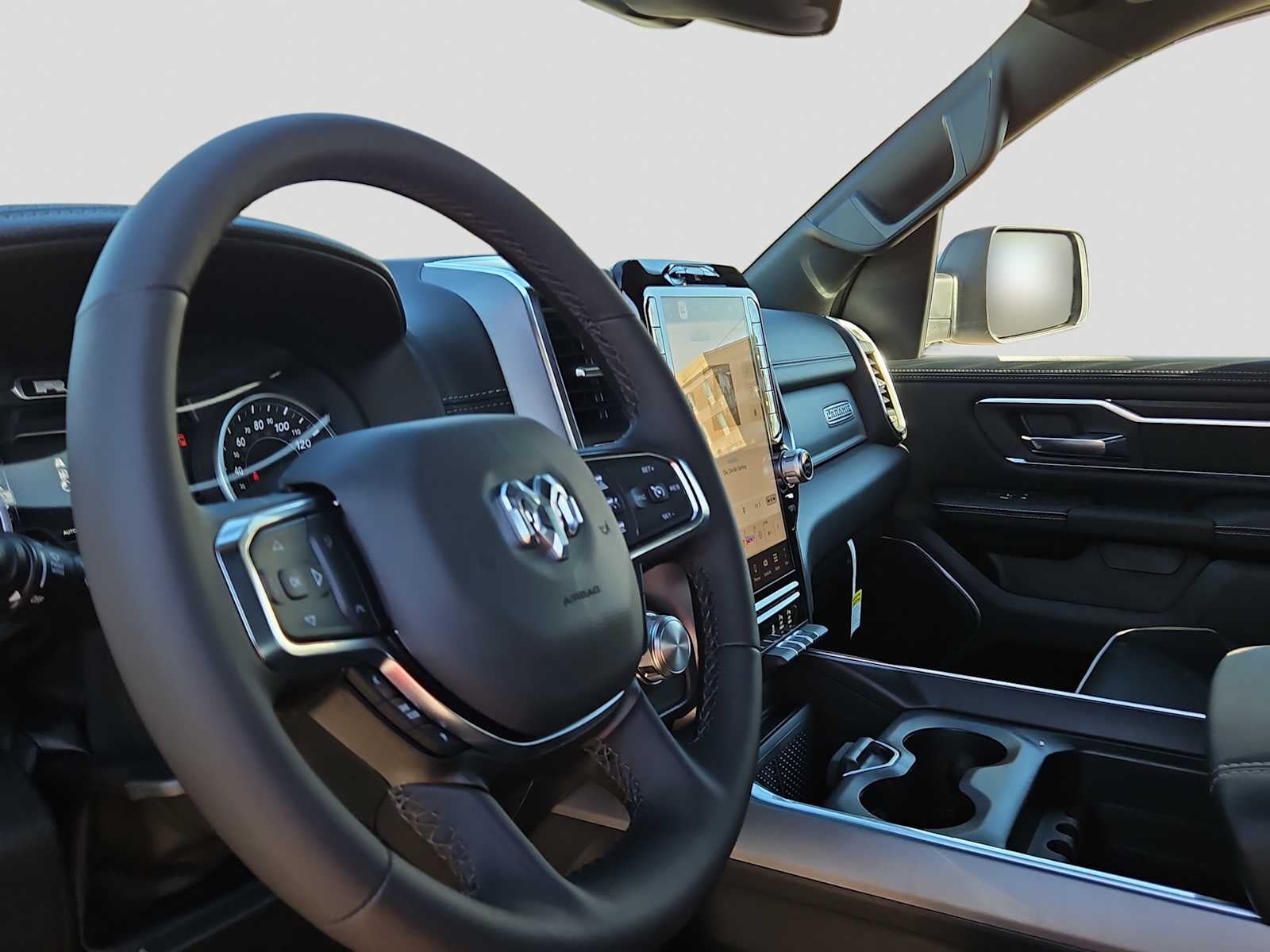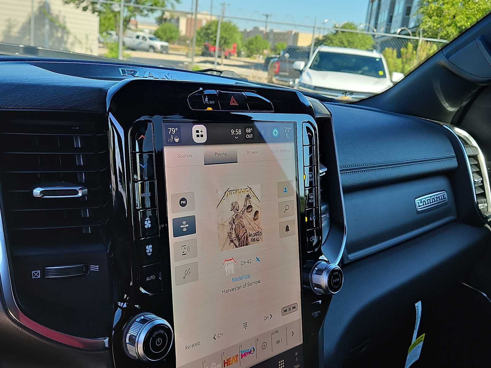 NIGHT EDITION Black Headlamp Bezels, Wheels: 22 x 9 Forged Aluminum, Tires: 285/45R22XL BSW All Season, Pirelli Brand Tires, Proximity Approach/Departure Lamps, Anti-Spin Differential Rear Axle, Accent Color Door Handles, Black Interior Accents, Body Color Front Bumper, Grille Surround 3 Black Texture 2 Black, Body Color Rear Bumper w/Step Pads, RAM Grille Badge - Black, Black Painted Exterior Mirrors Caps, Exterior Mirrors Approach Lamps, Accent Color Premium Power Mirrors, Sport Performance Hood, Black Exterior Truck Badging, Accent Color Tailgate Handle, Dual Exhaust w/Black Tips, Black Tail Lamp Bezels, ENGINE: 5.7L V8 HEMI MDS VVT ETORQUE 48V Belt Starter Generator, Heavy Duty Engine Cooling, Passive Tuned Mass Damper, Delete Alternator, Passive Cold End Exhaust, 18 Aluminum Spare Wheel, BED UTILITY GROUP MOPAR Spray In Bedliner, MOPAR 4 Adjustable Cargo Tie-Down Hooks, Exterior 115V AC Outlet, MOPAR BLACK TUBULAR SIDE STEPS, LARAMIE LEVEL 1 EQUIPMENT GROUP Remote Tailgate Release, Rain Sensitive Windshield Wipers, MOPAR FRONT & REAR RUBBER FLOOR MATS, TRANSMISSION: 8-SPEED AUTOMATIC (8HP75) (STD). Ram Laramie with Silver Zynith exterior and Black interior features a 8 Cylinder Engine with 395 HP at 5600 RPM*.