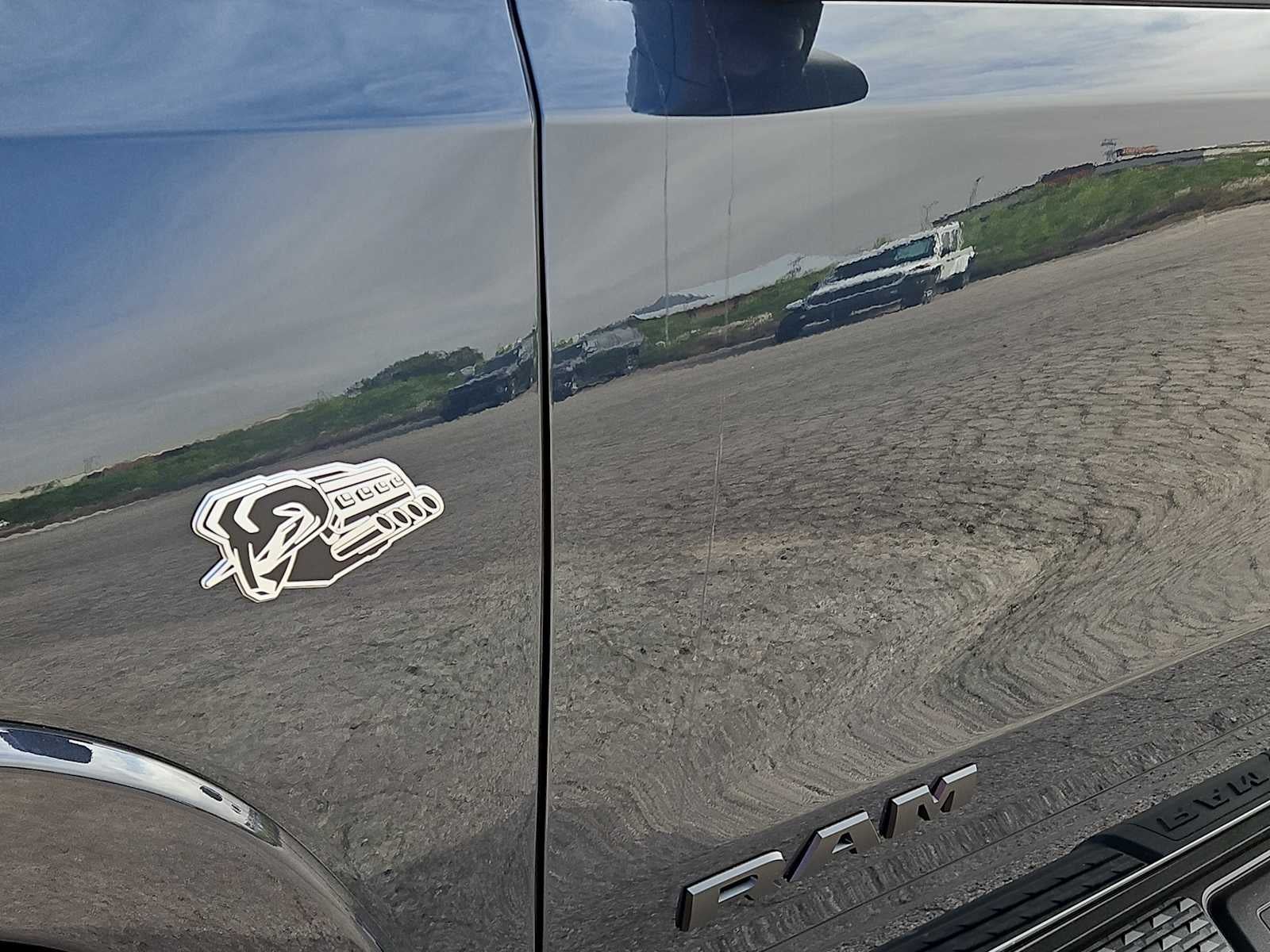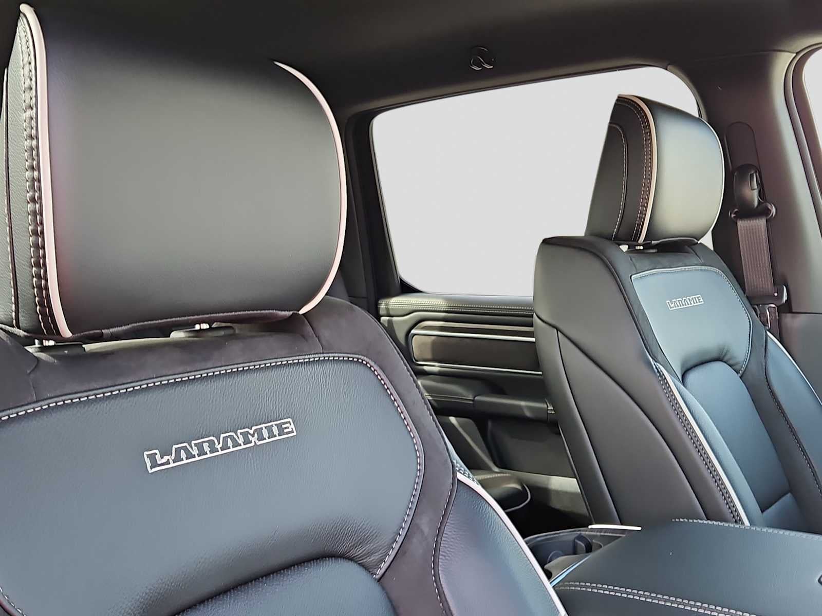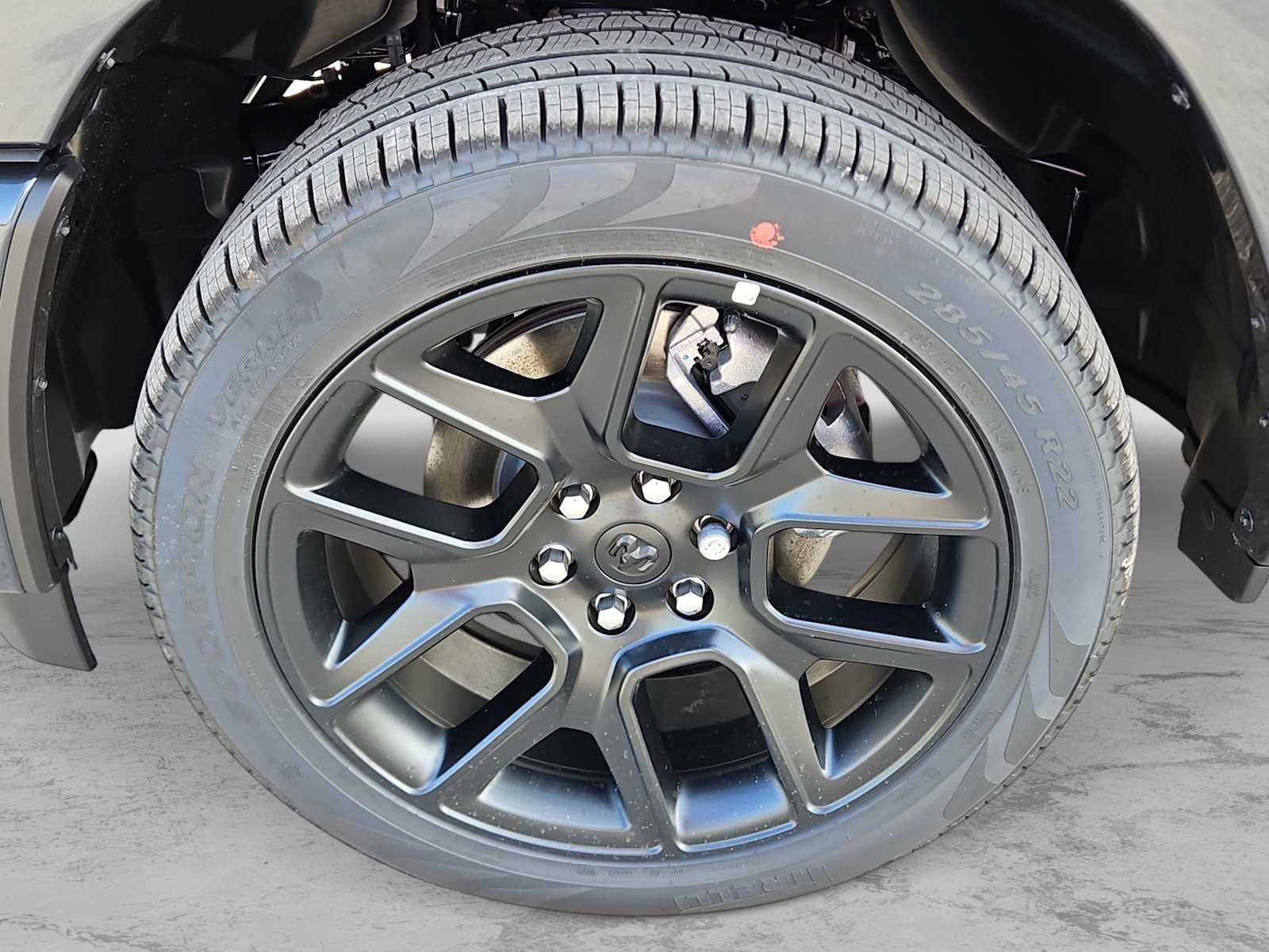 NIGHT EDITION Black Headlamp Bezels, Wheels: 22 x 9 Forged Aluminum, Tires: 285/45R22XL BSW All Season, Pirelli Brand Tires, Proximity Approach/Departure Lamps, Anti-Spin Differential Rear Axle, Accent Color Door Handles, Black Interior Accents, Body Color Front Bumper, Grille Surround 3 Black Texture 2 Black, Body Color Rear Bumper w/Step Pads, RAM Grille Badge - Black, Black Painted Exterior Mirrors Caps, Exterior Mirrors Approach Lamps, Accent Color Premium Power Mirrors, Sport Performance Hood, Black Exterior Truck Badging, Accent Color Tailgate Handle, Dual Exhaust w/Black Tips, Black Tail Lamp Bezels, ENGINE: 5.7L V8 HEMI MDS VVT ETORQUE 48V Belt Starter Generator, Heavy Duty Engine Cooling, Passive Tuned Mass Damper, Delete Alternator, Passive Cold End Exhaust, 18 Aluminum Spare Wheel, BED UTILITY GROUP MOPAR Spray In Bedliner, MOPAR 4 Adjustable Cargo Tie-Down Hooks, Exterior 115V AC Outlet, MOPAR BLACK TUBULAR SIDE STEPS, LARAMIE LEVEL 1 EQUIPMENT GROUP Remote Tailgate Release, Rain Sensitive Windshield Wipers, MOPAR FRONT & REAR RUBBER FLOOR MATS, TRANSMISSION: 8-SPEED AUTOMATIC (8HP75) (STD). Ram Laramie with Forged Blue Metallic exterior and Black interior features a 8 Cylinder Engine with 395 HP at 5600 RPM*.