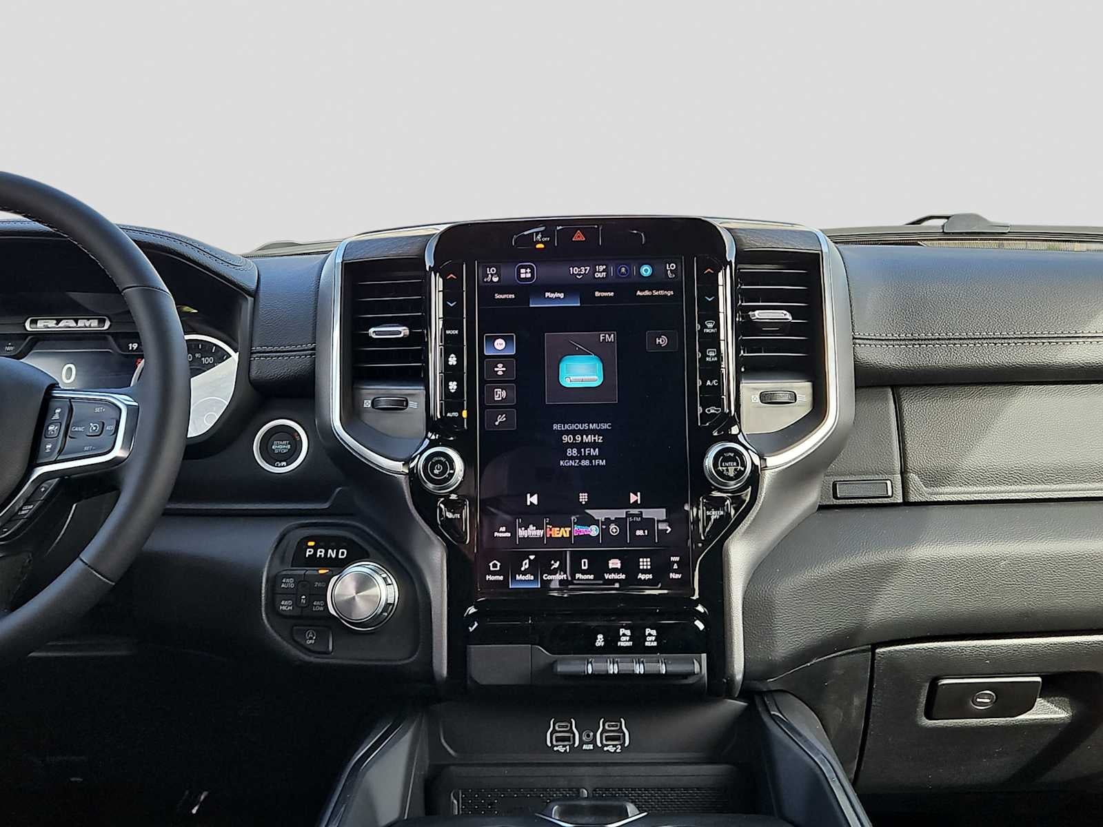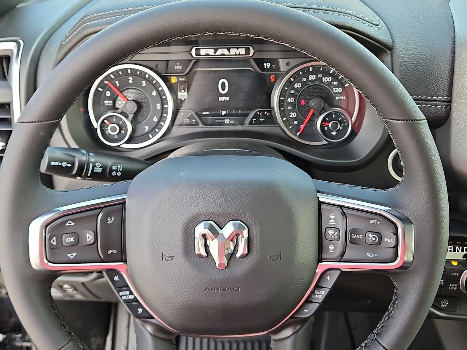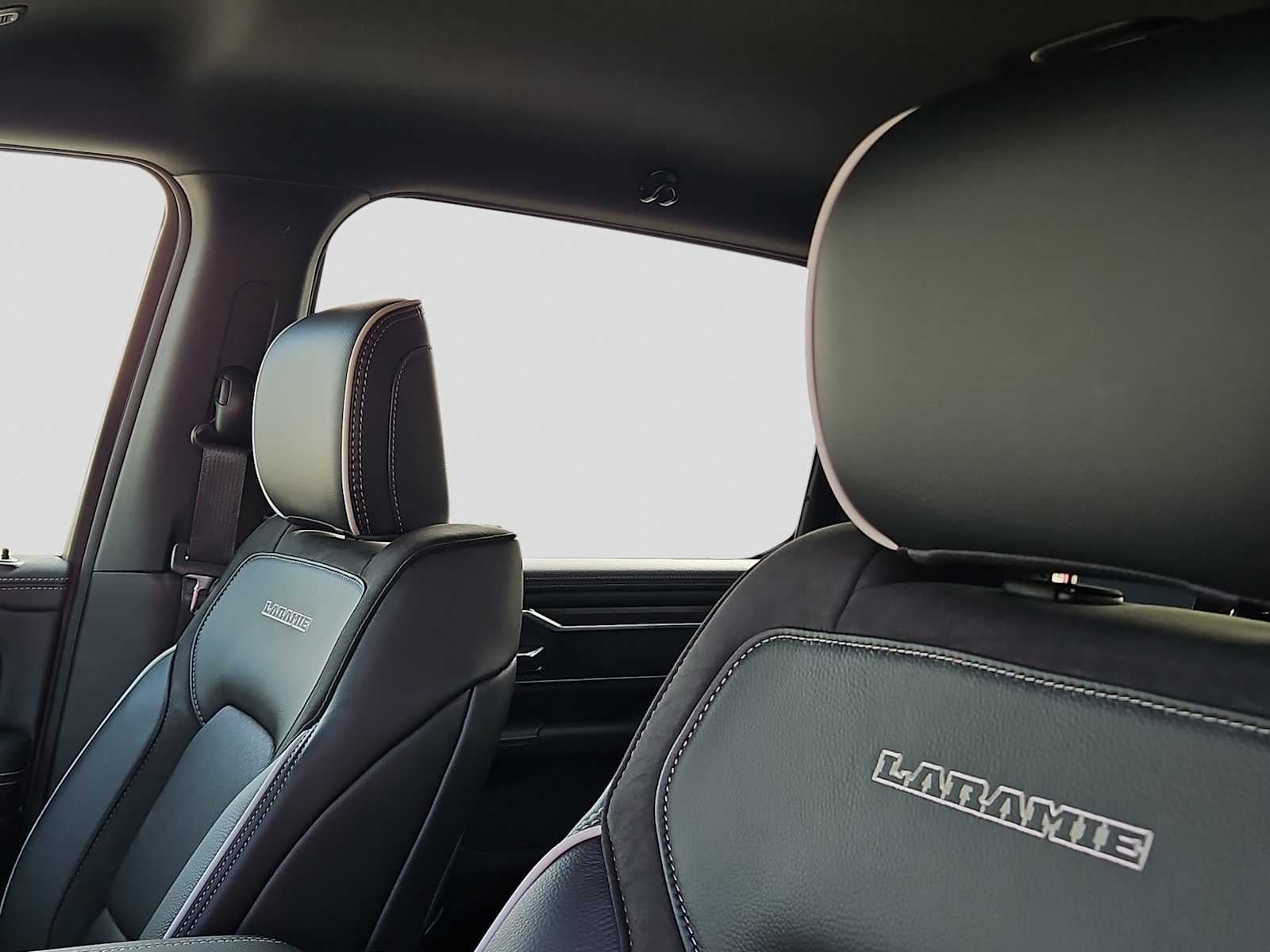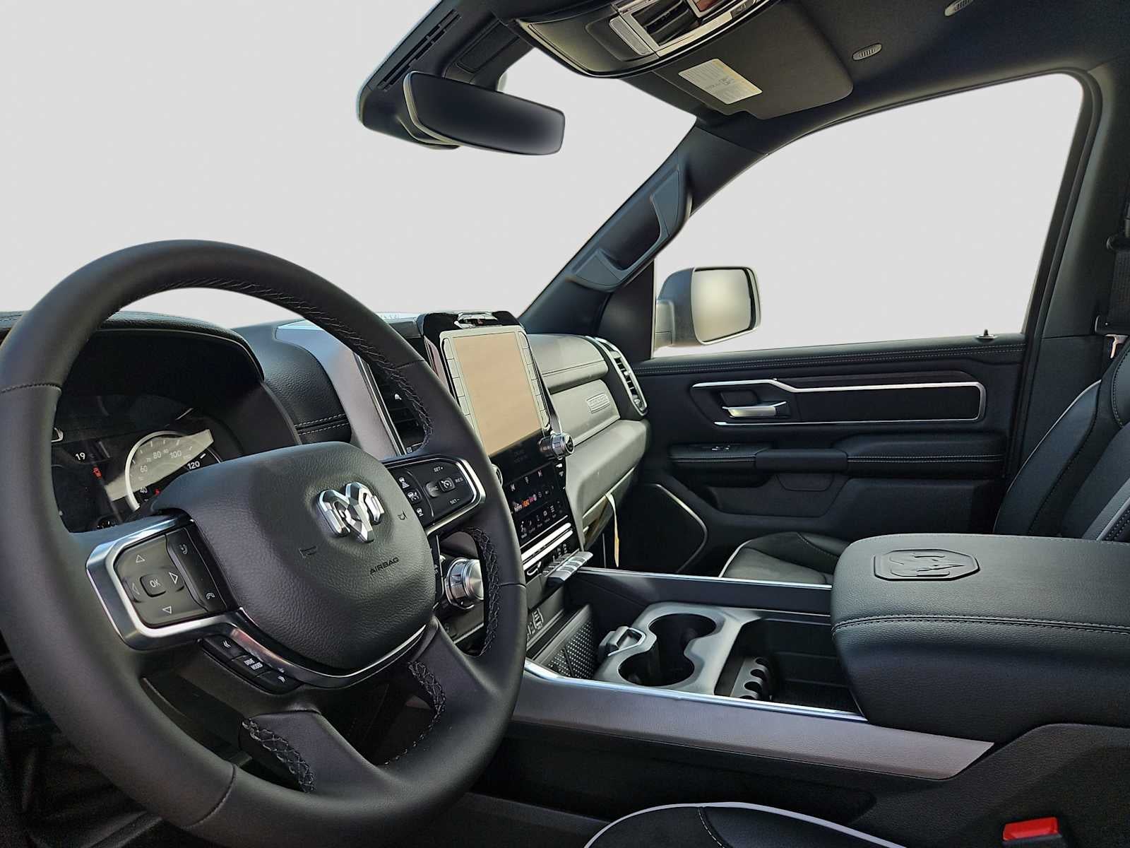 NIGHT EDITION Black Headlamp Bezels, Wheels: 22 x 9 Forged Aluminum, Tires: 285/45R22XL BSW All Season, Pirelli Brand Tires, Proximity Approach/Departure Lamps, Anti-Spin Differential Rear Axle, Accent Color Door Handles, Black Interior Accents, Body Color Front Bumper, Grille Surround 3 Black Texture 2 Black, Body Color Rear Bumper w/Step Pads, RAM Grille Badge - Black, Black Painted Exterior Mirrors Caps, Exterior Mirrors Approach Lamps, Accent Color Premium Power Mirrors, Sport Performance Hood, Black Exterior Truck Badging, Accent Color Tailgate Handle, Dual Exhaust w/Black Tips, Black Tail Lamp Bezels, ENGINE: 5.7L V8 HEMI MDS VVT ETORQUE 48V Belt Starter Generator, Heavy Duty Engine Cooling, Passive Tuned Mass Damper, Delete Alternator, Passive Cold End Exhaust, 18 Aluminum Spare Wheel, BED UTILITY GROUP MOPAR Spray In Bedliner, MOPAR 4 Adjustable Cargo Tie-Down Hooks, Exterior 115V AC Outlet, MOPAR BLACK TUBULAR SIDE STEPS, LARAMIE LEVEL 1 EQUIPMENT GROUP Remote Tailgate Release, Rain Sensitive Windshield Wipers, MOPAR FRONT & REAR RUBBER FLOOR MATS, TRANSMISSION: 8-SPEED AUTOMATIC (8HP75) (STD). Ram Laramie with Forged Blue Metallic exterior and Black interior features a 8 Cylinder Engine with 395 HP at 5600 RPM*.