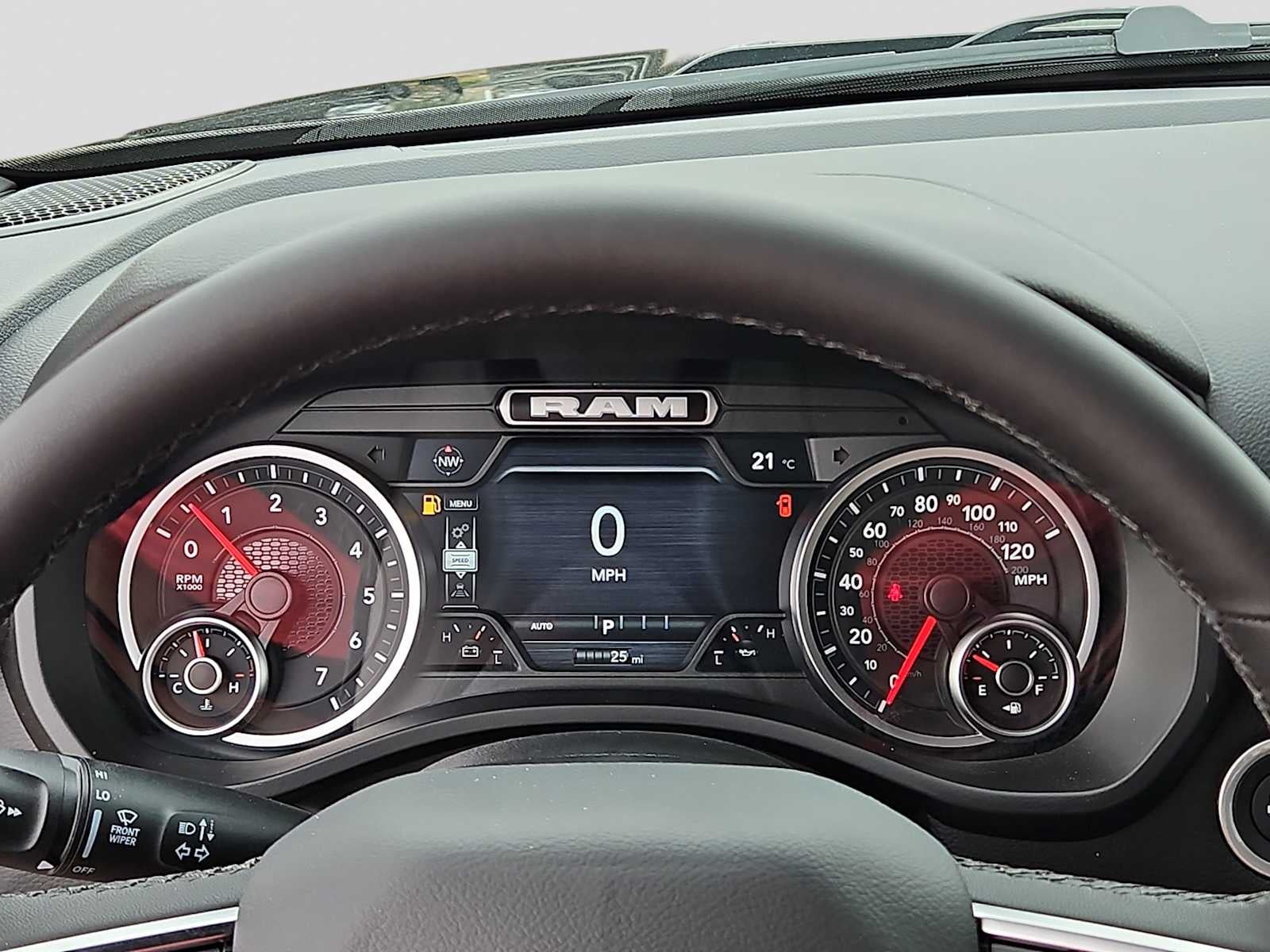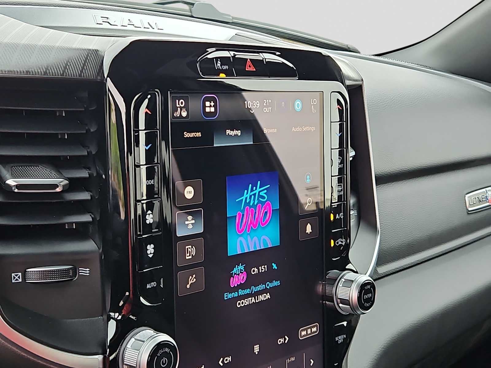 BIG HORN LEVEL 2 EQUIPMENT GROUP SiriusXM Radio Service, Power Adjustable Pedals, Leather Wrapped Steering Wheel, 12 Touchscreen Display, Glove Box Lamp, Auto Power-Folding Mirrors, 115V Auxiliary Rear Power Outlet, Media Hub w/2 Charge Only USBs, Heated Front Seats, Security Alarm, Black Premium Power Mirrors, Premium Overhead Console, 9 Amplified Speakers w/Subwoofer, Disassociated Touchscreen Display, Body Color Fender Flares, Remote Tailgate Release, 115V Auxiliary Power Outlet, LED Dome Lamp w/On/Off Switch, Universal Garage Door Opener, 2nd Row In Floor Storage Bins, Sun Visors w/Illuminated Vanity Mirrors, LED Footwell Lighting, Rear Window Defroster, Rear View Auto Dim Mirror, Rear Power Sliding Window, GPS Navigation, Overhead LED Lamps, Wheels: 20 x 9 Aluminum Chrome Clad, ENGINE: 3.0L I6 HURRICANE SO TWIN TURBO ESS Aux Battery, 700 Amp Maintenance Free Battery, Active Noise Control System, Dual Rear Exhaust w/Bright Tips, Start-Stop Dual Battery System, 230 Amp Alternator, NIGHT EDITION Tires: 275/55R20 OWL All Season, Bridgestone Brand Tires, Accent Color Premium Power Mirrors, Exterior Mirrors w/Supplemental Signals, Black Headlamp Bezels, Exterior Mirrors Courtesy Lamps, Grille Black Surround Black Mesh, Auto Power-Folding Mirrors, Wheels: 20 x 9.0 Aluminum Painted Clad, Auto Dim Exterior Driver Mirror, Black Exterior Truck Badging, Anti-Spin Differential Rear Axle, Accent Color Door Handles, Accent Color Tailgate Handle, Black Interior Accents, Dual Exhaust w/Black Tips, Body Color Front Bumper, Body Color Rear Bumper w/Step Pads, Black Tail Lamp Bezels, RAM Grille Badge - Black, Black Painted Exterior Mirrors Caps, Rear Wheelhouse Liners, MOPAR FRONT & REAR RUBBER FLOOR MATS, TRANSMISSION: 8-SPEED AUTOMATIC (8HP75). Ram Lone Star with Diamond Black Crystal Pearlcoat exterior and Black interior features a Straight 6 Cylinder Engine with 305 HP at 6400 RPM*.