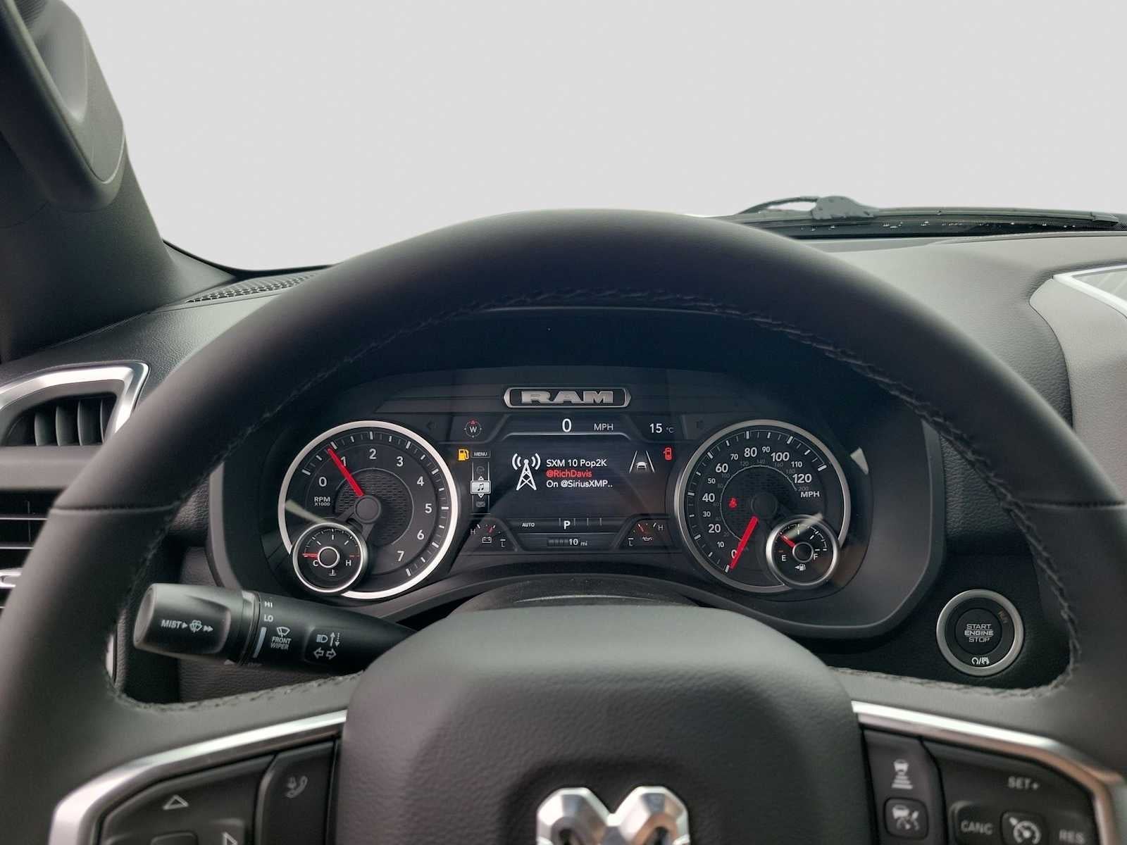 BIG HORN LEVEL 2 EQUIPMENT GROUP SiriusXM Radio Service, Power Adjustable Pedals, Leather Wrapped Steering Wheel, 12 Touchscreen Display, Glove Box Lamp, Auto Power-Folding Mirrors, 115V Auxiliary Rear Power Outlet, Media Hub w/2 Charge Only USBs, Heated Front Seats, Security Alarm, Black Premium Power Mirrors, Premium Overhead Console, 9 Amplified Speakers w/Subwoofer, Disassociated Touchscreen Display, Body Color Fender Flares, Remote Tailgate Release, 115V Auxiliary Power Outlet, LED Dome Lamp w/On/Off Switch, Universal Garage Door Opener, 2nd Row In Floor Storage Bins, Sun Visors w/Illuminated Vanity Mirrors, LED Footwell Lighting, Rear Window Defroster, Rear View Auto Dim Mirror, Rear Power Sliding Window, GPS Navigation, Overhead LED Lamps, Wheels: 20 x 9 Aluminum Chrome Clad, NIGHT EDITION Tires: 275/55R20 OWL All Season, Bridgestone Brand Tires, Accent Color Premium Power Mirrors, Exterior Mirrors w/Supplemental Signals, Black Headlamp Bezels, Exterior Mirrors Courtesy Lamps, Grille Black Surround Black Mesh, Auto Power-Folding Mirrors, Wheels: 20 x 9.0 Aluminum Painted Clad, Auto Dim Exterior Driver Mirror, Black Exterior Truck Badging, Anti-Spin Differential Rear Axle, Accent Color Door Handles, Accent Color Tailgate Handle, Black Interior Accents, Dual Exhaust w/Black Tips, Body Color Front Bumper, Body Color Rear Bumper w/Step Pads, Black Tail Lamp Bezels, RAM Grille Badge - Black, Black Painted Exterior Mirrors Caps, MOPAR FRONT & REAR RUBBER FLOOR MATS, TRANSMISSION: 8-SPEED AUTOMATIC (850RE) (STD), ENGINE: 3.6L V6 24V VVT ETORQUE UPG I (STD). Ram Lone Star with Bright White Clearcoat exterior and Black interior features a V6 Cylinder Engine with 305 HP at 6400 RPM*.