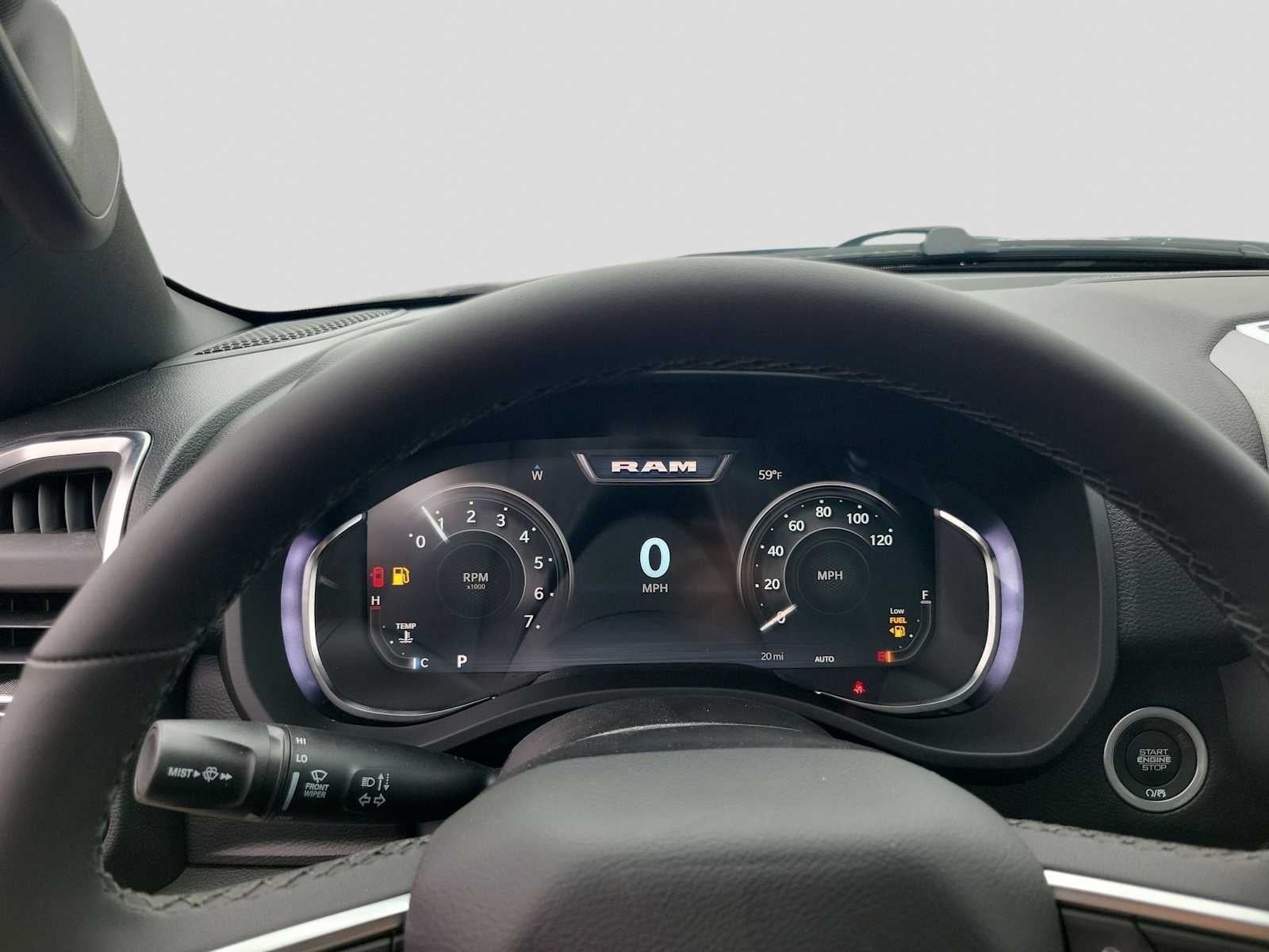 BIG HORN LEVEL 2 EQUIPMENT GROUP SiriusXM Radio Service, Power Adjustable Pedals, Leather Wrapped Steering Wheel, 12 Touchscreen Display, Glove Box Lamp, Auto Power-Folding Mirrors, 115V Auxiliary Rear Power Outlet, Media Hub w/2 Charge Only USBs, Heated Front Seats, Security Alarm, Black Premium Power Mirrors, Premium Overhead Console, 9 Amplified Speakers w/Subwoofer, Disassociated Touchscreen Display, Body Color Fender Flares, Remote Tailgate Release, 115V Auxiliary Power Outlet, LED Dome Lamp w/On/Off Switch, Universal Garage Door Opener, 2nd Row In Floor Storage Bins, Sun Visors w/Illuminated Vanity Mirrors, LED Footwell Lighting, Rear Window Defroster, Rear View Auto Dim Mirror, Rear Power Sliding Window, GPS Navigation, Overhead LED Lamps, Wheels: 20 x 9 Aluminum Chrome Clad, ENGINE: 5.7L V8 HEMI MDS VVT ETORQUE Active Noise Control System, Heavy Duty Engine Cooling, Passive Tuned Mass Damper, GVWR: 7,100 lbs, Dual Rear Exhaust w/Bright Tips, G/T Exhaust, 18 Aluminum Spare Wheel, NIGHT EDITION Tires: 275/55R20 OWL All Season, Bridgestone Brand Tires, Accent Color Premium Power Mirrors, Exterior Mirrors w/Supplemental Signals, Black Headlamp Bezels, Exterior Mirrors Courtesy Lamps, Grille Black Surround Black Mesh, Auto Power-Folding Mirrors, Wheels: 20 x 9.0 Aluminum Painted Clad, Auto Dim Exterior Driver Mirror, Black Exterior Truck Badging, Anti-Spin Differential Rear Axle, Accent Color Door Handles, Accent Color Tailgate Handle, Black Interior Accents, Dual Exhaust w/Black Tips, Body Color Front Bumper, Body Color Rear Bumper w/Step Pads, Black Tail Lamp Bezels, RAM Grille Badge - Black, Black Painted Exterior Mirrors Caps, PROTECTION GROUP Transfer Case Skid Plate, Steering Gear Skid Plate, Fuel Tank Skid Plate, Tow Hooks, MOPAR FRONT & REAR RUBBER FLOOR MATS, TRANSMISSION: 8-SPEED AUTOMATIC (8HP75). Ram Lone Star with Granite Crystal Metallic Clearcoat exterior and Black interior features a 8 Cylinder Engine with 395 HP at 5600 RPM*.