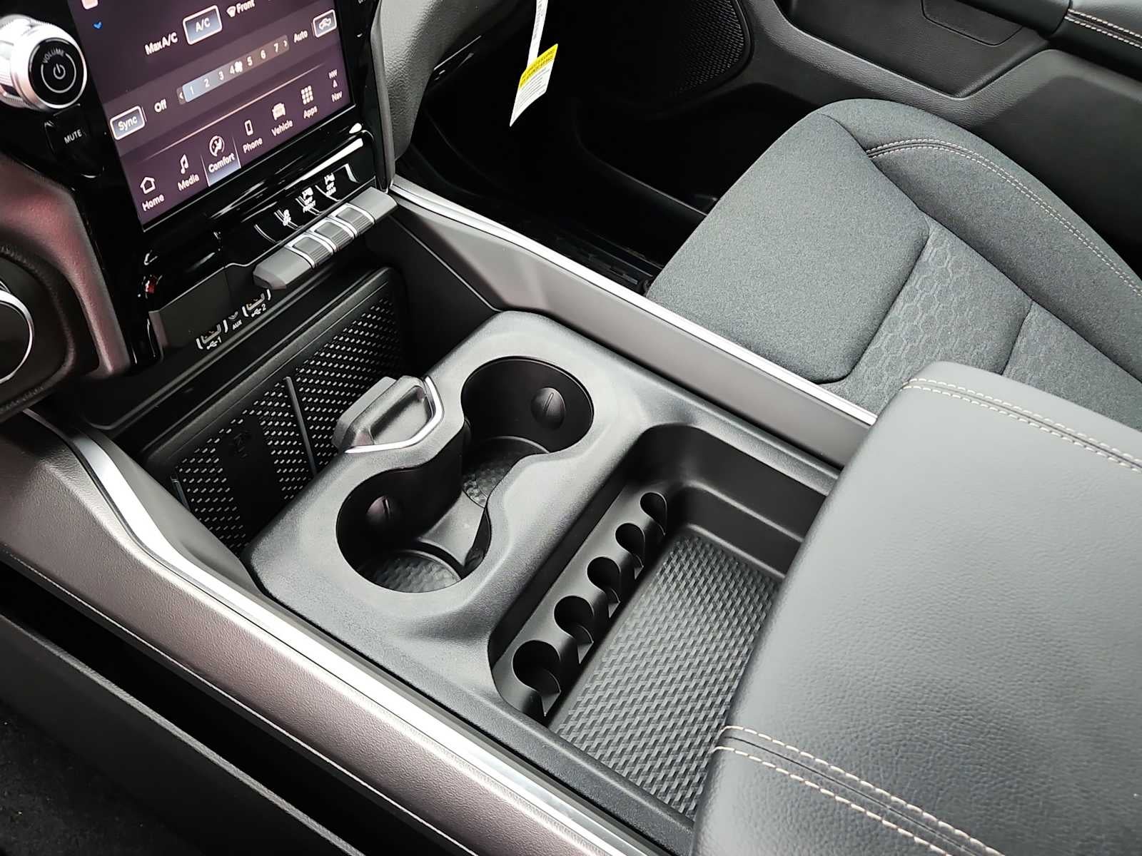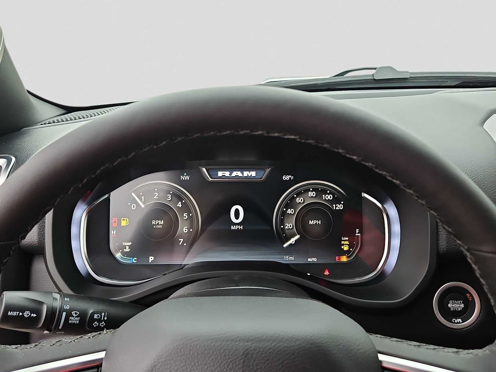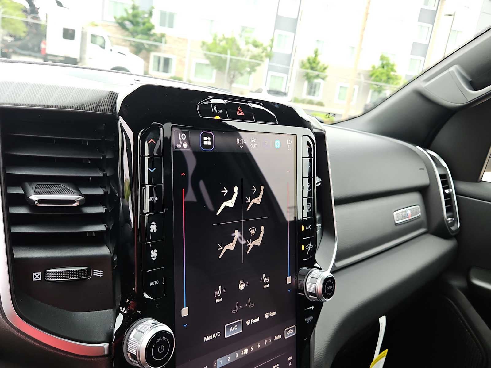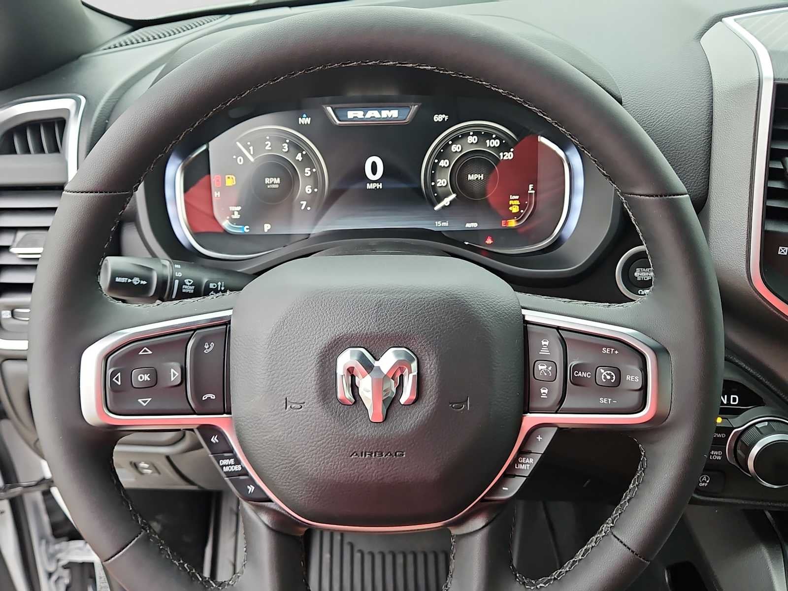 BIG HORN LEVEL 2 EQUIPMENT GROUP SiriusXM Radio Service, Power Adjustable Pedals, Leather Wrapped Steering Wheel, 12 Touchscreen Display, Glove Box Lamp, Auto Power-Folding Mirrors, 115V Auxiliary Rear Power Outlet, Media Hub w/2 Charge Only USBs, Heated Front Seats, Security Alarm, Black Premium Power Mirrors, Premium Overhead Console, 9 Amplified Speakers w/Subwoofer, Disassociated Touchscreen Display, Body Color Fender Flares, Remote Tailgate Release, 115V Auxiliary Power Outlet, LED Dome Lamp w/On/Off Switch, Universal Garage Door Opener, 2nd Row In Floor Storage Bins, Sun Visors w/Illuminated Vanity Mirrors, LED Footwell Lighting, Rear Window Defroster, Rear View Auto Dim Mirror, Rear Power Sliding Window, GPS Navigation, Overhead LED Lamps, Wheels: 20 x 9 Aluminum Chrome Clad, ENGINE: 5.7L V8 HEMI MDS VVT ETORQUE Active Noise Control System, Heavy Duty Engine Cooling, Passive Tuned Mass Damper, GVWR: 7,100 lbs, Dual Rear Exhaust w/Bright Tips, G/T Exhaust, 18 Aluminum Spare Wheel, NIGHT EDITION Tires: 275/55R20 OWL All Season, Bridgestone Brand Tires, Accent Color Premium Power Mirrors, Exterior Mirrors w/Supplemental Signals, Black Headlamp Bezels, Exterior Mirrors Courtesy Lamps, Grille Black Surround Black Mesh, Auto Power-Folding Mirrors, Wheels: 20 x 9.0 Aluminum Painted Clad, Auto Dim Exterior Driver Mirror, Black Exterior Truck Badging, Anti-Spin Differential Rear Axle, Accent Color Door Handles, Accent Color Tailgate Handle, Black Interior Accents, Dual Exhaust w/Black Tips, Body Color Front Bumper, Body Color Rear Bumper w/Step Pads, Black Tail Lamp Bezels, RAM Grille Badge - Black, Black Painted Exterior Mirrors Caps, MOPAR FRONT & REAR RUBBER FLOOR MATS, TRANSMISSION: 8-SPEED AUTOMATIC (8HP75). Ram Lone Star with Bright White Clearcoat exterior and Black interior features a 8 Cylinder Engine with 395 HP at 5600 RPM*.