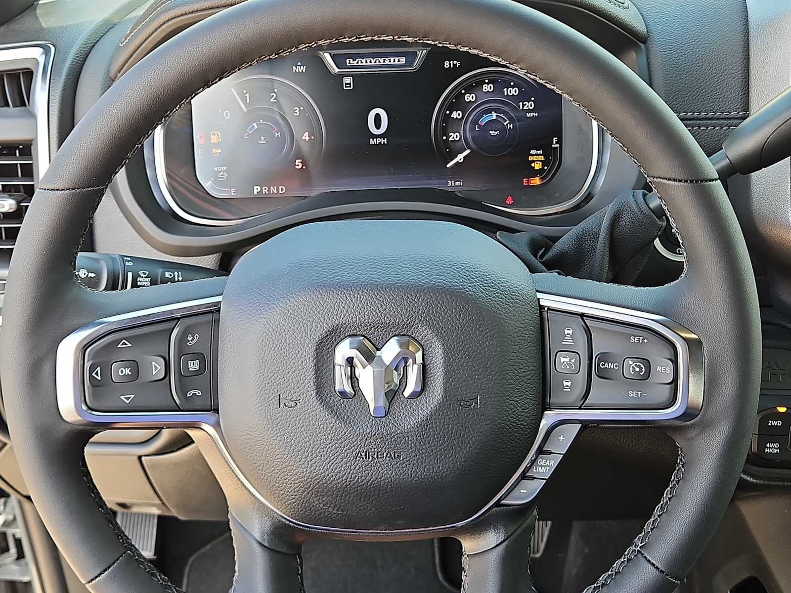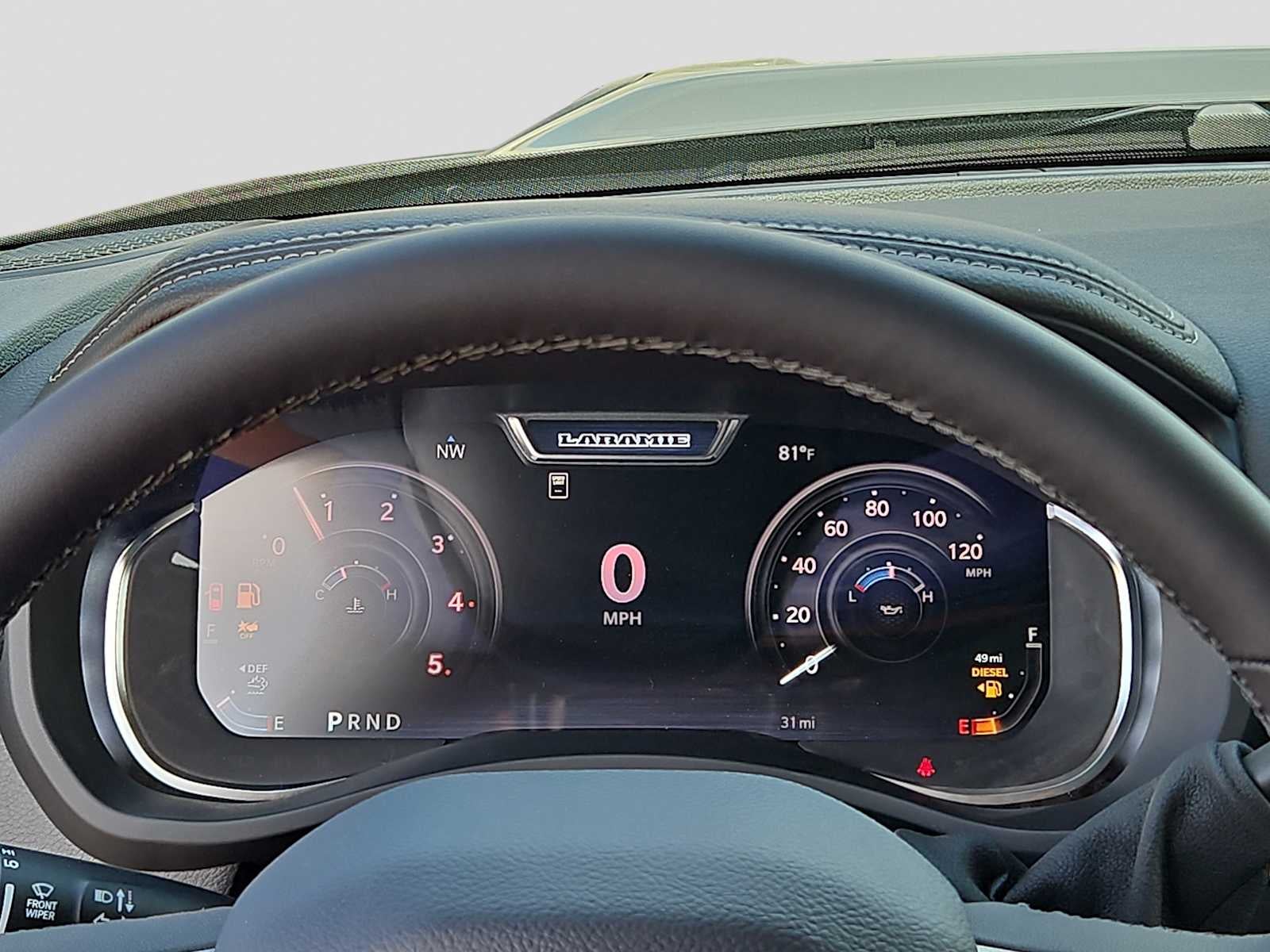 ENGINE: 6.7L I6 CUMMINS HO TURBO DIESEL Selective Catalytic Reduction (Urea), Dual 730 Amp Maintenance Free Batteries, Cummins Turbo Diesel Badge, Heavy Duty Engine Cooling, Diesel Exhaust Brake, Supplemental Heater, 3.42 Axle Ratio, Front Bumper Sight Shields, Capless Fuel Fill w/o Discriminator, GVWR: 11,040 lbs, NIGHT EDITION Tires: LT285/60R20E OWL On/Off Road, Black Exterior Truck Badging, Wheels: 20 x 8.0 Black Painted Aluminum, Gloss Black Grille Billets/Accents, Body Color Grille-Surround, Sport Performance Hood, Black Exterior Mirrors, LARAMIE LEVEL 1 PLUS EQUIPMENT GROUP CTR Stop Lamp w/Cargo View Camera, Rain Sensitive Windshield Wipers, Power Adjustable Pedals w/Memory, LED Bed Lighting, Traffic Sign Recognition, Adaptive Steering System, Auto Dim Exterior Mirror, Anti-Spin Differential Rear Axle, Drowsy Driver Detection, MOPAR Deployable Bed Step, Foam Bottle Insert (Door Trim Panel), Active Lane Management System, Power Heated Fold Telescopic Mirrors w/Memory, MOPAR Spray In Bedliner, Remote Tailgate Release, Auto High Beam Headlamp Control, Exterior Mirrors w/Memory, 2nd Row In Floor Storage Bins, Auto Dim Exterior Passenger Mirror, Auto Adjust In Reverse Exterior Mirrors, TRANSMISSION: 8-SPEED TORQUEFLITE HD AUTOMATIC, BLACK, LEATHER TRIMMED BUCKET SEATS Bucket Seats, Dual Wireless Charging Pad, Ventilated Front Seats, Radio/Driver Seat/Mirrors/Pedals Memory, Full Length Upgraded Floor Console. Ram Laramie with Ceramic Gray Clearcoat exterior and Black interior features a Straight 6 Cylinder Engine with 430 HP at 2800 RPM*.