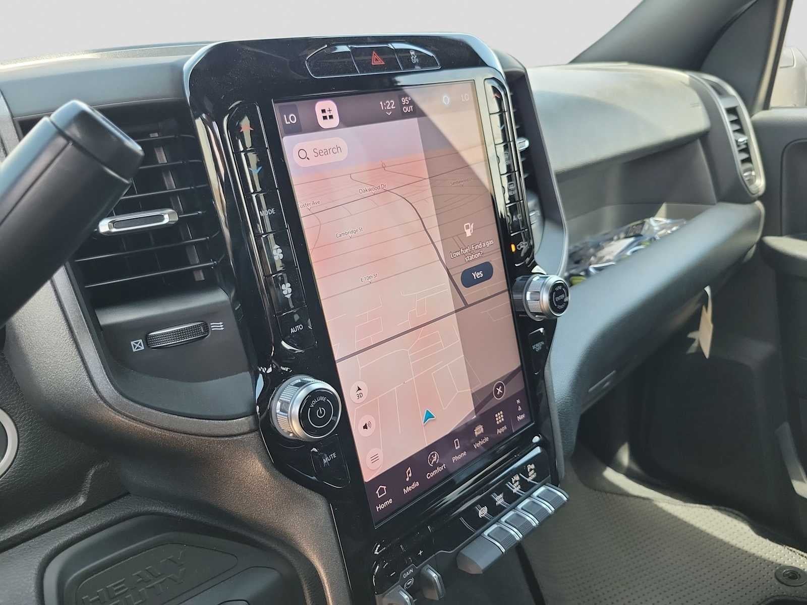 ENGINE: 6.7L I6 CUMMINS HO TURBO DIESEL Selective Catalytic Reduction (Urea), Dual 730 Amp Maintenance Free Batteries, Cummins Turbo Diesel Badge, Heavy Duty Engine Cooling, Diesel Exhaust Brake, Supplemental Heater, 3.42 Axle Ratio, Front Bumper Sight Shields, Capless Fuel Fill w/o Discriminator, GVWR: 11,040 lbs, TRADESMAN LEVEL 2 EQUIPMENT GROUP Convenience Group, Emergency Vehicle Alert System (EVAS), 12 Touchscreen Display, Anti-Spin Differential Rear Axle, Mirror Running Lights, Exterior 115V AC Outlet, Alexa Built-In, Power-Adjustable Convex Aux Mirrors, Disassociated Touchscreen Display, Matte Black Mesh Grille w/Chrome, 115V Auxiliary Front Power Outlet, Center Hub, Rear View Auto Dim Mirror, Rear Power Sliding Window, Tinted Acoustic Windshield Glass, GPS Navigation, Bright Rear Bumper, Exterior Mirrors w/Heating Element, Chrome Grille Surround, MOPAR Black Tubular Side Steps, SiriusXM w/360L, Connected Travel & Traffic Services, Carpet Floor Covering, Off-Road Info Pages, Trailer Tow Pages, 400W Inverter, HD Radio, Power Heated Folding Telescope Mirrors, Radio: Uconnect 5 Nav w/12.0, TOWING TECHNOLOGY GROUP CTR Stop Lamp w/Cargo View Camera, Forward & Reverse Utility Lights, Surround View Camera System, Blind Spot & Cross Path Detection, LED Tail Lamps, Red Tail Lamp Bezels, Power Heated Folding Telescopic Mirrors, Exterior Mirrors w/Supplemental Signals, Exterior Mirrors Courtesy Lamps, Trailer Tire Pressure Monitoring System, Auto Power-Folding Mirrors, Exterior Mirrors w/Heating Element, Mirror Running Lights, Power Adjust Mirrors, Power Telescoping Mirrors, Trailer Reverse Guidance, Power-Adjustable Convex Aux Mirrors, BED CONVENIENCE GROUP MOPAR Spray In Bedliner, LED Bed Lighting, TRANSMISSION: 8-SPEED TORQUEFLITE HD AUTOMATIC, BLACK, CLOTH 40/20/40 BENCH SEAT. Ram Tradesman with Diamond Black Crystal Pearlcoat exterior and Black interior features a Straight 6 Cylinder Engine with 430 HP at 2800 RPM*.
