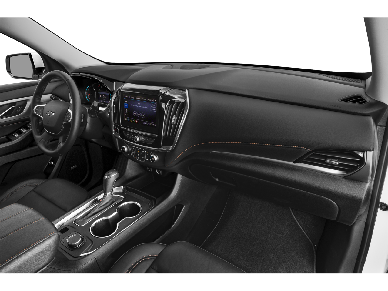 LPO, REAR SEAT INFOTAINMENT SYSTEM WITH DVD PLAYER dual headrest with 8 screens and multiple inputs, including SD, USB, HDMI, as well as wireless connectivity to brought-in devices. Includes remote control, 2 sets of 2-channel wireless infrared headphones, and an available companion app to allow parental control of system, LPO, ROOF RACK CROSS RAILS, BLACK, AUDIO SYSTEM, CHEVROLET INFOTAINMENT SYSTEM with Navigation and 8 diagonal color touch-screen, AM/FM stereo, includes Bluetooth® streaming audio for music and most phones; featuring Android Auto® and Apple CarPlay® capability for compatible phones (STD), ENGINE, 3.6L V6, SIDI, VVT (310 hp [232.0 kW] @ 6800 rpm, 266 lb-ft of torque [361 N-m] @ 2800 rpm) (STD), TRANSMISSION, 9-SPEED AUTOMATIC (STD). Chevrolet RS with SUMMIT WHITE exterior and JET BLACK interior features a V6 Cylinder Engine with 310 HP at 6800 RPM*.