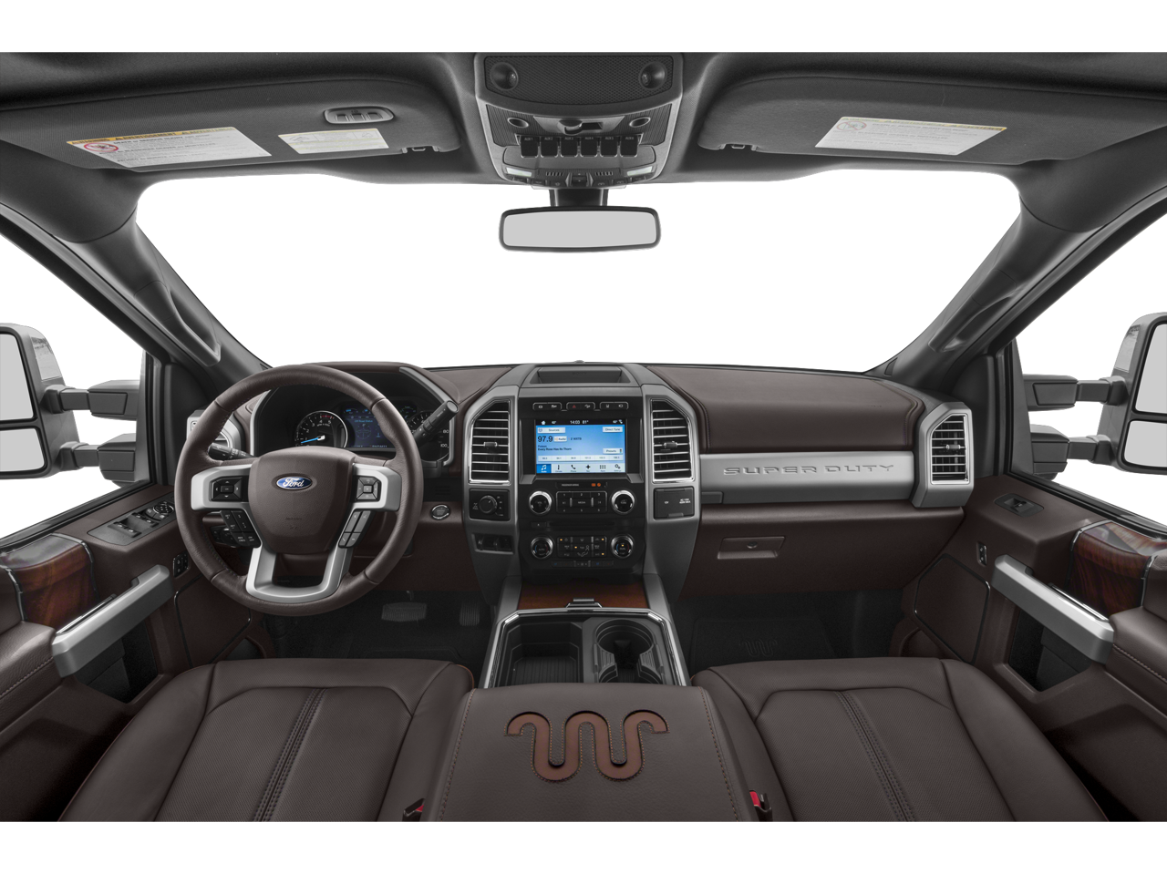 ENGINE: 6.7L 4V OHV POWER STROKE V8 TURBO DIESEL B20 manual push-button engine-exhaust braking and intelligent oil-life monitor, Extra Heavy-Duty 220 Amp Alternator, 34 Gallon Fuel Tank, 3.31 Axle Ratio, Dual 78-AH 750 CCA Batteries, KING RANCH ULTIMATE PACKAGE Twin Panel Power Moonroof, map lights and moonroof switches, Blind Spot Information System (BLIS), cross-traffic alert and trailer tow (BLIS sensor in taillamp), Tailgate Step & Handle, Quad Beam LED Headlamps & LED Taillamps, LED fog lamps and LED Center High-Mounted Stop Lamp (CHMSL), Power-Deployable Running Boards, Multi-Contour Seats, WHEELS: 20 BRIGHT MACHINED CAST ALUMINUM light caribou painted pockets and light caribou wheel ornaments w/King Ranch logo, ADAPTIVE CRUISE CONTROL & COLLISION WARNING brake support, TOUGH BED SPRAY-IN BEDLINER tailgate-guard, black box bed tie-down hooks and black bed attachment bolts, ELECTRONIC-LOCKING W/3.55 AXLE RATIO, HEATED REAR SEATS, TRANSMISSION: TORQSHIFT 6-SPEED AUTOMATIC (6R140), SelectShift. Ford King Ranch with Ruby Red Metallic Tinted Clearcoat/Stone Gray exterior and Java interior features a 8 Cylinder Engine with 450 HP at 2800 RPM*.