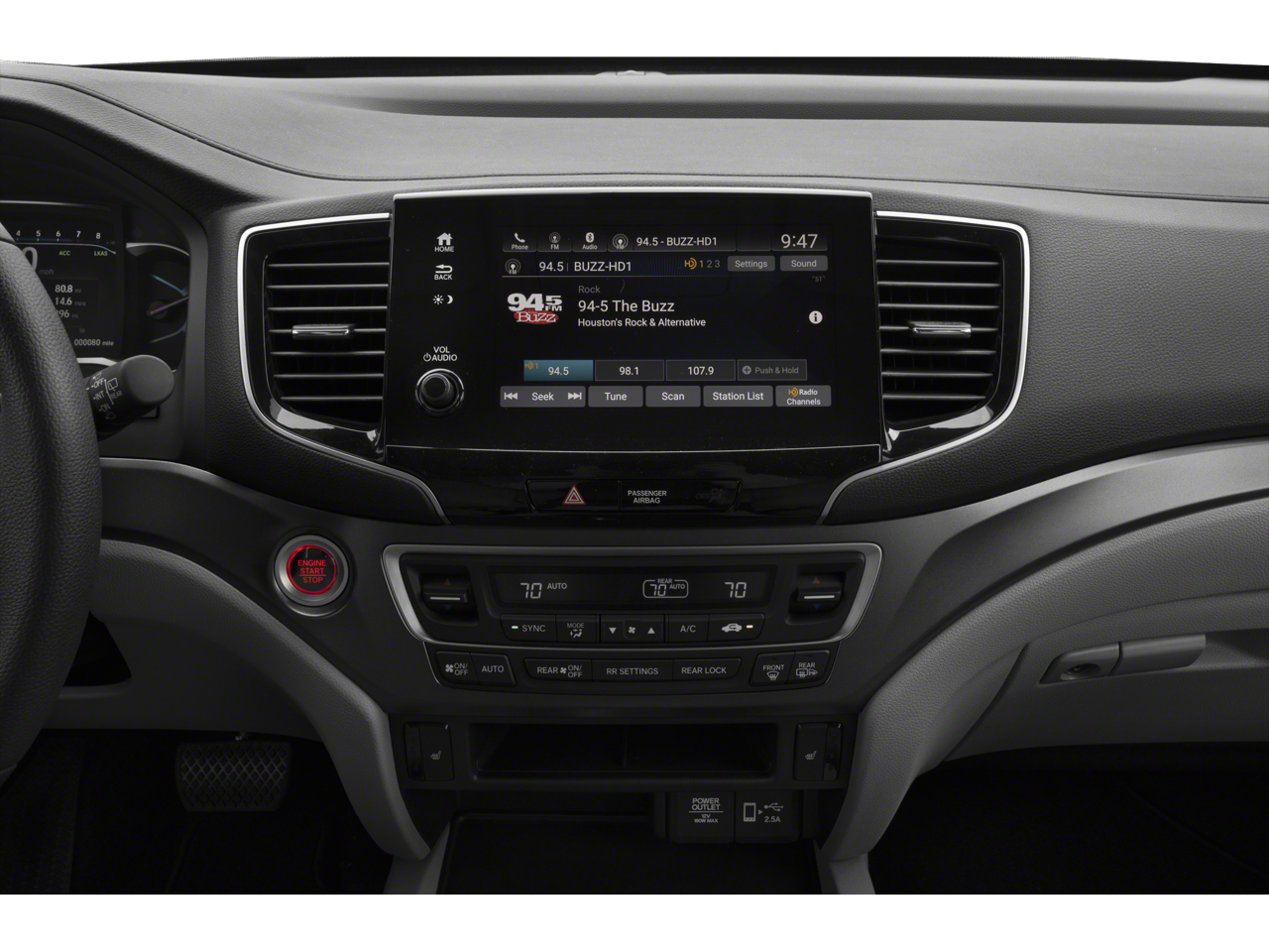 - Radio: 215-Watt Audio System -inc: 7 speakers, subwoofer, 8" display audio w/high-resolution electrostatic touch-screen and customizable feature settings, 2.5-amp USB smartphone/audio interface front console (1 port), Bluetooth® HandsFreeLink, Bluetooth® streaming audio, MP3/auxiliary input jack, Radio Data System (RDS), Speed-Sensitive Volume Compensation (SVC), 2.5-amp USB charging port in center console (1 port), HondaLink, CabinControl remote compatibility, Apple CarPlay integration, Android Auto integration, SMS text message function (Compatible w/select phones w/Bluetooth®, Your wireless carrier's rate plans apply, State or local laws may limit use of texting feature, Only use texting feature when conditions allow you to do so safely.), SiriusXM radio (SiriusXM services require a subscription after any trial period, If you decide to continue your SiriusXM service at the end of your trial subscription, the plan you choose will automatically renew and bill at then-current rates until you call SiriusXM at 1-866-635-2349 to cancel, See our customer agreement for complete terms at www.siriusxm.com, Fees and programming subject to change, Available in the 48 contiguous United States and D.C, SiriusXM and all related marks and logos are trademarks of SiriusXM Radio Inc, and HD Radio
