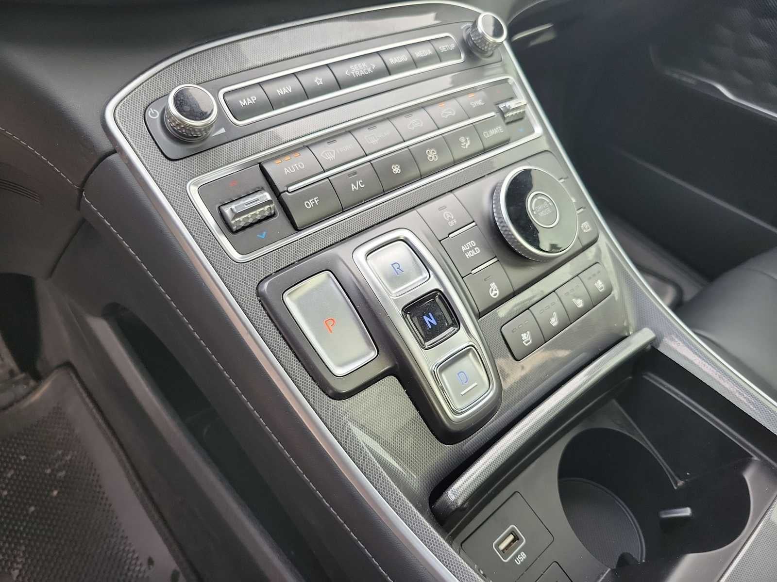 - Radio: AM/FM Harman Kardon Display Audio -inc: 10.25" display screen, Apple CarPlay and Android Auto, Bluetooth® hands-free w/wireless audio streaming, steering wheel audio and phone controls, dual front USB ports, SiriusXM, HD Radio, Blue Link connected car system, 12 speakers including subwoofer, external amplifier, Clari-Fi music restoration technology, QuantumLogic surround, navigation system w/traffic flow including incident data via HD Radio (HERE), rear seat quiet mode and wireless device charging