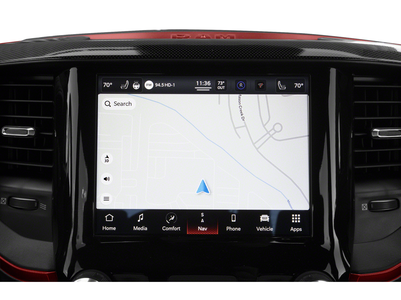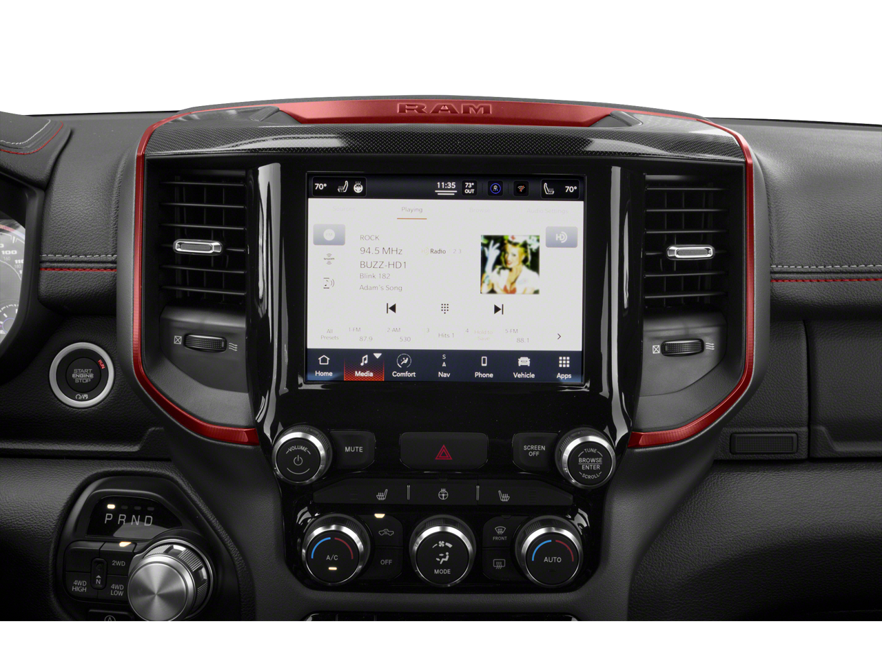 REBEL LEVEL 2 EQUIPMENT GROUP Google Android Auto®, SiriusXM Radio Service, Bluetooth® Handsfree Phone & Audio, USB Host Flip, Rear Window Defroster, Rain Sensitive Windshield Wipers, For Details, Visit DriveUconnect.com, Integrated Center Stack Radio, ParkSense Front/Rear Park Assist w/Stop, Power Adjustable Pedals, Rear Dome w/On/Off Switch Lamp, Connectivity - US/Canada, Body Color Door Handles, 4G LTE Wi-Fi Hot Spot, 115V Auxiliary Rear Power Outlet, Media Hub w/2 Charge Only USBs, Exterior Mirrors w/Heating Element, Auto Dim Exterior Driver Mirror, Heated Front Seats, Radio: Uconnect 5 W w/8.4 Display, Heated Steering Wheel, 8.4 Touchscreen Display, Foam Bottle Insert (Door Trim Panel), Security Alarm, Black Premium Power Mirrors, Apple CarPlay®, Remote Start System, SiriusXM Satellite, G/T PACKAGE Premium Overhead Console, Under Seat Lighting, Leather Wrapped Shift Knob, Leather-Wrapped Steering Wheel, Power Adjustable Pedals w/Memory, Steering Wheel Mounted Shift Control, MOPAR Bright Pedal Kit, MOPAR Cold Air Intake System, Passive Cold End Exhaust, Overhead LED Lamps, Floor Console, G/T Decal, LED Dome Lamp w/On/Off Switch, Exterior Mirrors w/Memory, Front Door Accent Lighting, GT Interior Theme, Radio/Driver Seat/Mirrors/Pedals Memory, Rear Door Accent Lighting, LED Footwell Lighting, ENGINE: 5.7L V8 HEMI MDS VVT ETORQUE Active Noise Control System, Heavy Duty Engine Cooling, Passive Tuned Mass Damper, Dual Exhaust w/Black Tips, GPEC 5 Engine Controller, GVWR: 7,100 lbs, HEMI Badge, 23 Gallon Fuel Tank, 18 Aluminum Spare Wheel, REBEL 12 harman/kardon® 19 Speaker Premium Sound, Radio: Uconnect 5 Nav w/12.0 Display, Google Android Auto®, Off-Road Information Pages, SiriusXM Radio Service, USB Host Flip, Disassociated Touchscreen Display, HD Radio, For Details, Visit DriveUconnect.com, Integrated Center Stack Radio, Connectivity - US/Canada, 12 Touchscreen Display, Air Conditioning ATC w/Dual Zone Control, GPS Navigation, 4G LTE Wi-Fi Hot Spot, SiriusXM w/360L, All Radio Equipped Vehicles, Connected Travel & Traffic Services, All R1 High Radios, Apple CarPlay®, LED Footwell Lighting, DUAL-PANE PANORAMIC SUNROOF Premium Overhead Console, Dome Dual LED Reading Lamp, Overhead LED Lamps, NIGHT EDITION Black Front Bumper w/Black Plate, Wheels: 18 x 8.0 Gloss Black, Grille Surround 2 Black Texture 3 Black, RAM Grille Badge - Black, BLIND SPOT & CROSS PATH DETECTION, MOPAR SPRAY IN BEDLINER, TRANSMISSION: 8-SPEED AUTOMATIC (8HP75). Ram Rebel with Diamond Black Crystal Pearlcoat exterior and Black interior features a 8 Cylinder Engine with 305 HP at 6400 RPM*.