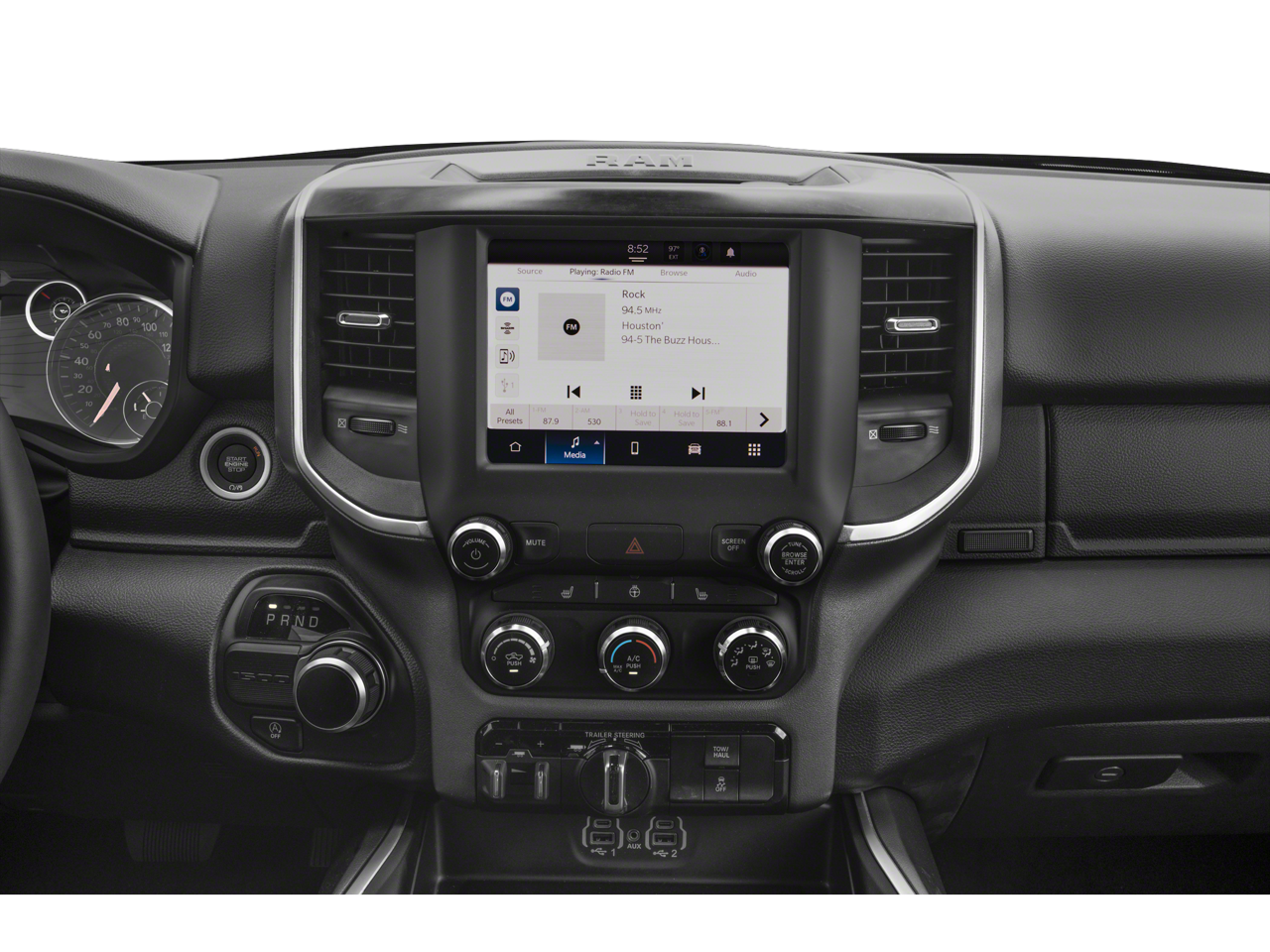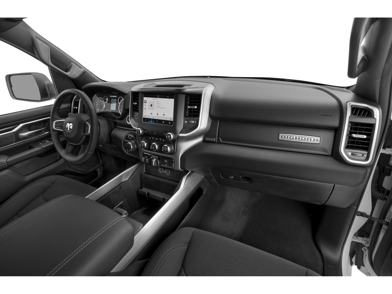 BIG HORN LEVEL B EQUIPMENT GROUP Rear Window Defroster, ParkSense Front/Rear Park Assist w/Stop, Rear View Auto Dim Mirror, Power Adjustable Pedals, Rear Power Sliding Window, Rear Dome w/On/Off Switch Lamp, Front Fog Lamps, Glove Box Lamp, Media Hub w/2 Charge Only USBs, Power 8-Way Driver Seat, Auto Dim Exterior Driver Mirror, Heated Front Seats, Heated Steering Wheel, Class IV Receiver Hitch, Security Alarm, Black Premium Power Mirrors, Big Horn IP Badge, Remote Start System, SiriusXM Satellite Radio, 400W Inverter, 9 Amplified Speakers w/Subwoofer, Radio: Uconnect 5 Nav w/12.0 Display, Google Android Auto®, SiriusXM Radio Service, USB Host Flip, HD Radio, For More Info, Call 800-643-2112, Connectivity - US/Canada, GPS Navigation, 4G LTE Wi-Fi Hot Spot, SiriusXM w/360L, All Radio, ENGINE: 5.7L V8 HEMI MDS VVT ETORQUE Active Noise Control System, Heavy Duty Engine Cooling, Passive Tuned Mass Damper, Dual Rear Exhaust w/Bright Tips, HEMI Badge, 23 Gallon Fuel Tank, 18 Aluminum Spare Wheel, PREMIUM LIGHTING GROUP Front LED Fog Lamps, LED Reflector Headlamps, LED Taillamps, BED UTILITY GROUP MOPAR Spray In Bedliner, MOPAR 4 Adjustable Cargo Tie-Down Hooks, Pick-Up Box Lighting, MOPAR Deployable Bed Step, LEVEL 1 SAFETY GROUP Advanced Brake Assist, Pedestrian Emergency Braking, Full Speed Forward Collision Warning Plus, Lane Keep Assist, BLACK, DELUXE CLOTH BUCKET SEATS Power 8-Way Driver Seat, Bucket Seats, Manual Adjust 4-Way Front Passenger Seat, Full Length Floor Console, Rear Center Armrest, Power 2-Way Driver Lumbar Adjust, TRANSMISSION: 8-SPEED AUTOMATIC (8HP75). Ram Big Horn with Bright White Clearcoat exterior and Black interior features a 8 Cylinder Engine with 395 HP at 5600 RPM*.