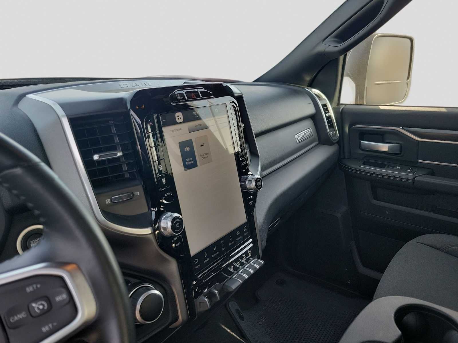 NIGHT EDITION Black Ram Head Tailgate Badge, Wheels: 20 x 8.0 Black Painted Aluminum, Black Wheel Center Hub, Black Headlamp Bezels, Body Color Door Handles, Painted Front Bumper, Painted Rear Bumper, Gloss Black Nostrils/MIC Black Grille, Tires: LT285/60R20E OWL On/Off Road, Black Exterior Truck Badging, Body Color Grille Surround, Black Interior Accents, Black Tail Lamp Bezels, ParkSense Front/Rear Park Assist System, SAFETY GROUP Auto High Beam Headlamp Control, Rain Sensitive Windshield Wipers, Rear View Auto Dim Mirror, Adaptive Cruise Control w/Stop, Adaptive Steering System, Full Speed Forward Collision Warning Plus, Lane Keep Assist, PAINTED FLAT CAB-LENGTH SIDE STEPS, BLIND SPOT & CROSS PATH DETECTION LED Tail Lamps, 9 ALPINE SPEAKERS W/SUBWOOFER, ANTI-SPIN DIFFERENTIAL REAR AXLE, PROTECTION GROUP Transfer Case Skid Plate Shield, Tow Hooks, LEVEL 1 EQUIPMENT GROUP Google Android Auto®, For Details, Visit DriveUconnect.com, For More Info, Call 800-643-2112, Leather Wrapped Steering Wheel, Rear Dome w/On/Off Switch Lamp, Front Fog Lamps, Glove Box Lamp, Auto Power-Folding Mirrors, Footwell Courtesy Lamp, 4G LTE Wi-Fi Hot Spot, Mirror Running Lights, Radio: Uconnect 5 W w/8.4 Display, 8.4 Touchscreen Display, Foam Bottle Insert (Door Trim Panel), Wheels: 18 x 8.0 Polished Aluminum, Apple CarPlay®, Big Horn IP Badge, Power Adjustable Convex Aux Mirrors, Forward & Reverse Utility Lights, Locking Lower Glove Box, Selectable Tire Fill Alert, SiriusXM Satellite Radio, Power Heated Fold Telescope Mirrors, Exterior Mirrors w/Supplemental Signals, Steering Wheel Mounted Audio Controls, Exterior Mirrors Courtesy Lamps, Dual Glove, TRANSMISSION: 8-SPEED AUTO (8HP75-LCV) (STD), ENGINE: 6.4L V8 HEAVY DUTY HEMI MDS (STD), RADIO: UCONNECT 5 NAV W/12.0 DISPLAY Google Android Auto®, Off-Road Information Pages, Selectable Tire Fill Alert, Trailer Tow Pages, Disassociated Touchscreen Display, HD Radio, For Details, Visit DriveUconnect.com, For More Info, Call 800-643-2112, 12 Touchscreen Display, Air Conditioning ATC w/Dual Zone Control, GPS Navigation, 4G LTE Wi-Fi Hot Spot, SiriusXM w/360L, All Radio Equipped Vehicles, Connected Travel & Traffic Services, All R1 High Radios, Alexa Built-In, Apple CarPlay®. Ram Big Horn with Diamond Black Crystal Pearlcoat exterior and Black interior features a 8 Cylinder Engine with 410 HP at 5600 RPM*.