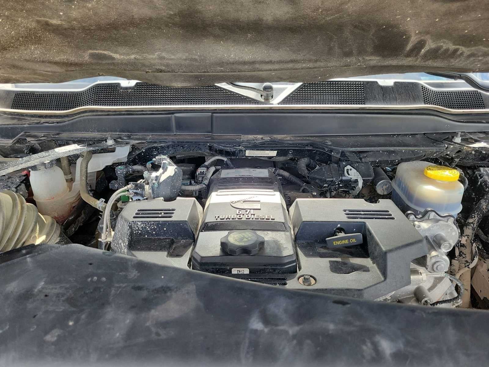 ENGINE: 6.7L I6 CUMMINS TURBO DIESEL Selective Catalytic Reduction (Urea), Dual 730 Amp Maintenance Free Batteries, Cummins Turbo Diesel Badge, Heavy Duty Engine Cooling, Tow Hooks, Diesel Exhaust Brake, Supplemental Heater, Front Bumper Sight Shields, Capless Fuel Fill w/o Discriminator, DIESEL GRAY/BLACK, PREMIUM CLOTH 40/20/40 BENCH SEAT Storage Tray, Rear 60/40 Folding Seat, Front Armrest w/Cupholders, Remote USB Port - Charge Only, Front Center Seat Cushion Storage, Manual Adjust 4-Way Front Passenger Seat, Power Adjust 8-Way Driver Seat, Front Seat Back Map Pockets, Power 2-Way Driver Lumbar Adjust, CHROME FLAT CAB-LENGTH SIDE STEPS, LEVEL 1 EQUIPMENT GROUP Google Android Auto®, For Details, Visit DriveUconnect.com, For More Info, Call 800-643-2112, Leather Wrapped Steering Wheel, Rear Dome w/On/Off Switch Lamp, Front Fog Lamps, Glove Box Lamp, Auto Power-Folding Mirrors, Footwell Courtesy Lamp, 4G LTE Wi-Fi Hot Spot, Mirror Running Lights, Radio: Uconnect 5 W w/8.4 Display, 8.4 Touchscreen Display, Foam Bottle Insert (Door Trim Panel), Wheels: 18 x 8.0 Polished Aluminum, Apple CarPlay®, Big Horn IP Badge, Power Adjustable Convex Aux Mirrors, Forward & Reverse Utility Lights, Locking Lower Glove Box, Selectable Tire Fill Alert, SiriusXM Satellite Radio, Power Heated Fold Telescope Mirrors, Exterior Mirrors w/Supplemental Signals, Steering Wheel Mounted Audio Controls, Exterior Mirrors Courtesy Lamps, Dual Glove, TRANSMISSION: 6-SPEED AUTOMATIC (68RFE). Ram Big Horn with Granite Crystal Metallic Clearcoat exterior and Diesel Gray/Black interior features a Straight 6 Cylinder Engine with 410 HP at 5600 RPM*.