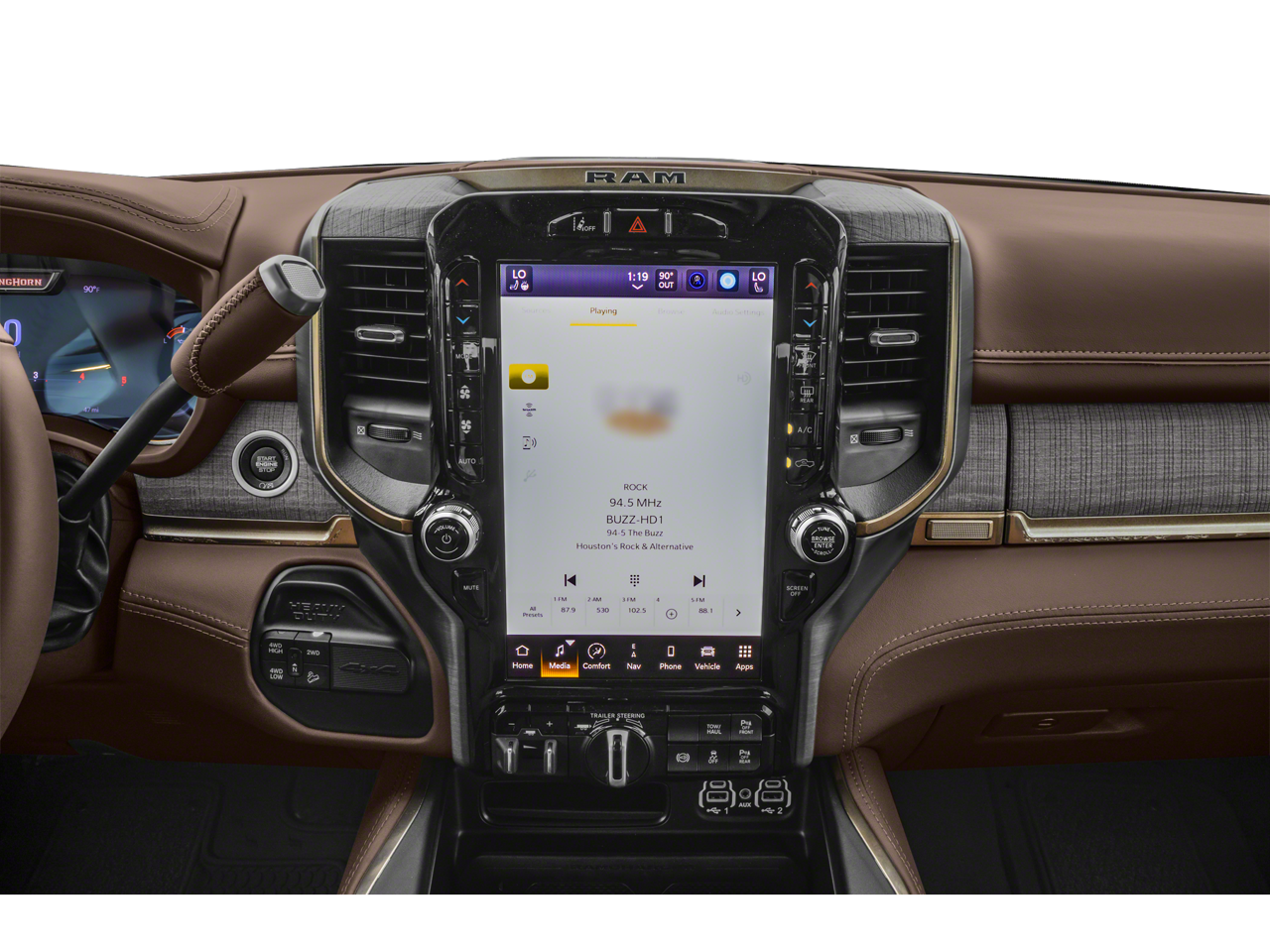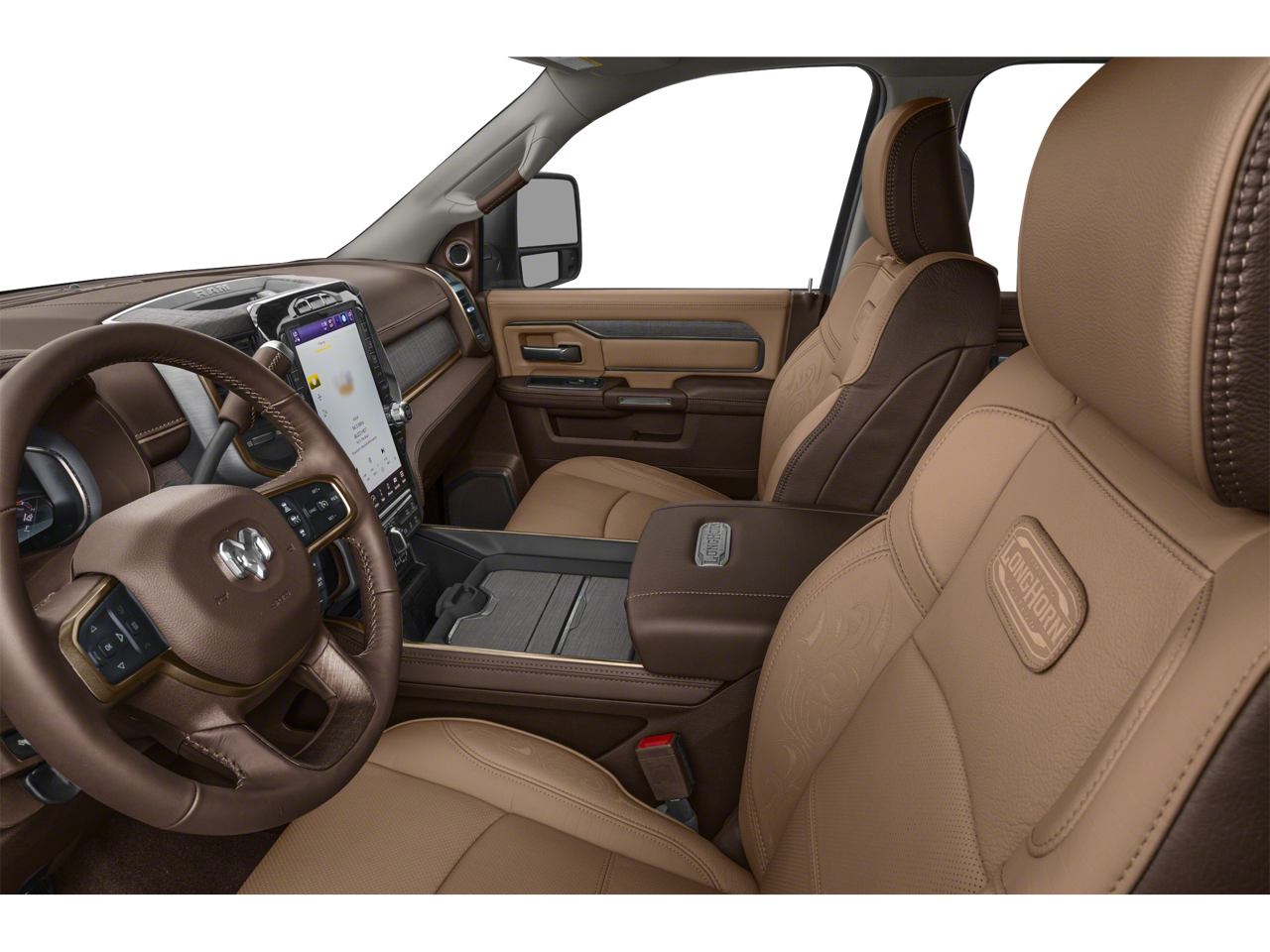 ENGINE: 6.7L I6 CUMMINS TURBO DIESEL Selective Catalytic Reduction (Urea), Dual 730 Amp Maintenance Free Batteries, Cummins Turbo Diesel Badge, Heavy Duty Engine Cooling, Diesel Exhaust Brake, Supplemental Heater, Front Bumper Sight Shields, Capless Fuel Fill w/o Discriminator, 220 Amp Alternator (STD), LONGHORN LEVEL 1 EQUIPMENT GROUP Blind Spot & Cross Path Detection, For Details, Visit DriveUconnect.com, For More Info, Call 800-643-2112, LED Bed Lighting, Power Deployable Running Boards, 12 Touchscreen Display, Selectable Tire Fill Alert, Trailer Tow Pages, Ramcharger Wireless Charging Pad, Radio: Uconnect 5 Nav w/12.0 Display, MOPAR Spray In Bedliner, 17 Speaker harman/kardon® Premium Sound, TRANSMISSION: 6-SPEED AUTOMATIC (68RFE) Leather Wrapped Shift Control (STD). Ram Longhorn with Pearl White exterior and Cattle Tan/Black interior features a Straight 6 Cylinder Engine with 370 HP at 2800 RPM*.
